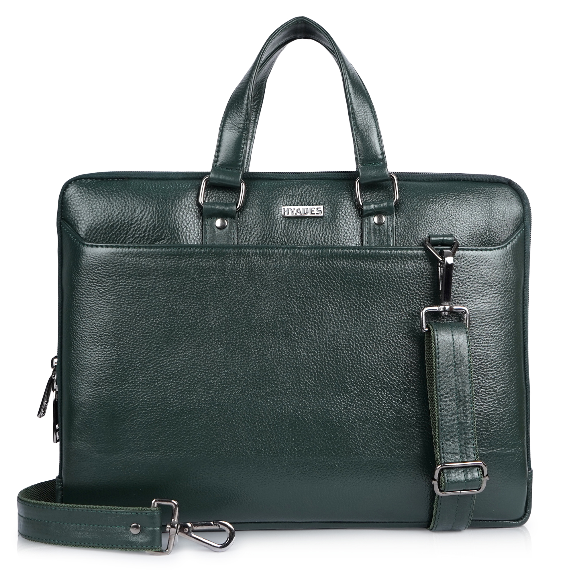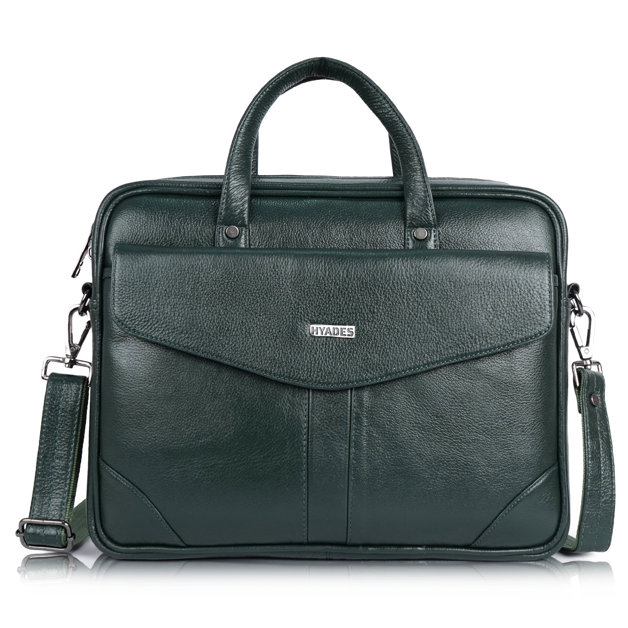 HYADES-MEDIUM-Classic Leather Laptop Bag for Office & Travel – 14.5 Inch Padded Sleeve- with detachable sling-GREEN