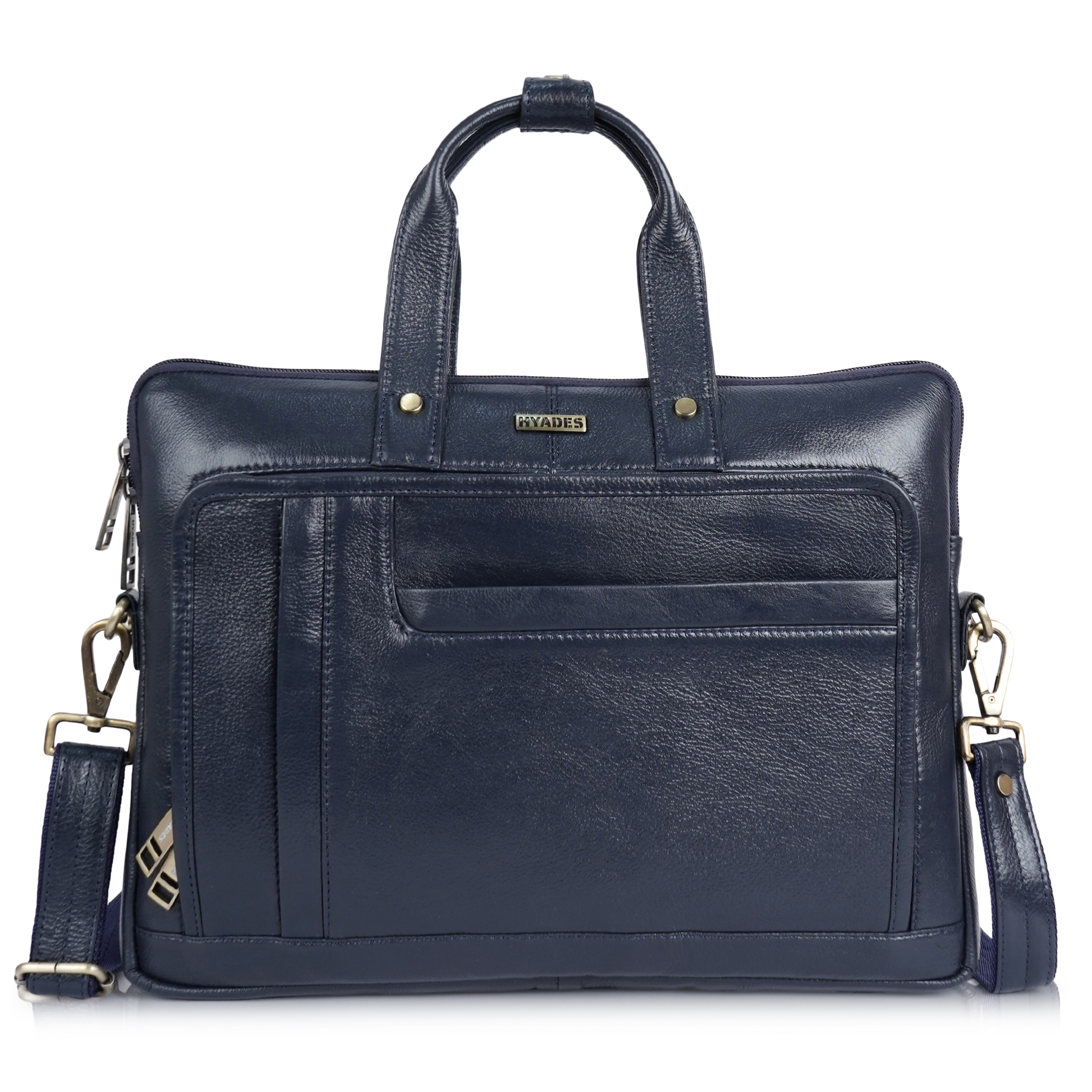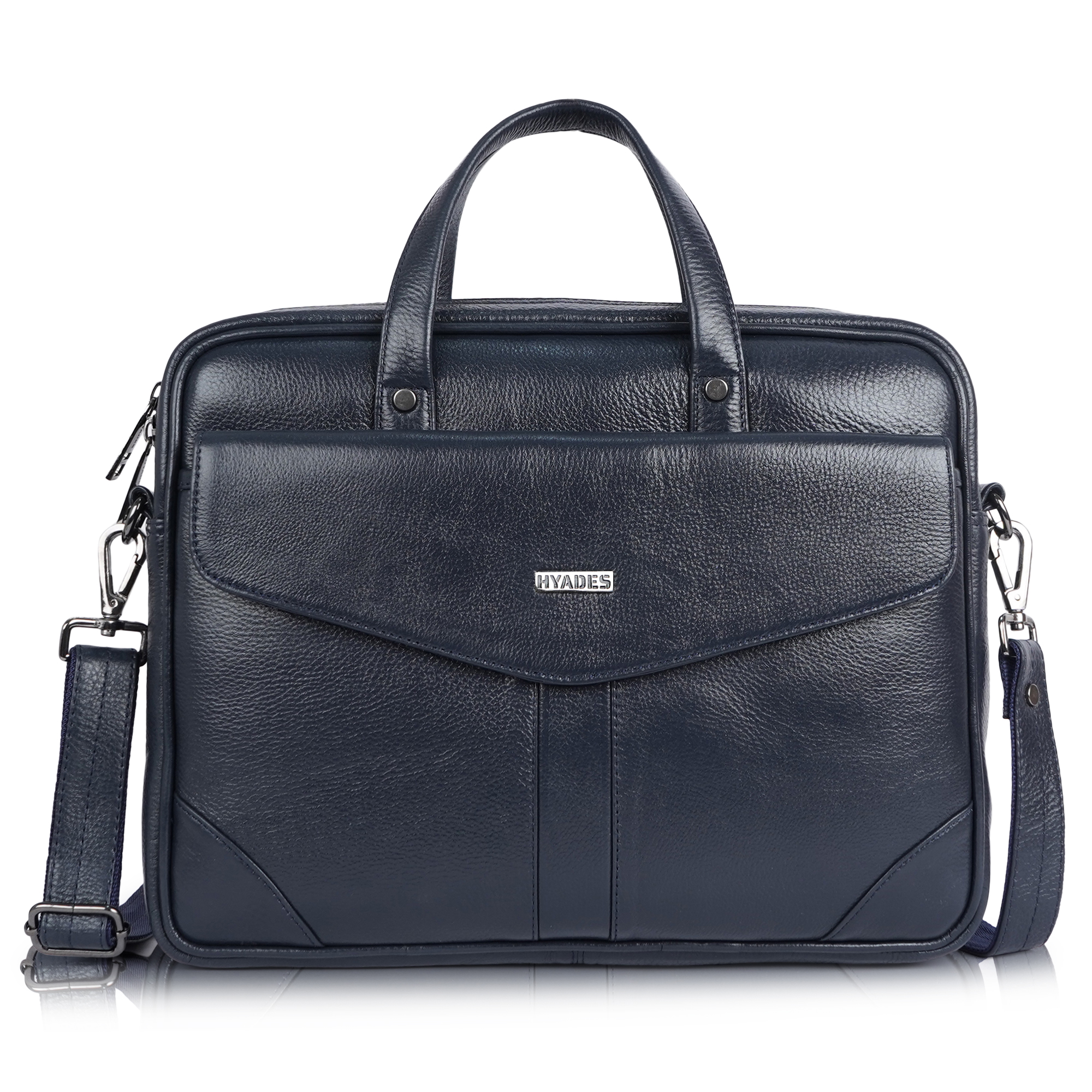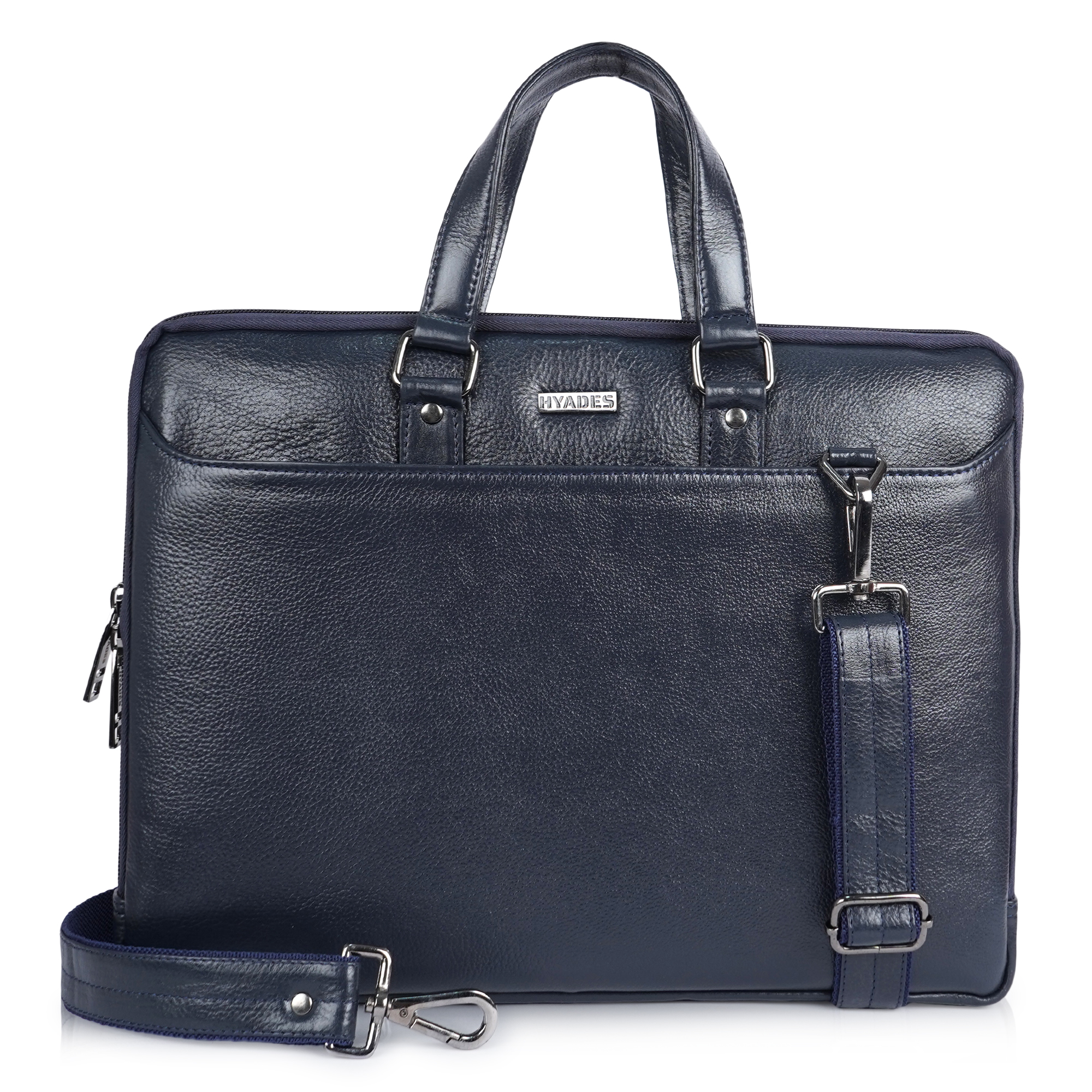 HYADES-MEDIUM-Classic Leather Laptop Bag for Office & Travel – 14.5 Inch Padded Sleeve- with detachable sling-BLUE
