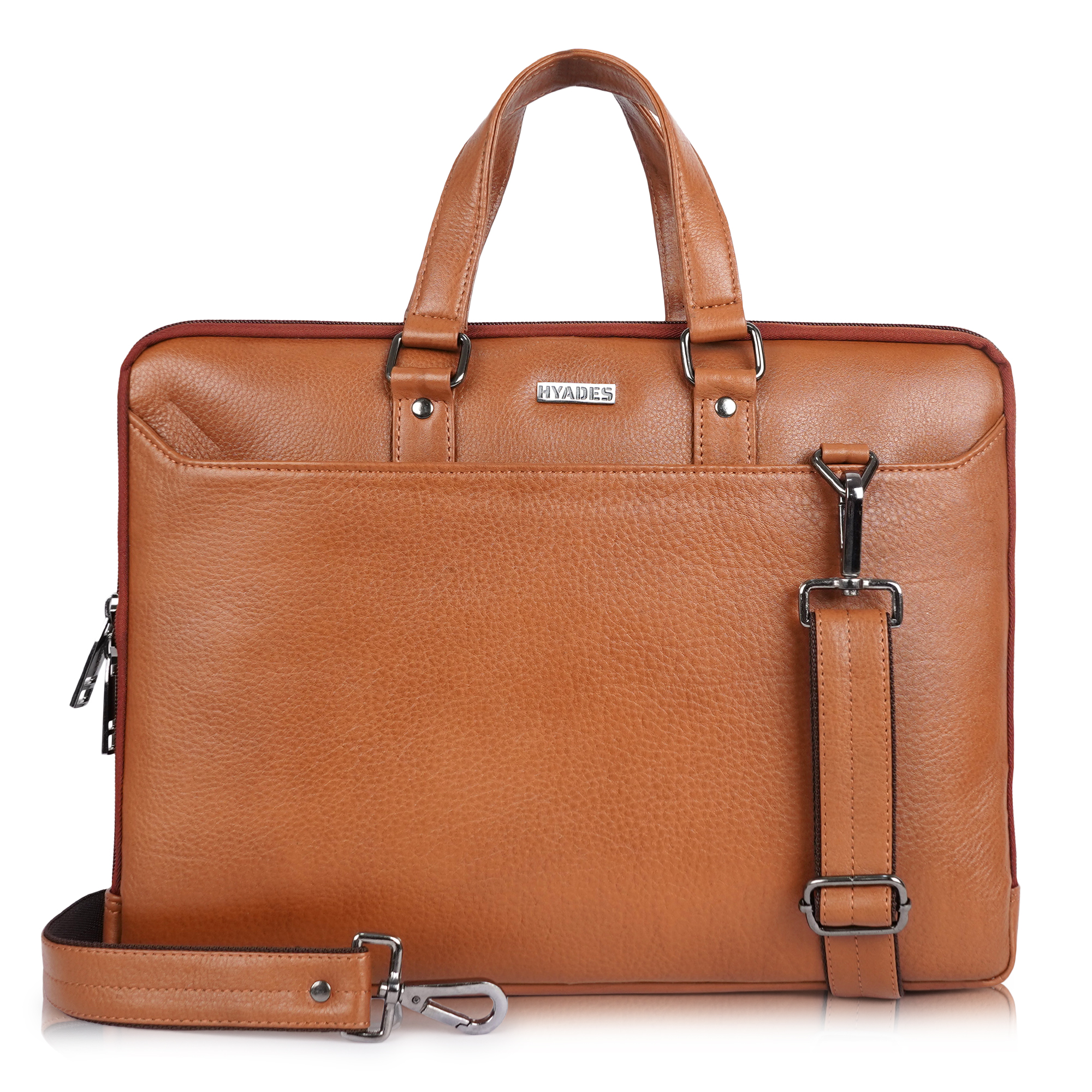 HYADES-SLIM-Classic Leather Laptop Bag for Office & Travel – 15.5 Inch Padded Sleeve- with detachable sling-TAN