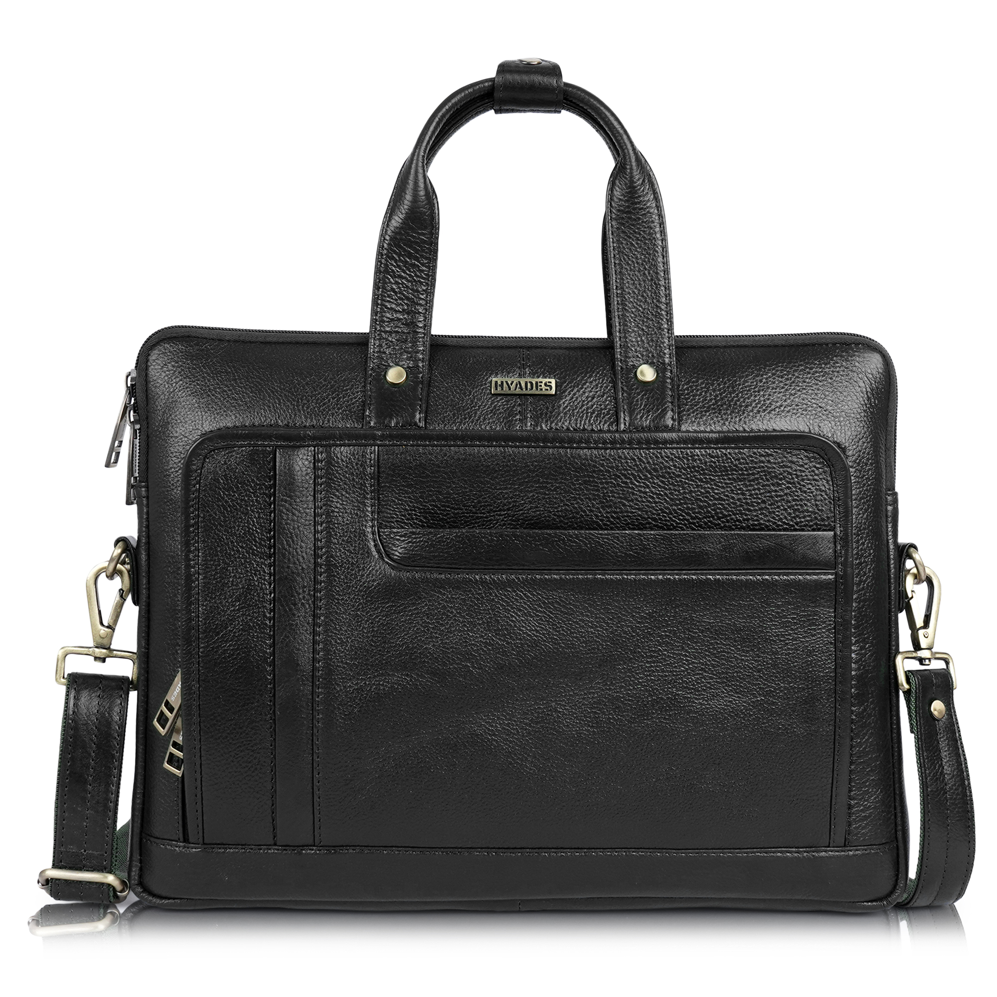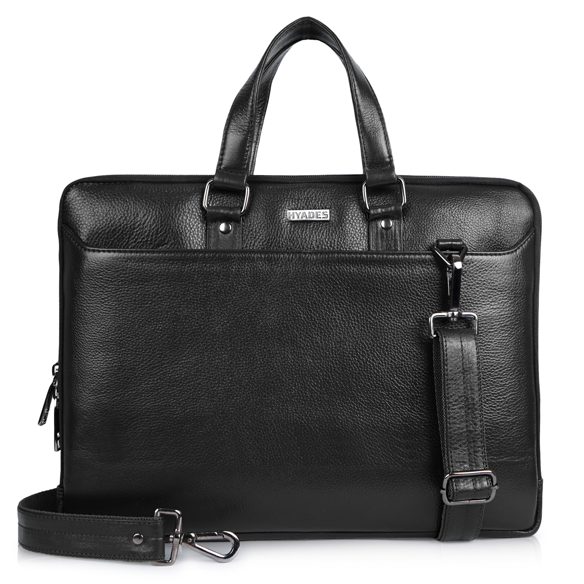 HYADES-MEDIUM-Classic Leather Laptop Bag for Office & Travel – 14.5 Inch Padded Sleeve- with detachable sling-BLACK