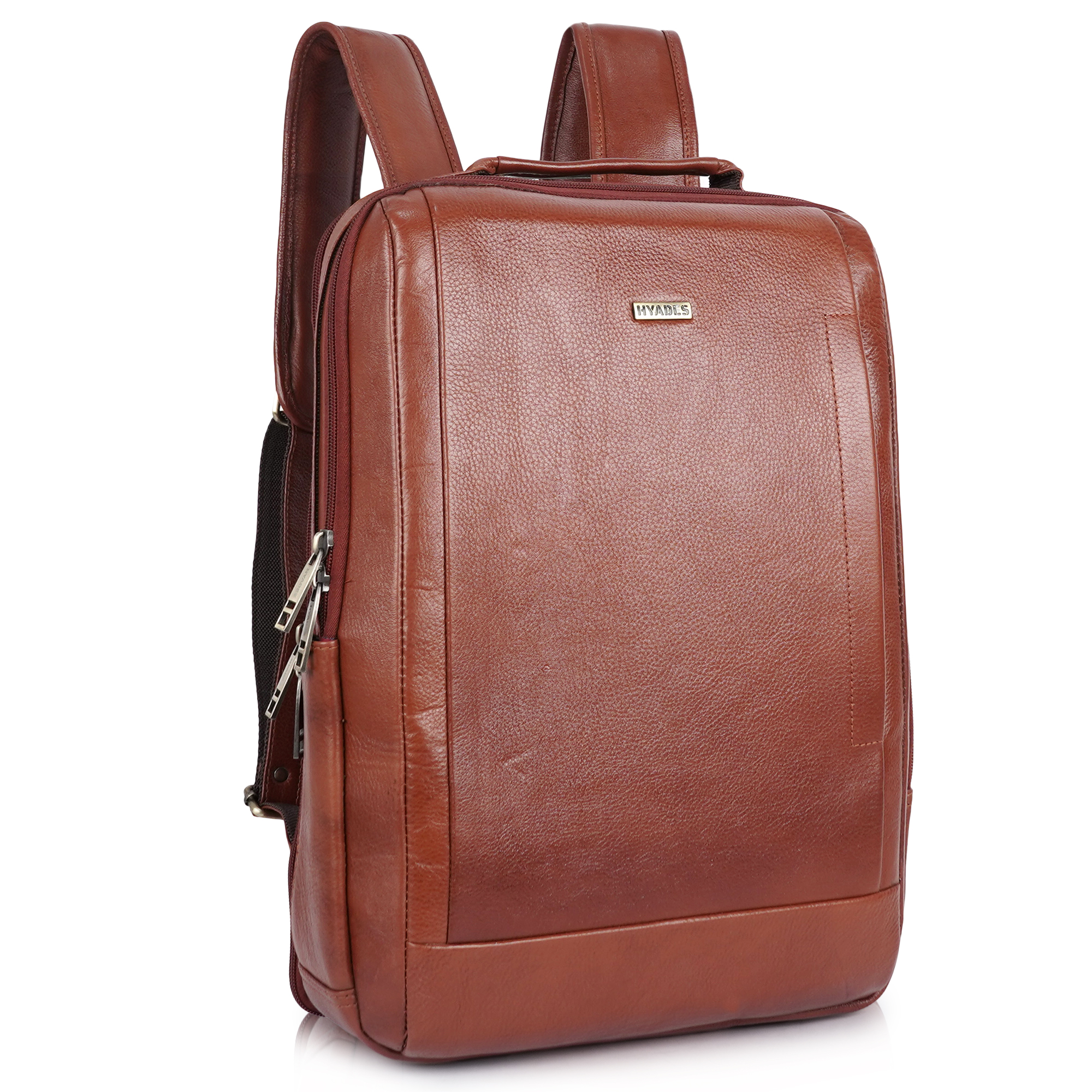 HYADES | Classic Pure Leather Office Leather Laptop Backpack for Men & Women | Laptop Bag 15.6 Inch | Travel Stylish College bag for boys | Office bag for man | BROWN