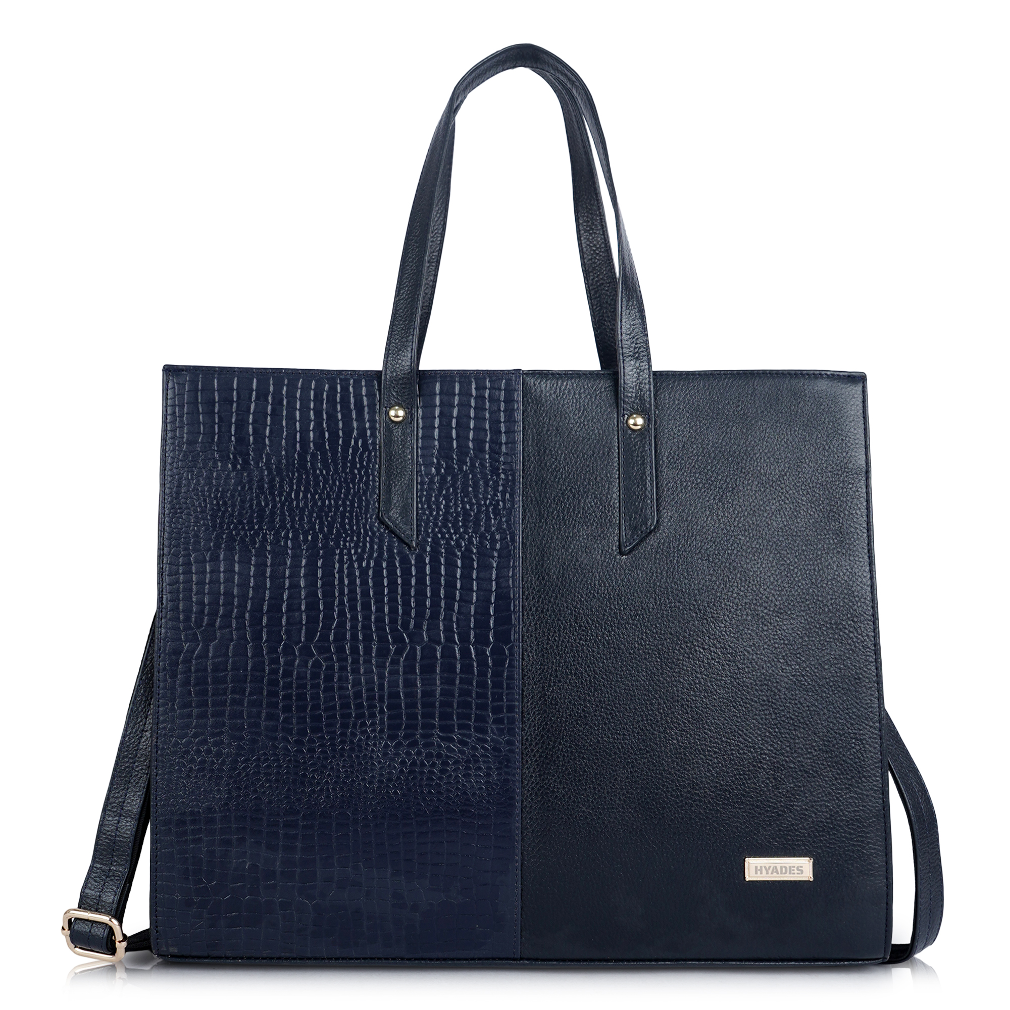 HYADES-TOTE BAG-pure leather tote bag for women-15inch laptop compatible-detachable sling-separate compartment for laptop-BLUE