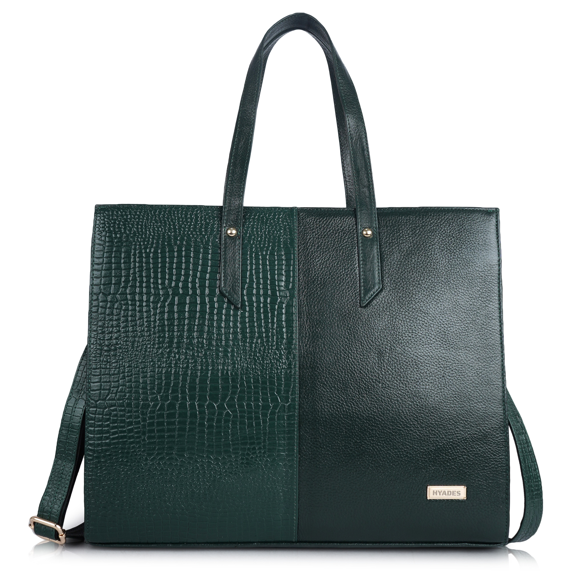 HYADES-TOTE BAG-pure leather tote bag for women-15inch laptop compatible-detachable sling-separate compartment for laptop-GREEN