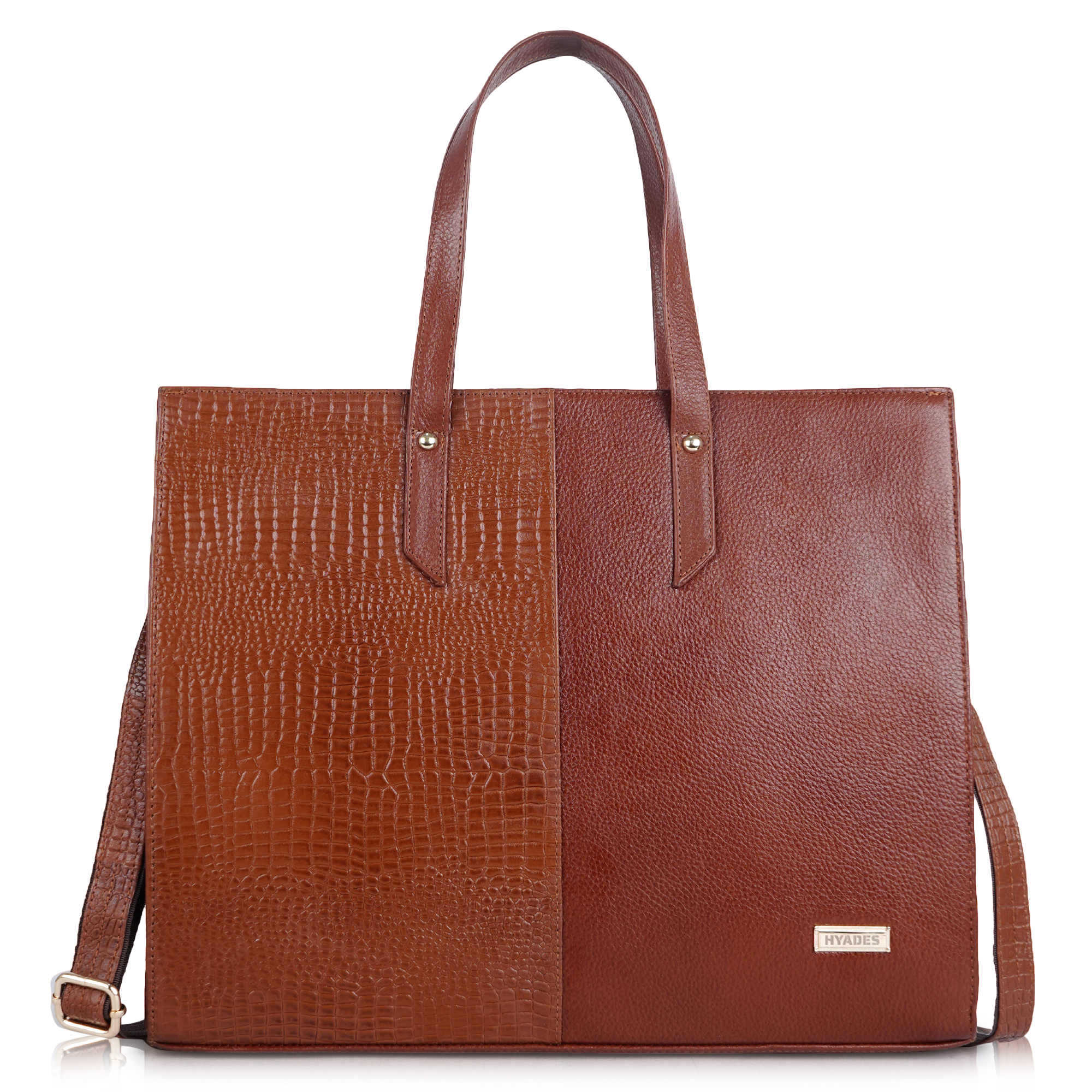 HYADES-TOTE BAG-pure leather tote bag for women-15inch laptop compatible-detachable sling-separate compartment for laptop-BROWN