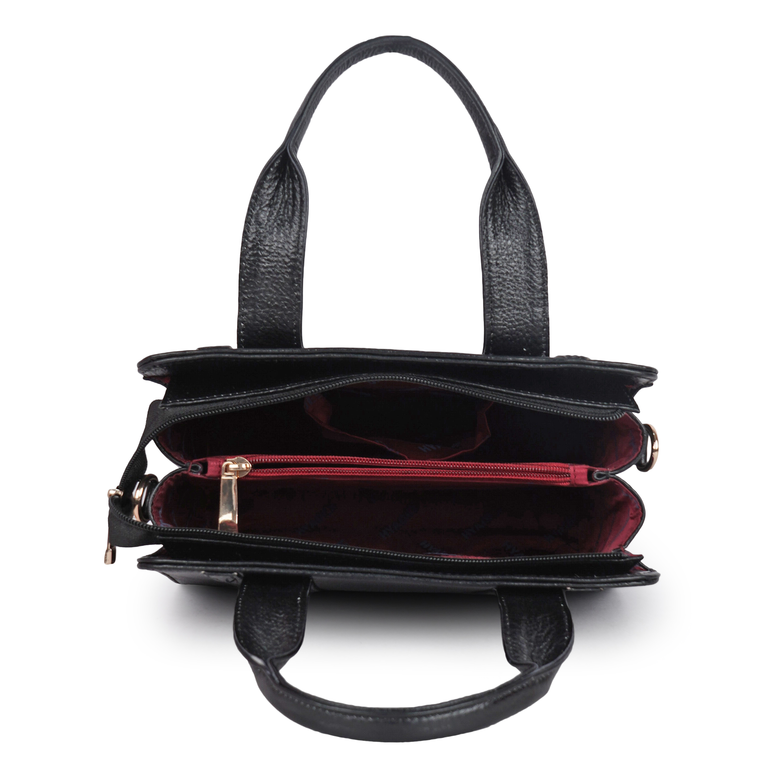Classic Brown Textured Leather Handbag for Women | Stylish Office & Daily Tote Bag | BLACK
