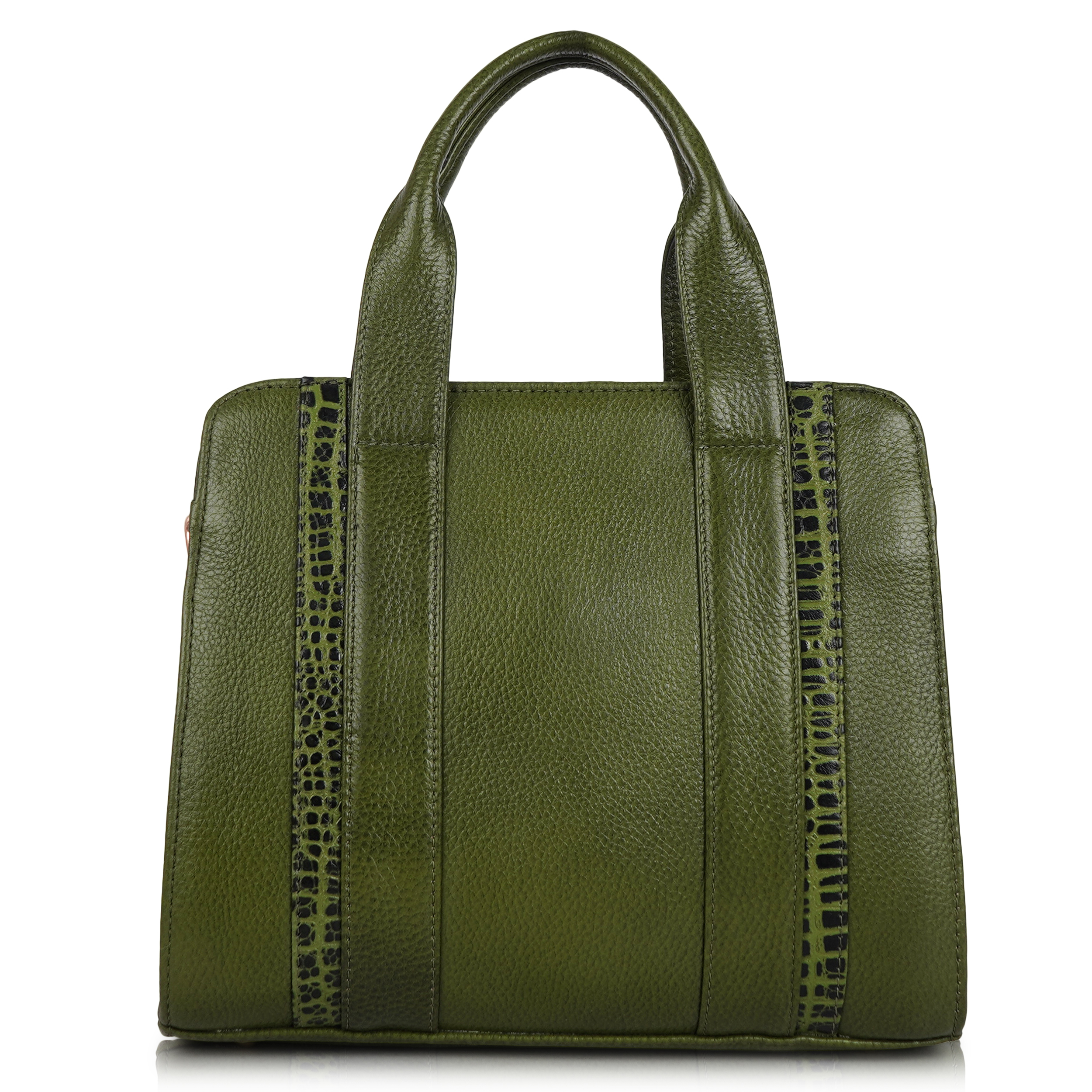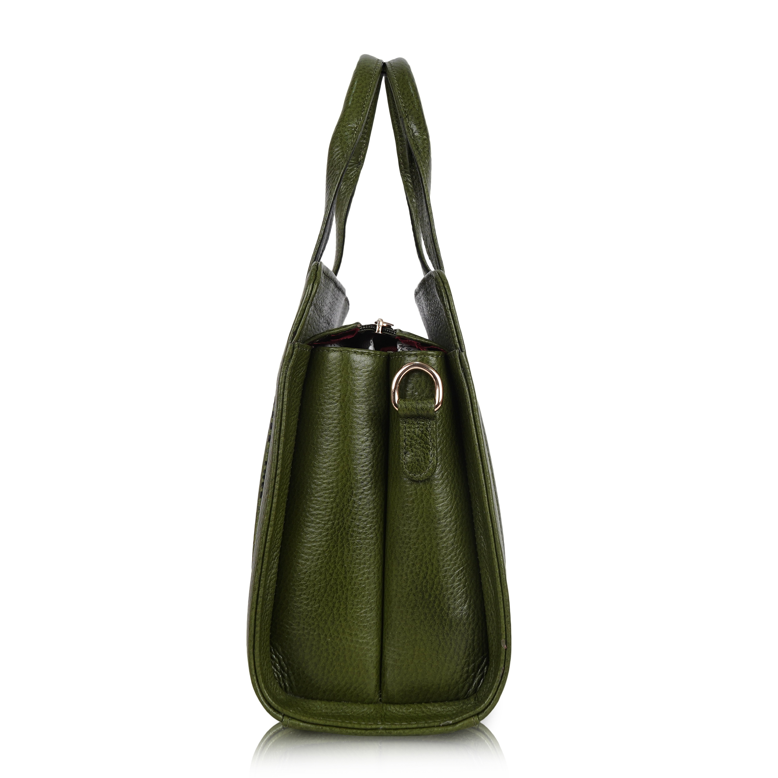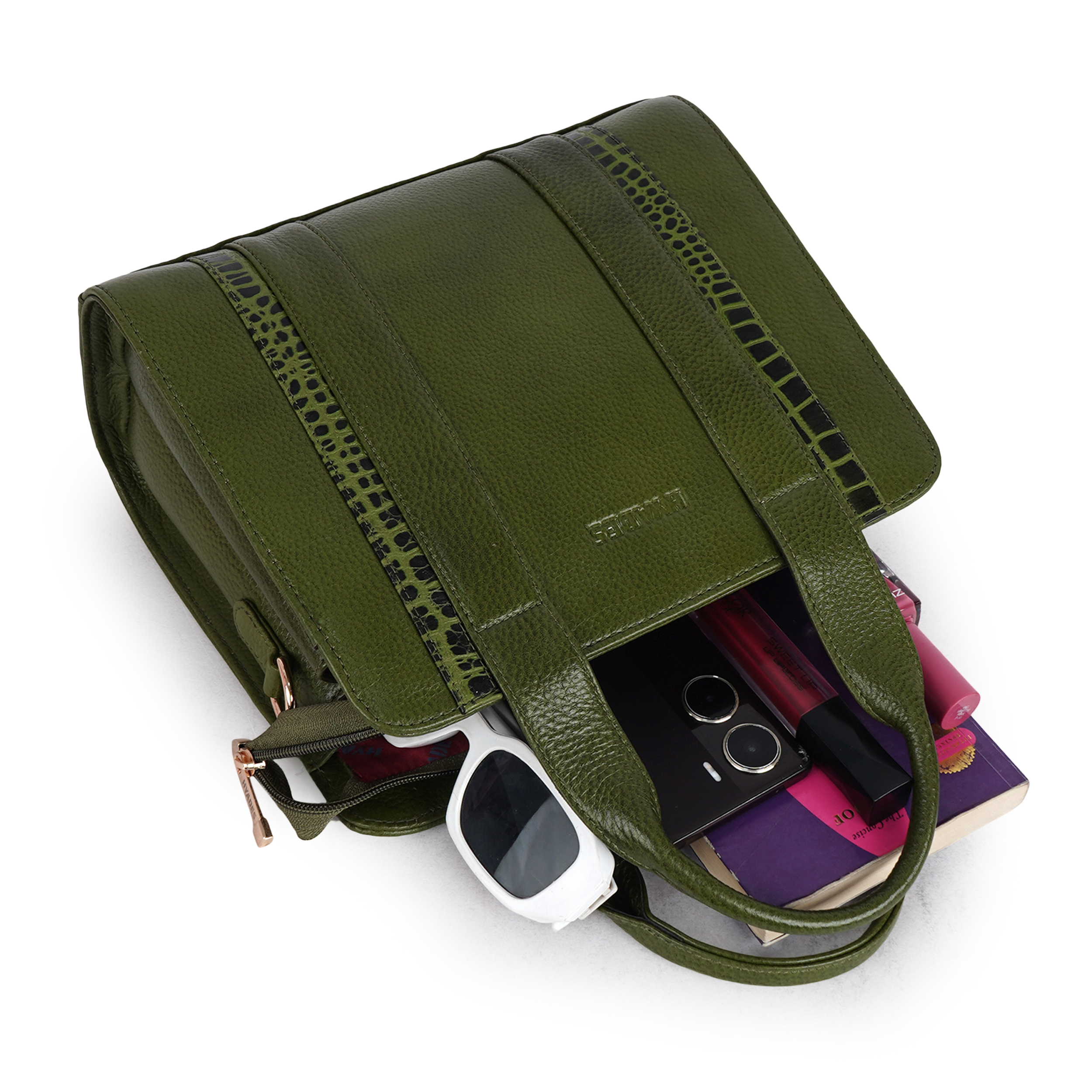 Classic Brown Textured Leather Handbag for Women | Stylish Office & Daily Tote Bag | GREEN