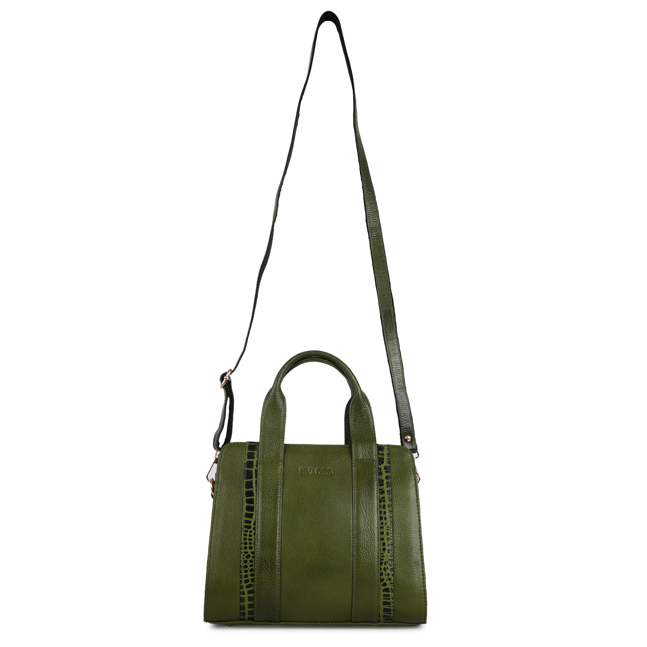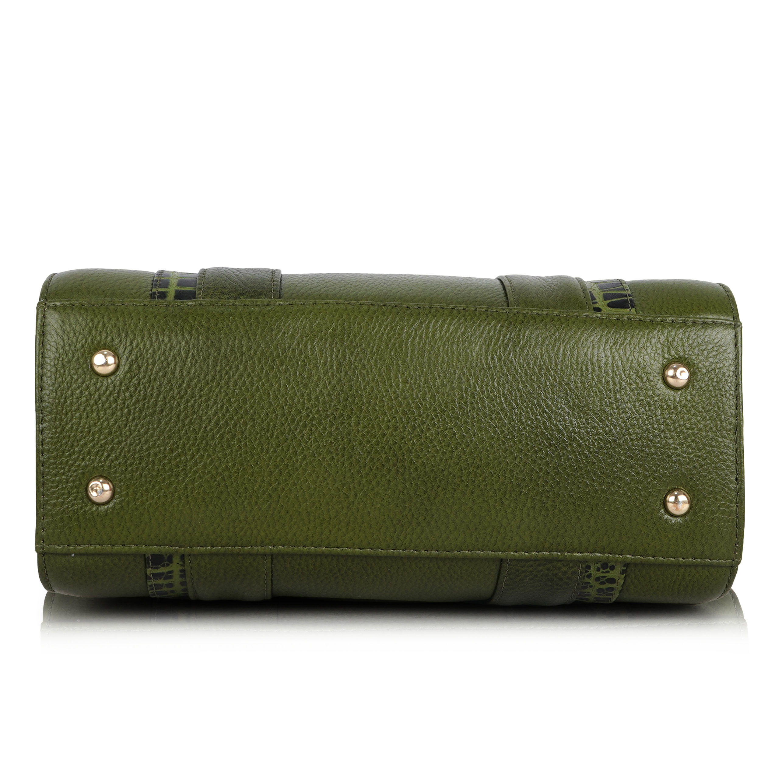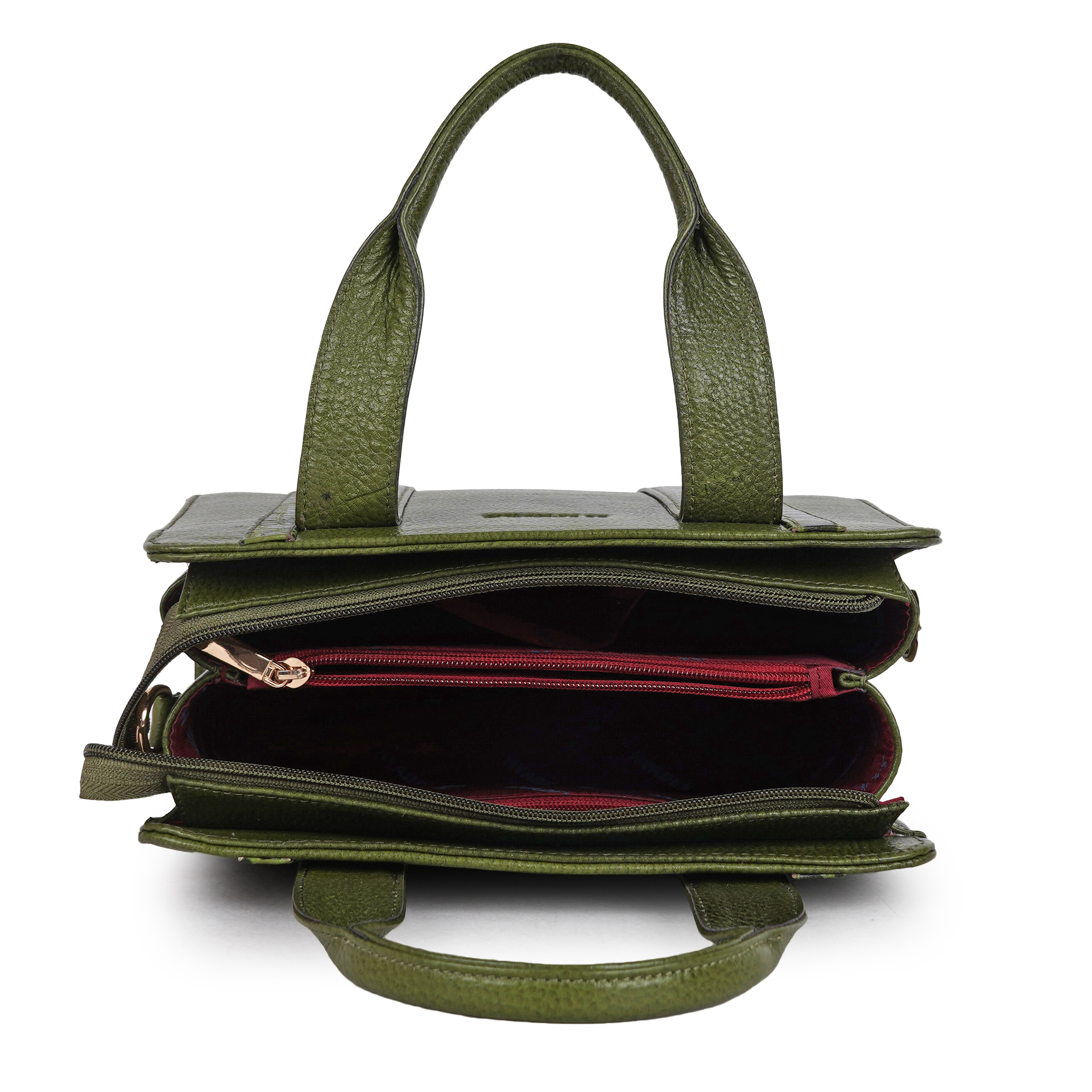 Classic Brown Textured Leather Handbag for Women | Stylish Office & Daily Tote Bag | GREEN