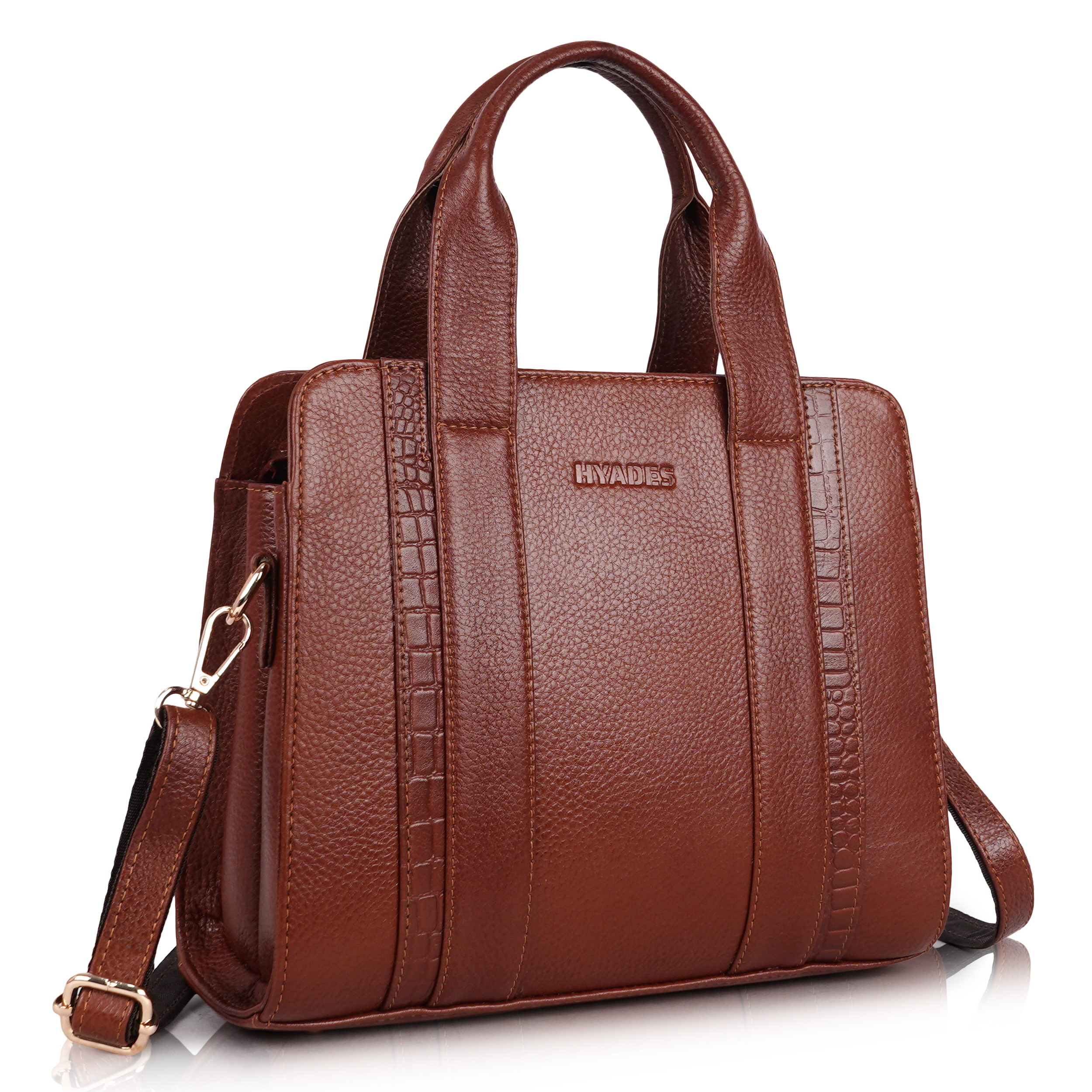 This elegant leather satchel handbag combines timeless style with practical functionality. Crafted from premium full-grain leather, it features a spacious interior with multiple compartments, and a detachable shoulder strap for versatile carrying options. Perfect for both professional and casual situations.