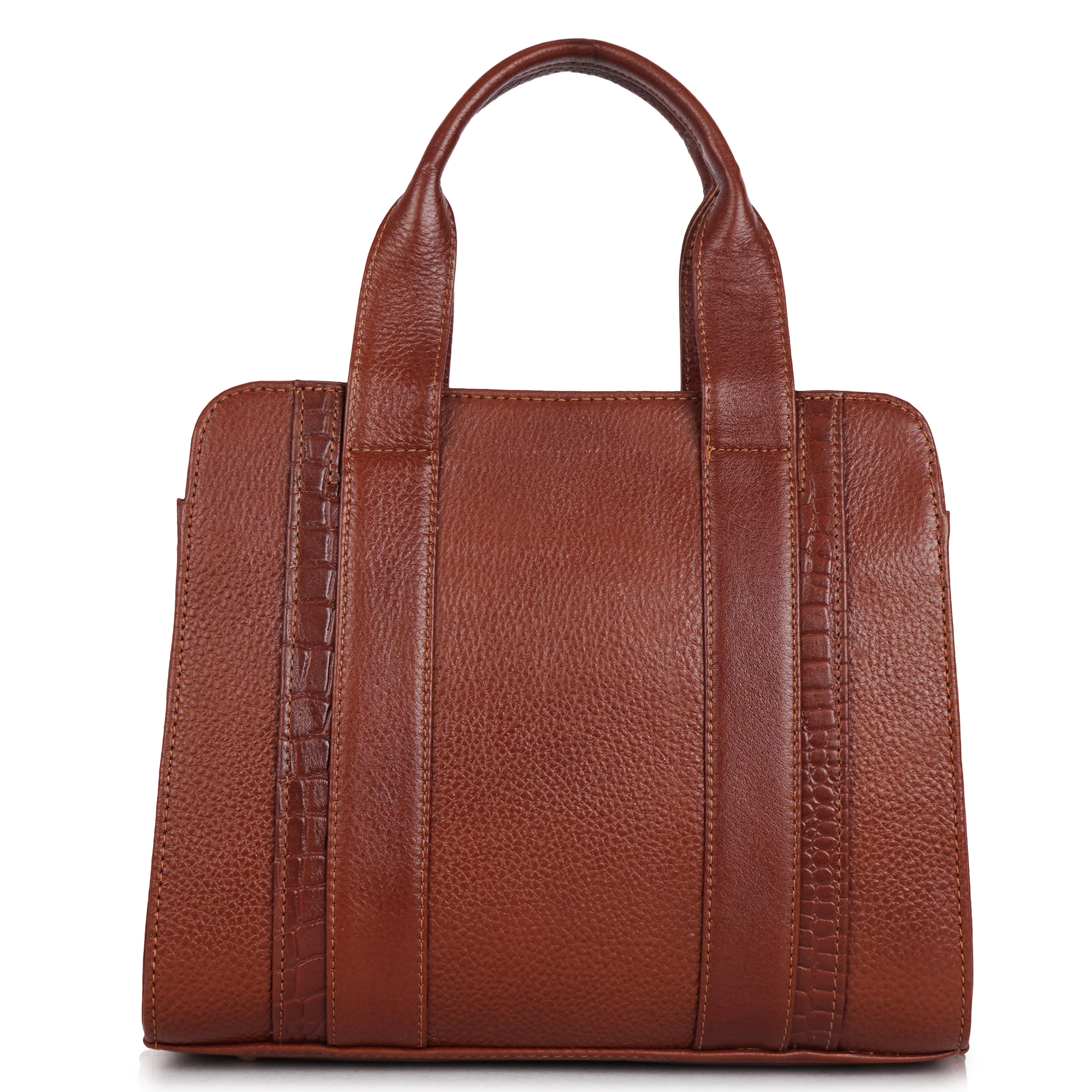 Classic Brown Textured Leather Handbag for Women | Stylish Office & Daily Tote Bag | TAN