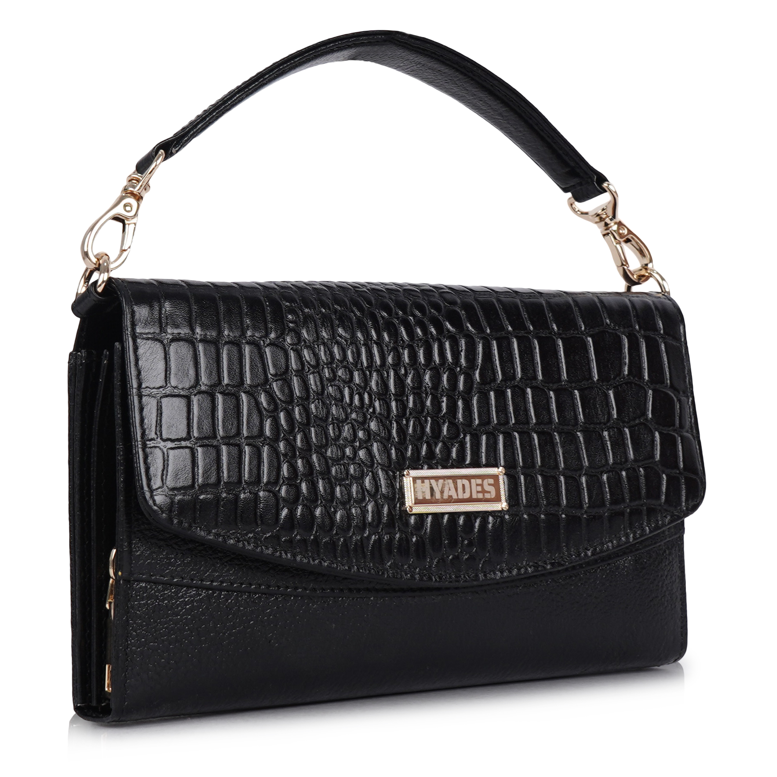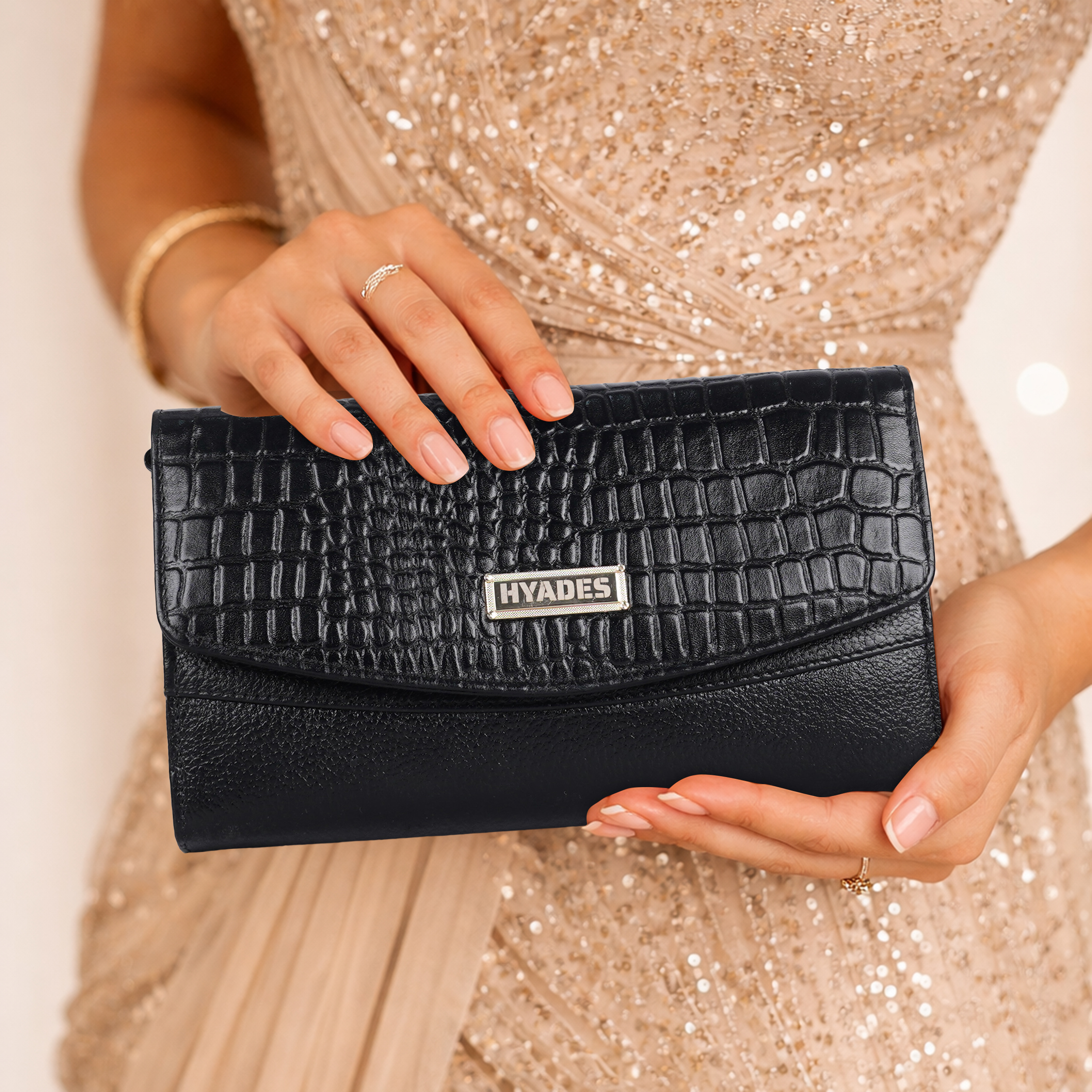 Croco Embossed Shoulder Clutch Bag | Stylish Mini Handbag | Elegant Party Purse | Black