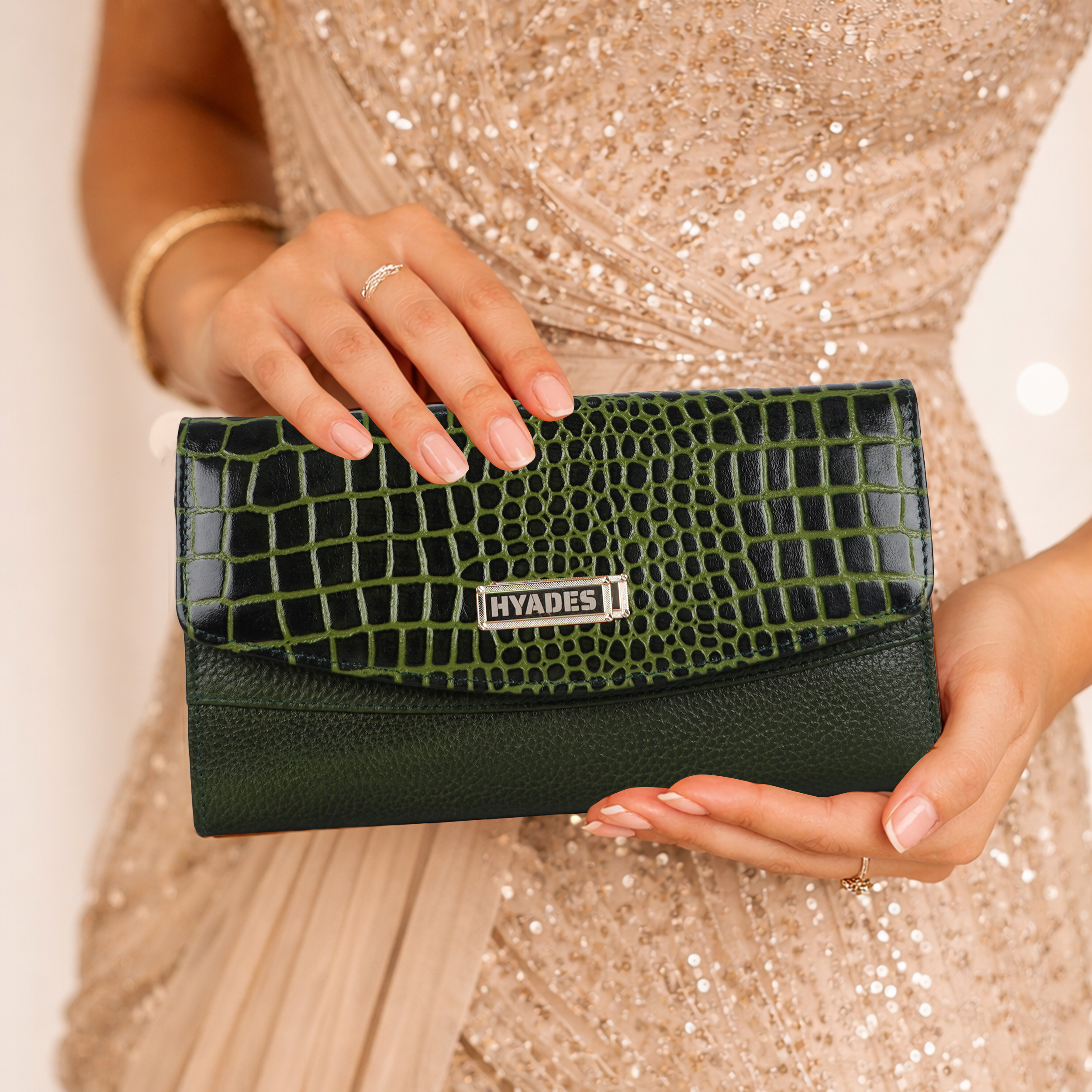 Croco Embossed Shoulder Clutch Bag | Stylish Mini Handbag | Elegant Party Purse | GREEN