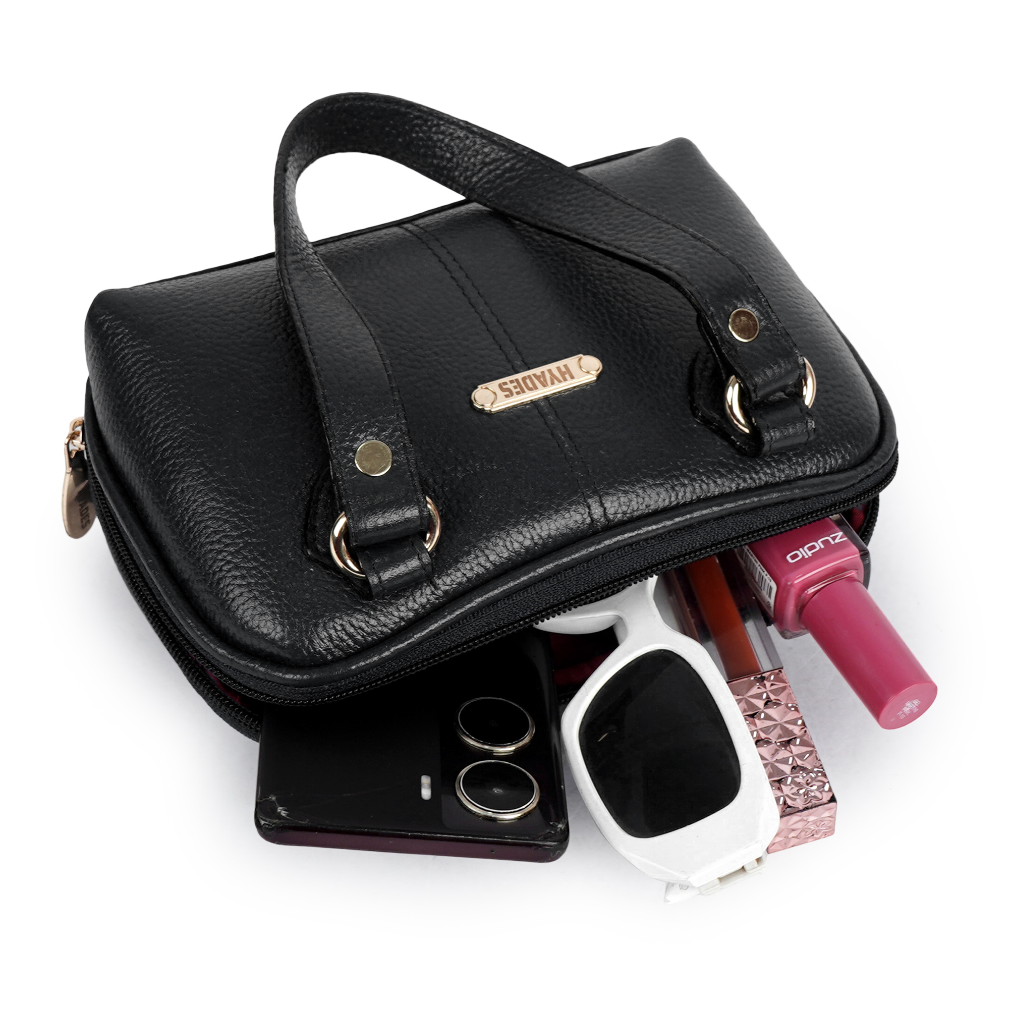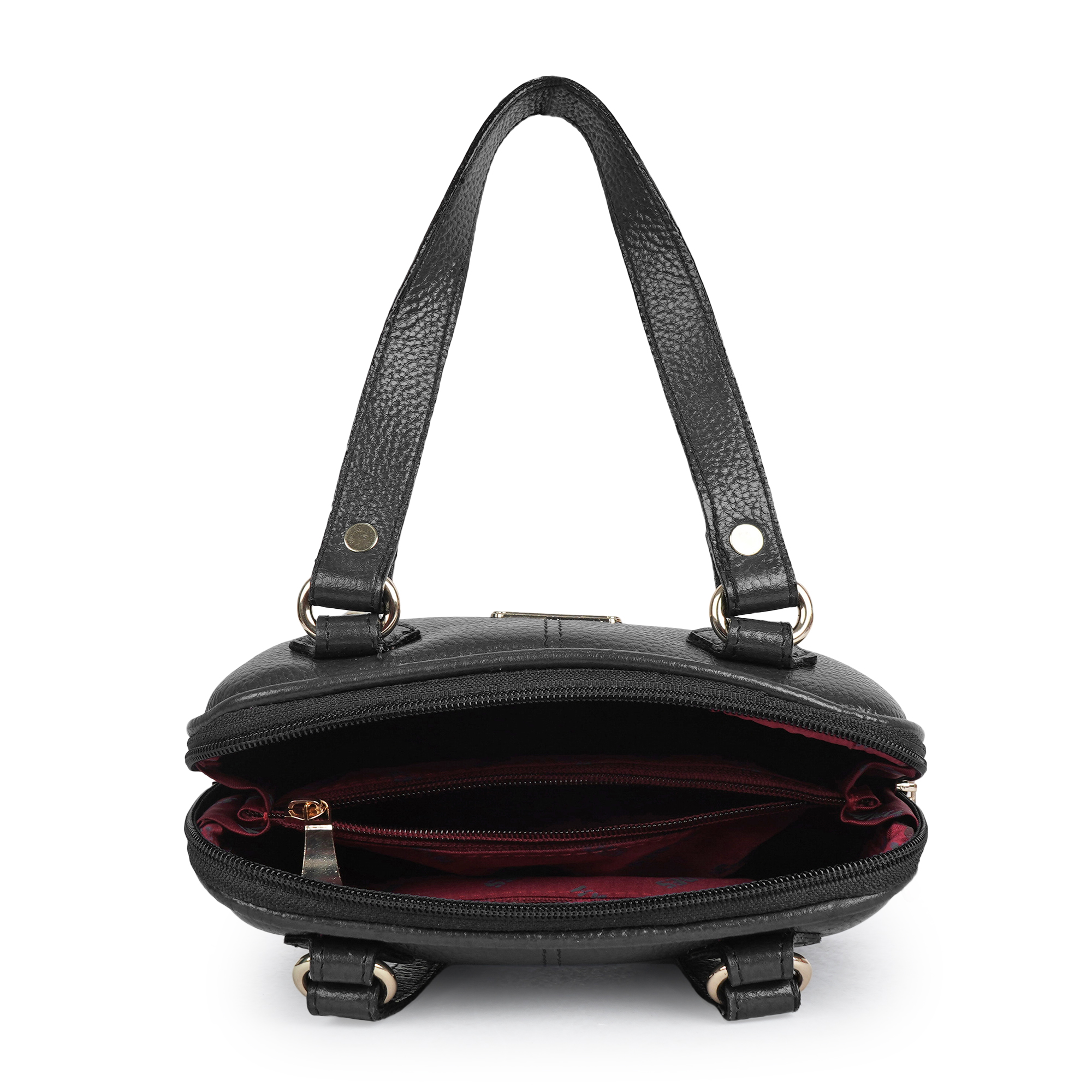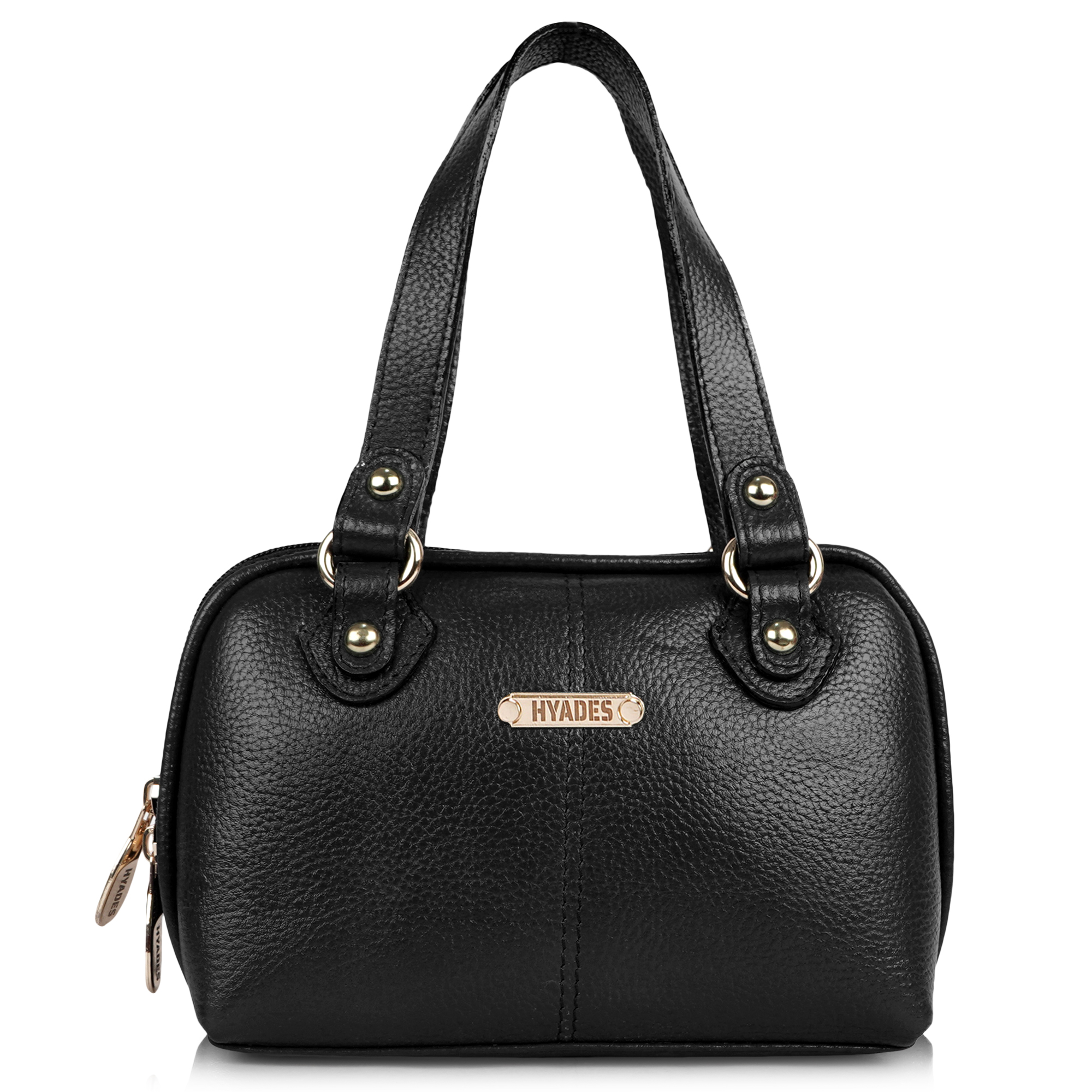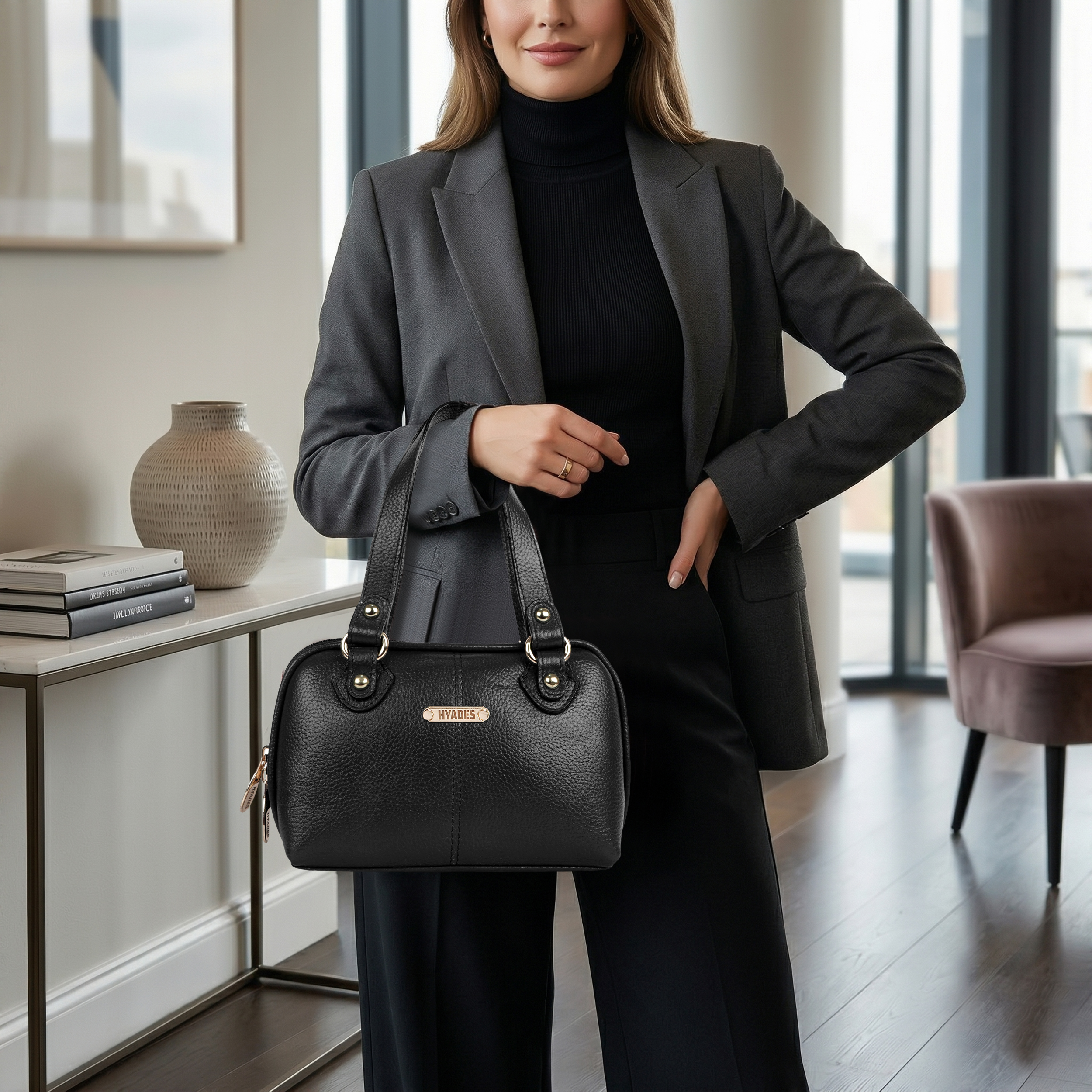 HYADES Classic Textured Leather Top Handle Shoulder Handbag | BLACK
