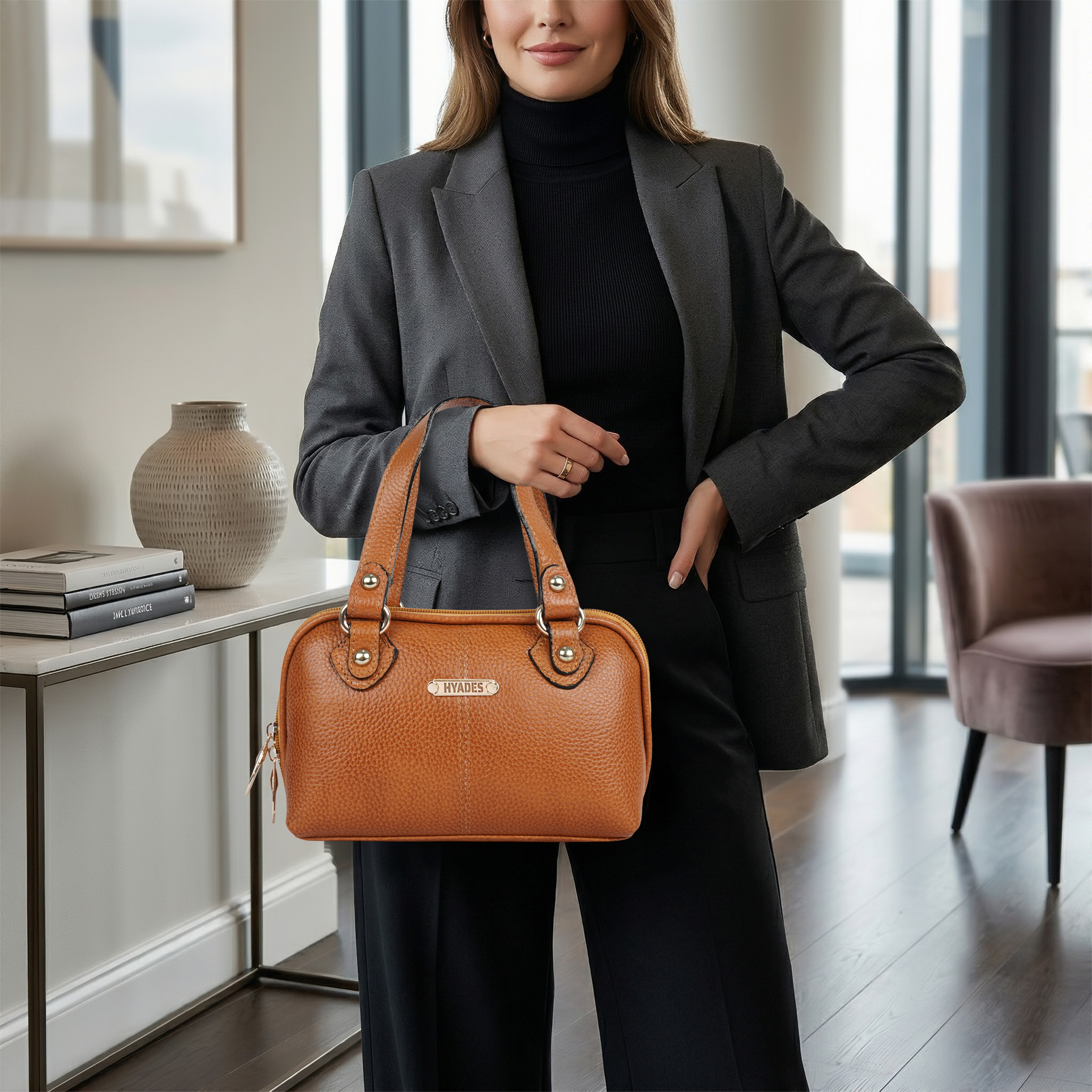 This elegant leather satchel handbag combines timeless style with practical functionality. Crafted from premium full-grain leather, it features a spacious interior with multiple compartments, and a detachable shoulder strap for versatile carrying options. Perfect for both professional and casual situations.