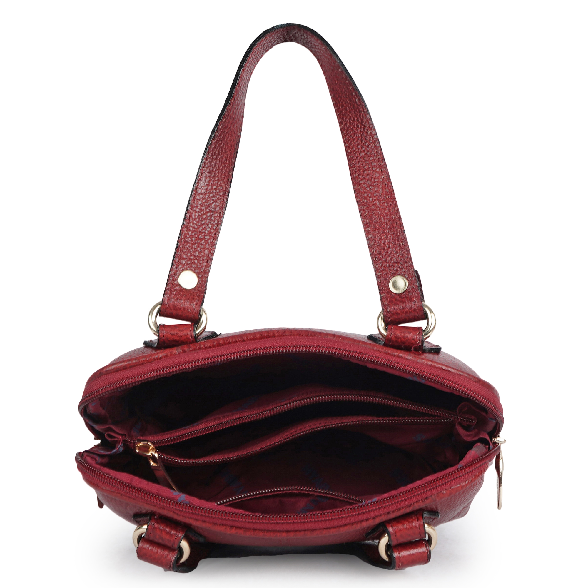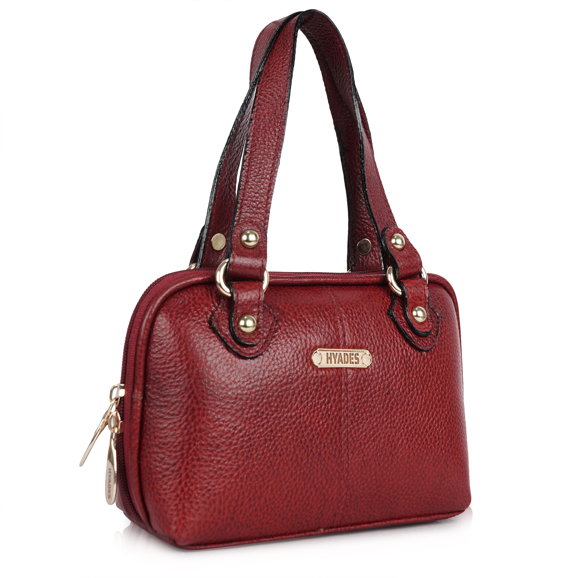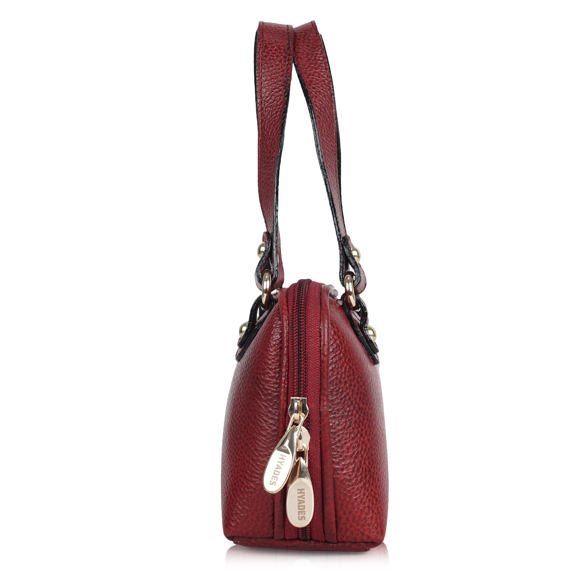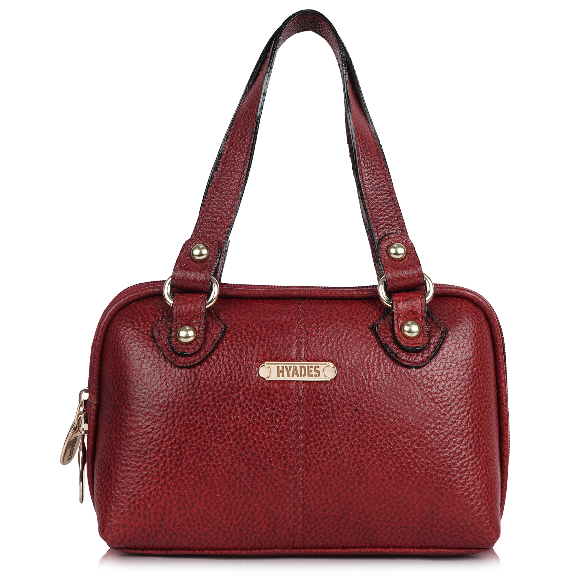 HYADES Classic Textured Leather Top Handle Shoulder Handbag | RED