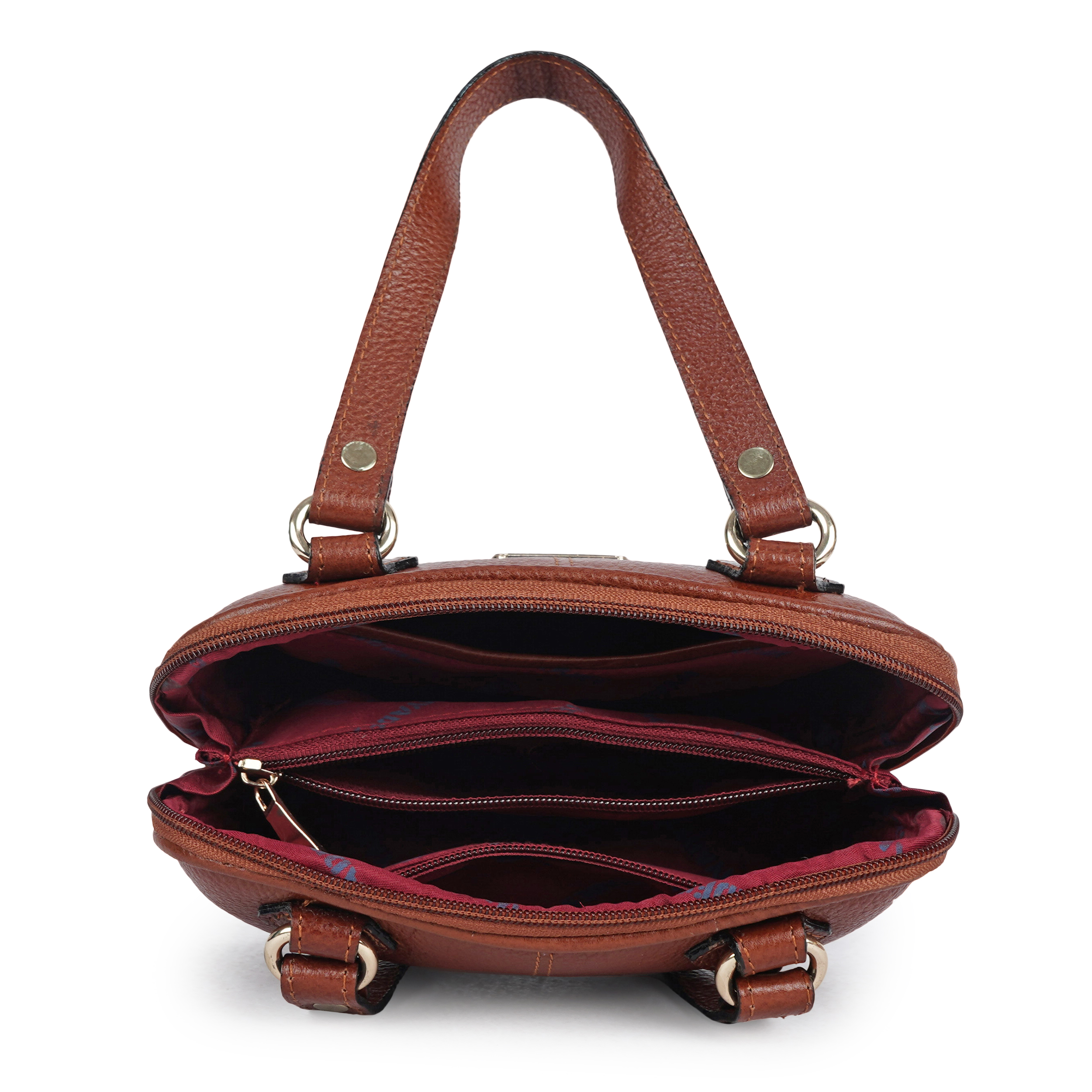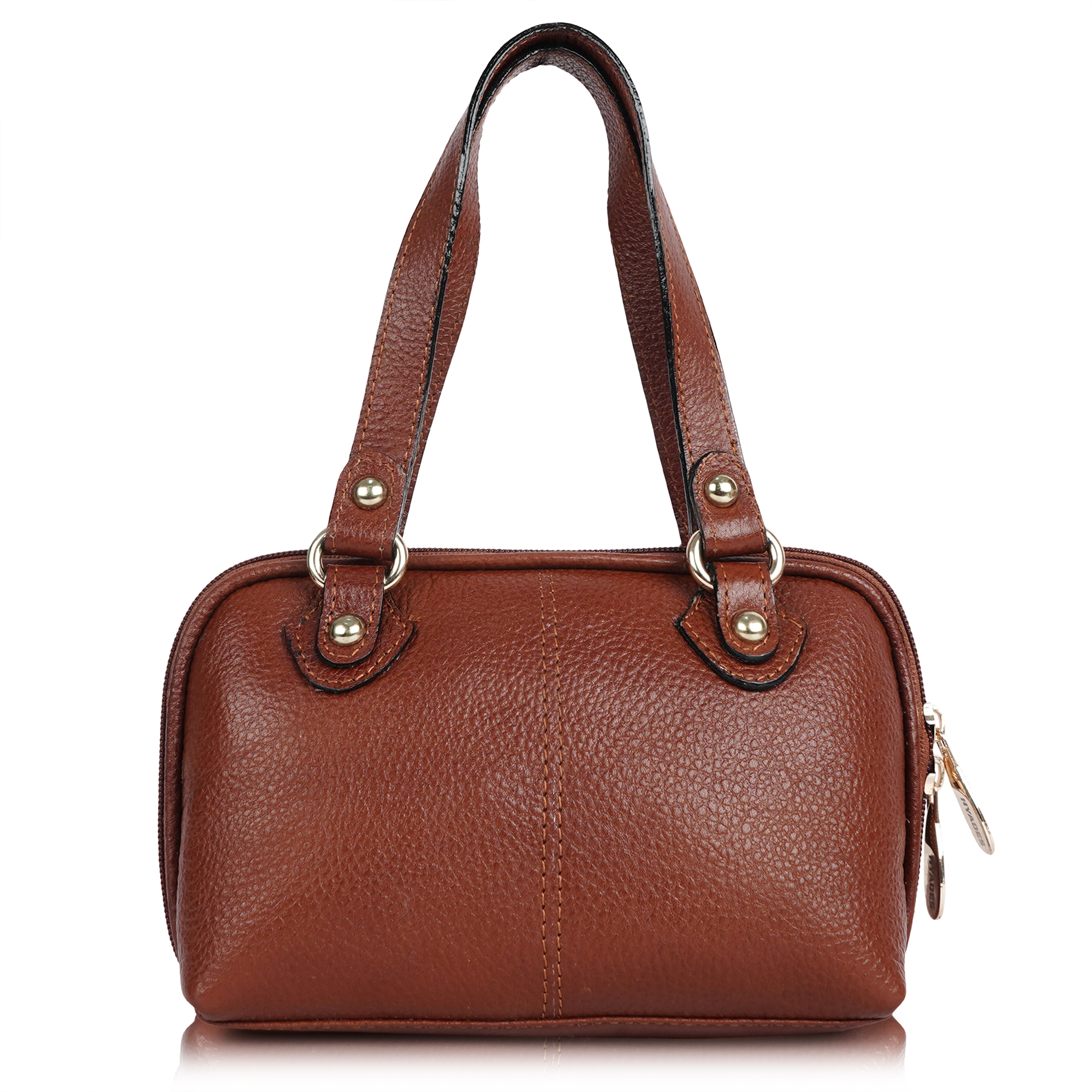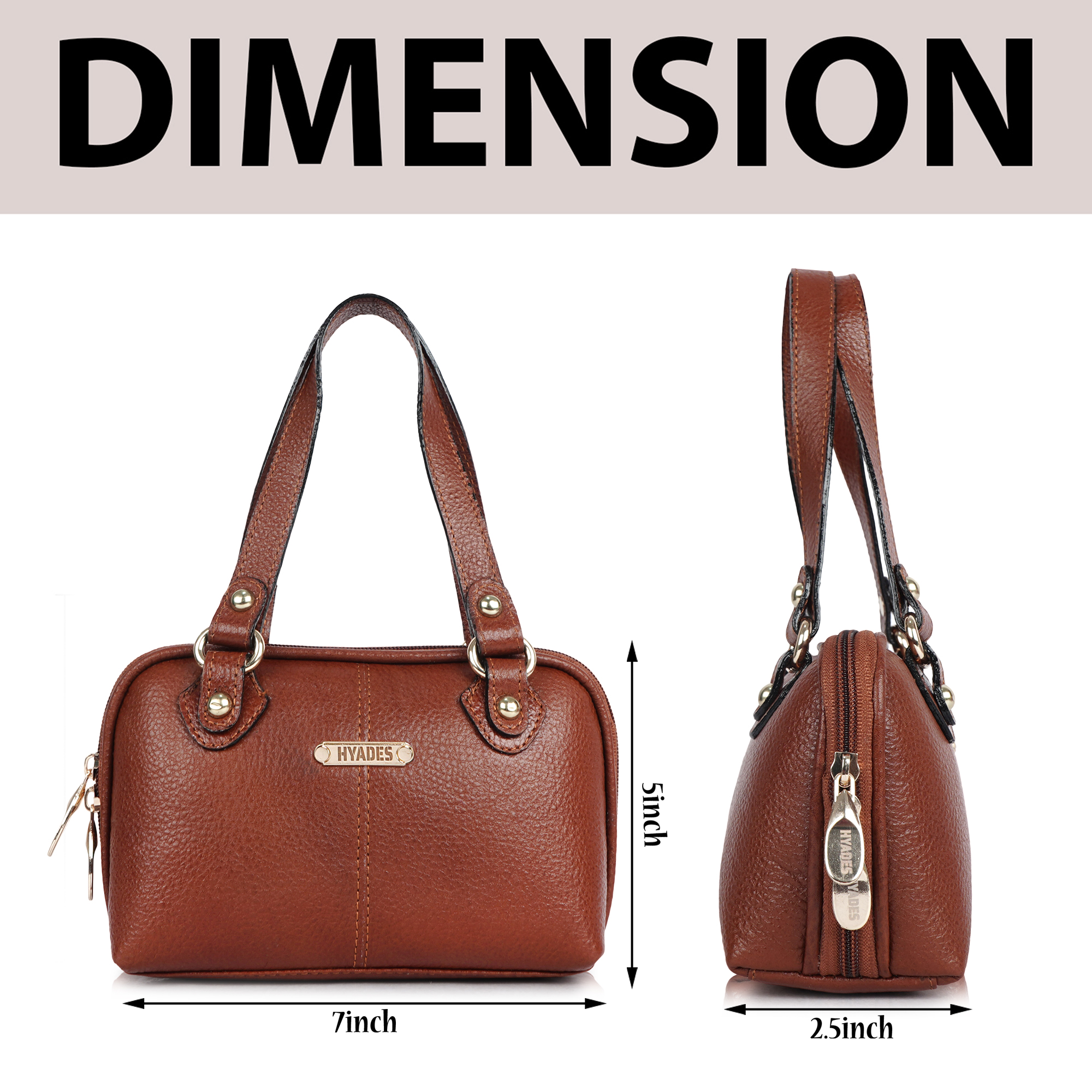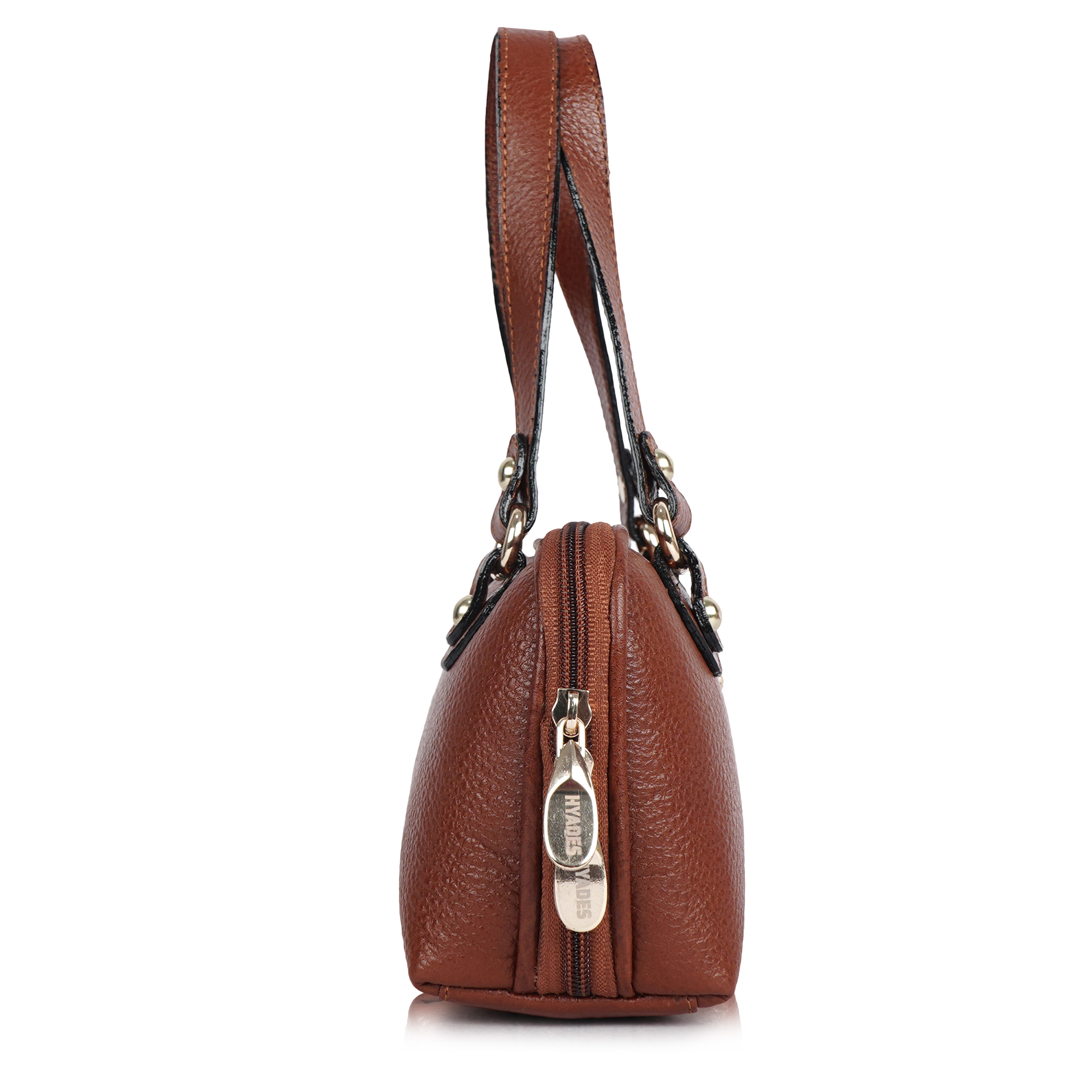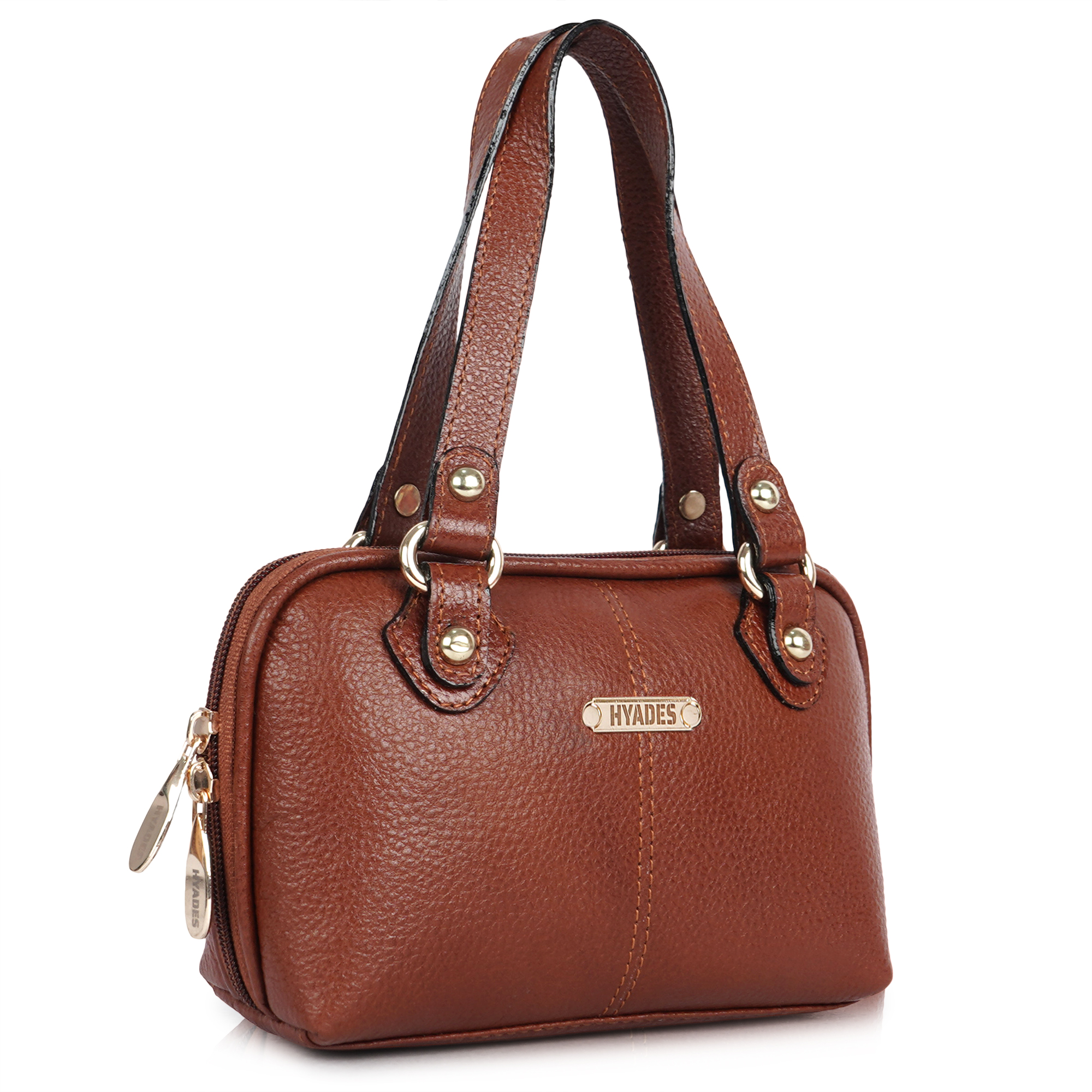 HYADES Classic Textured Leather Top Handle Shoulder Handbag | TAN