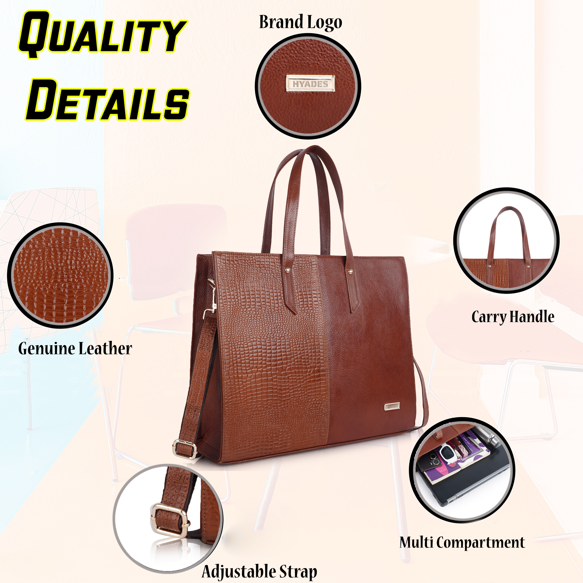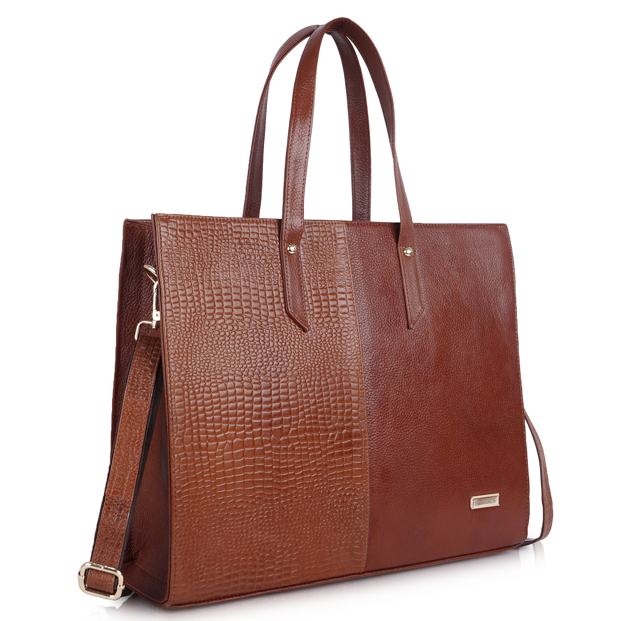 HYADES-TOTE BAG-pure leather tote bag for women-15inch laptop compatible-detachable sling-separate compartment for laptop-TAN