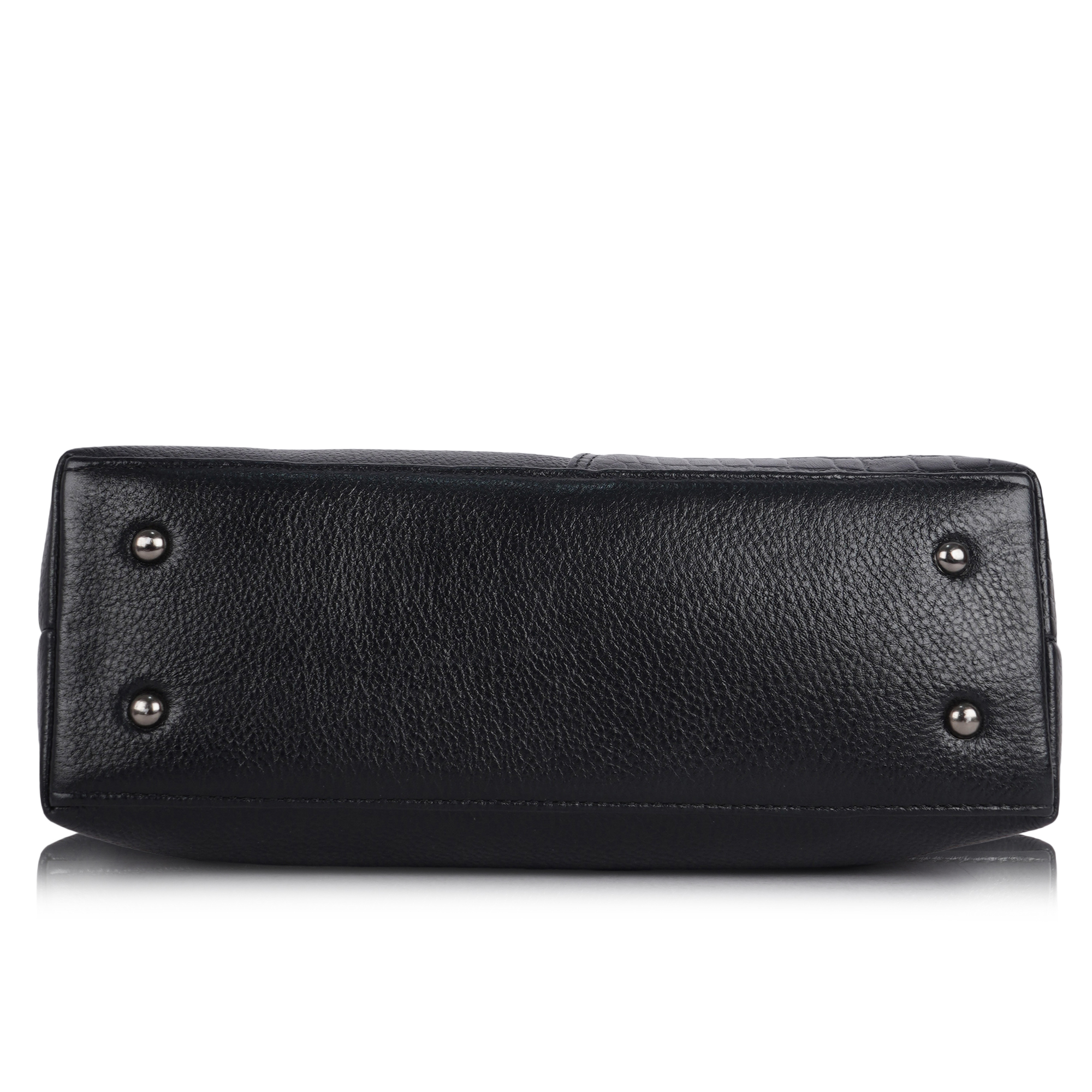 Keep in dust bag when not in use. Clean with soft cloth & leather cream. Avoid exposure to excess heat & water to maintain authentic shine of natural leather.