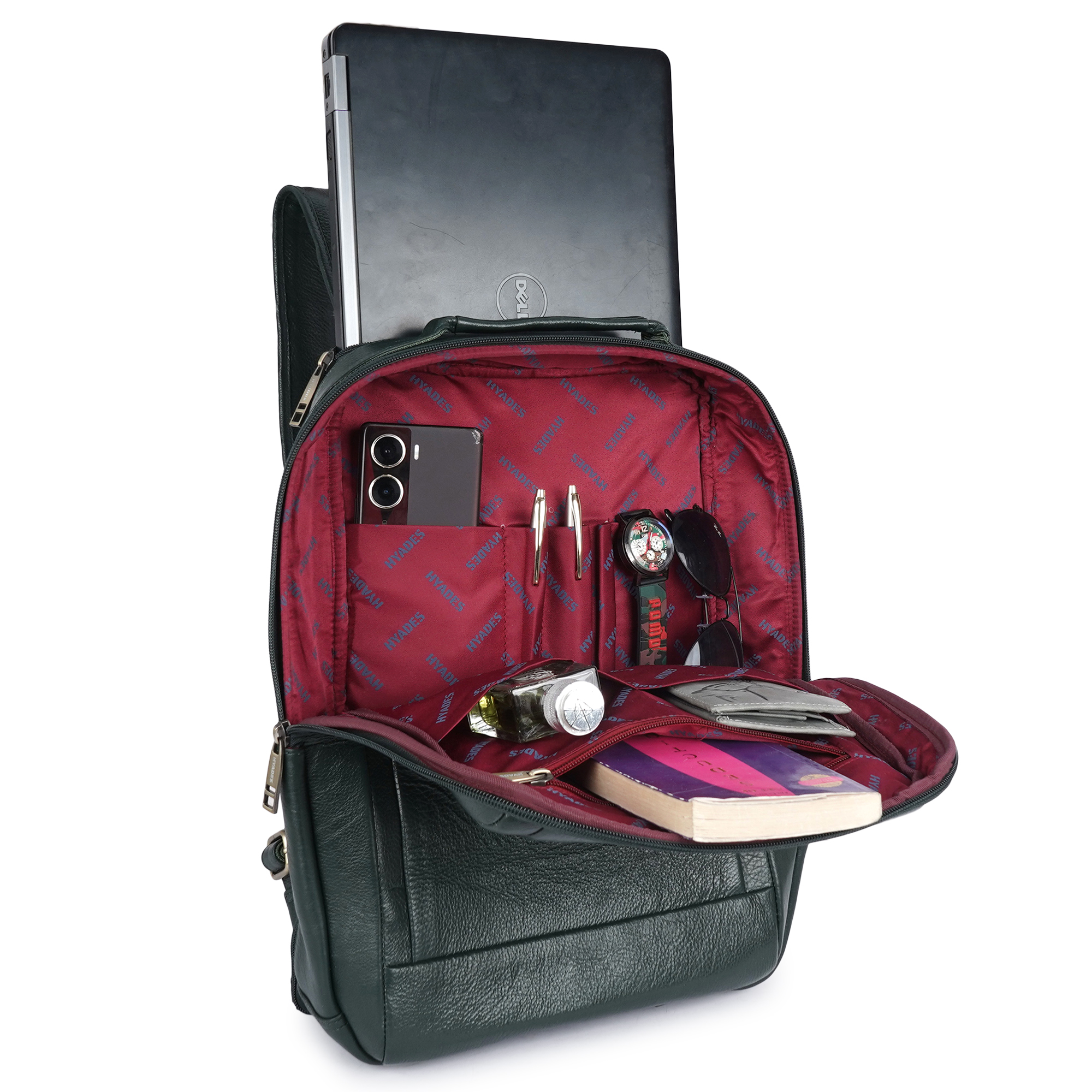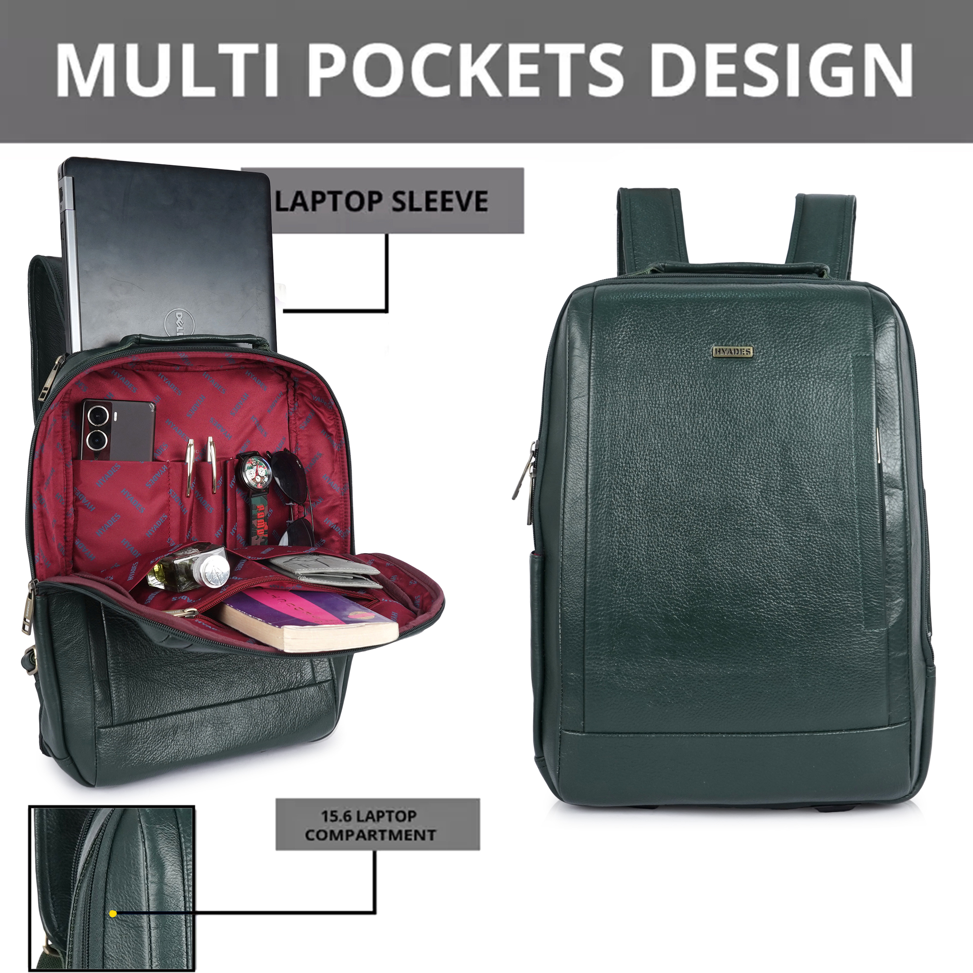 HYADES | Classic Pure Leather Office Leather Laptop Backpack for Men & Women | Laptop Bag 15.6 Inch | Travel Stylish College bag for boys | Office bag for man | GREEN