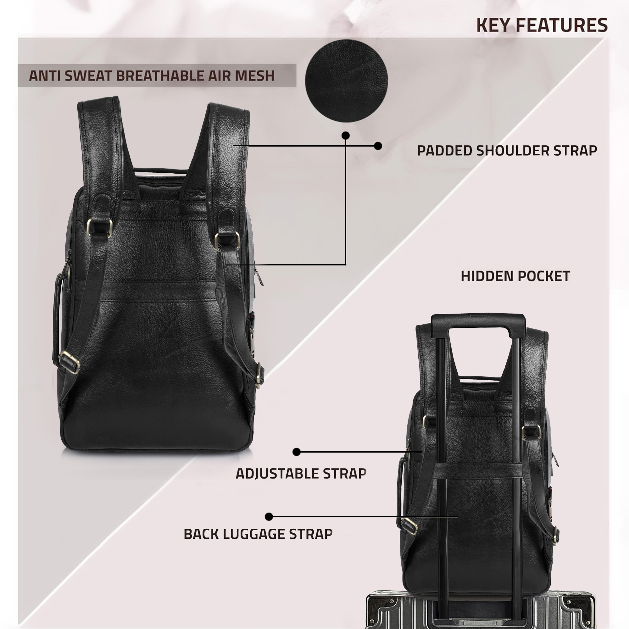 Interior & Exterior Details : separate compartment for laptop and accessories.