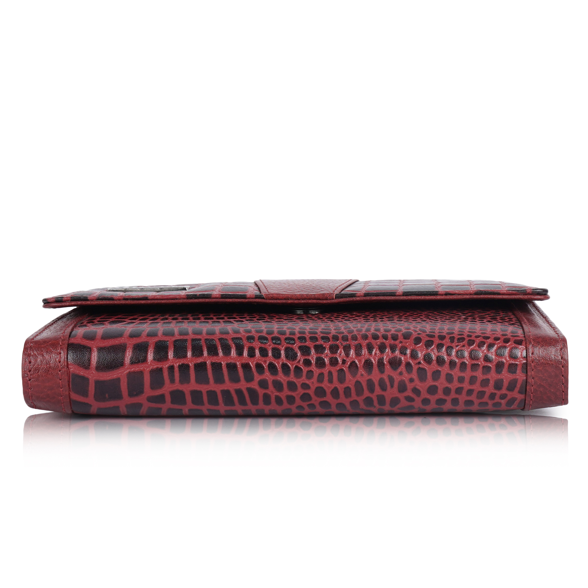 Keep in dust bag when not in use. Clean with soft cloth & leather cream. Avoid exposure to excess heat & water to maintain authentic shine of natural leather.