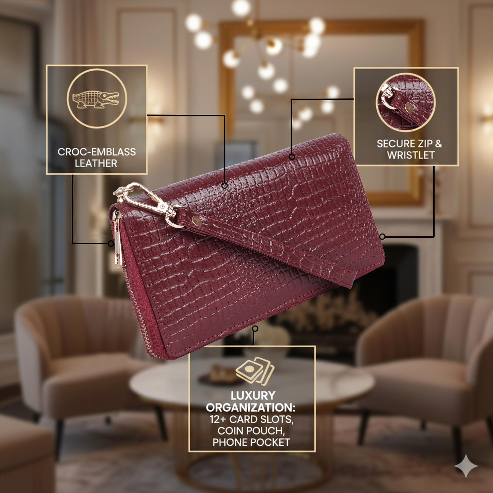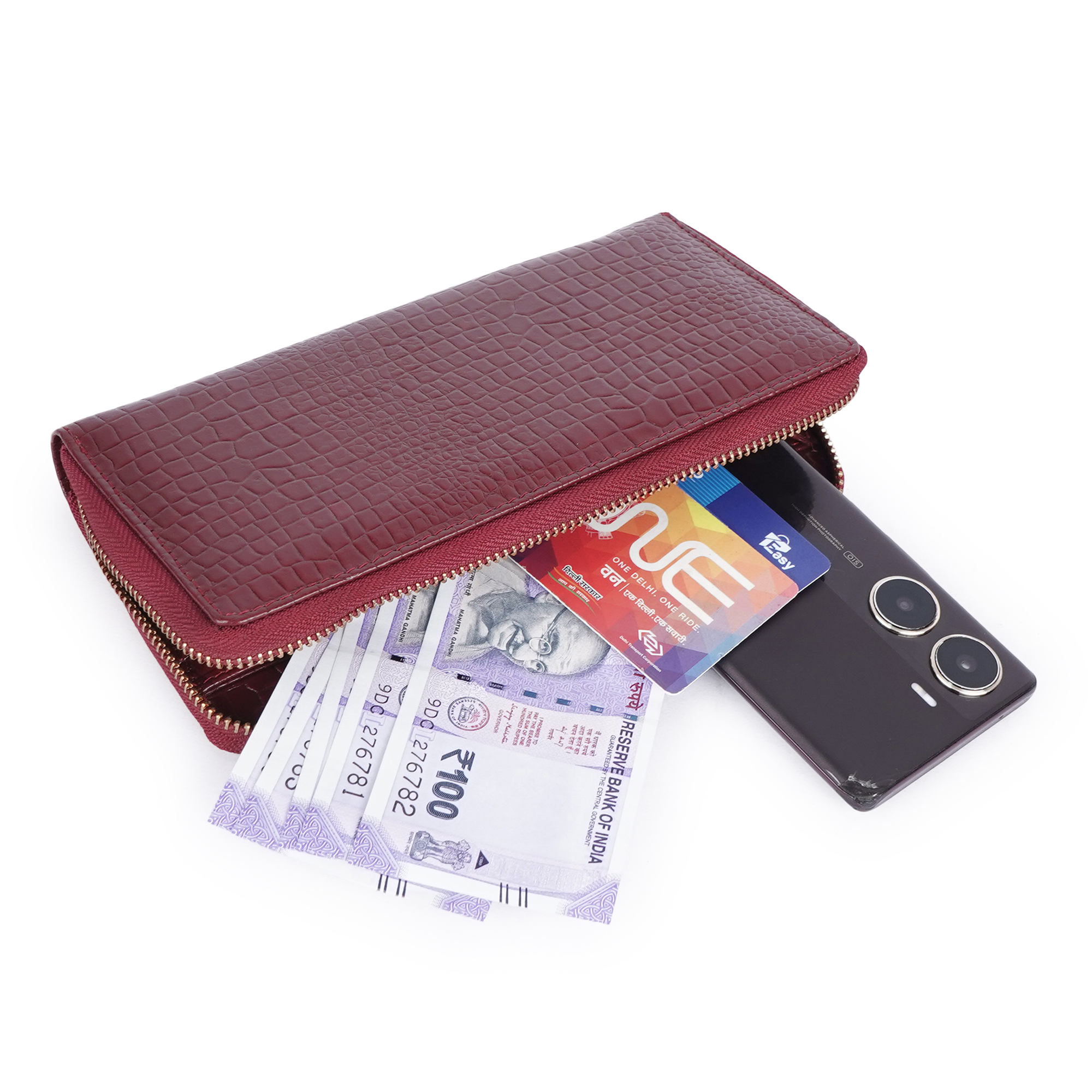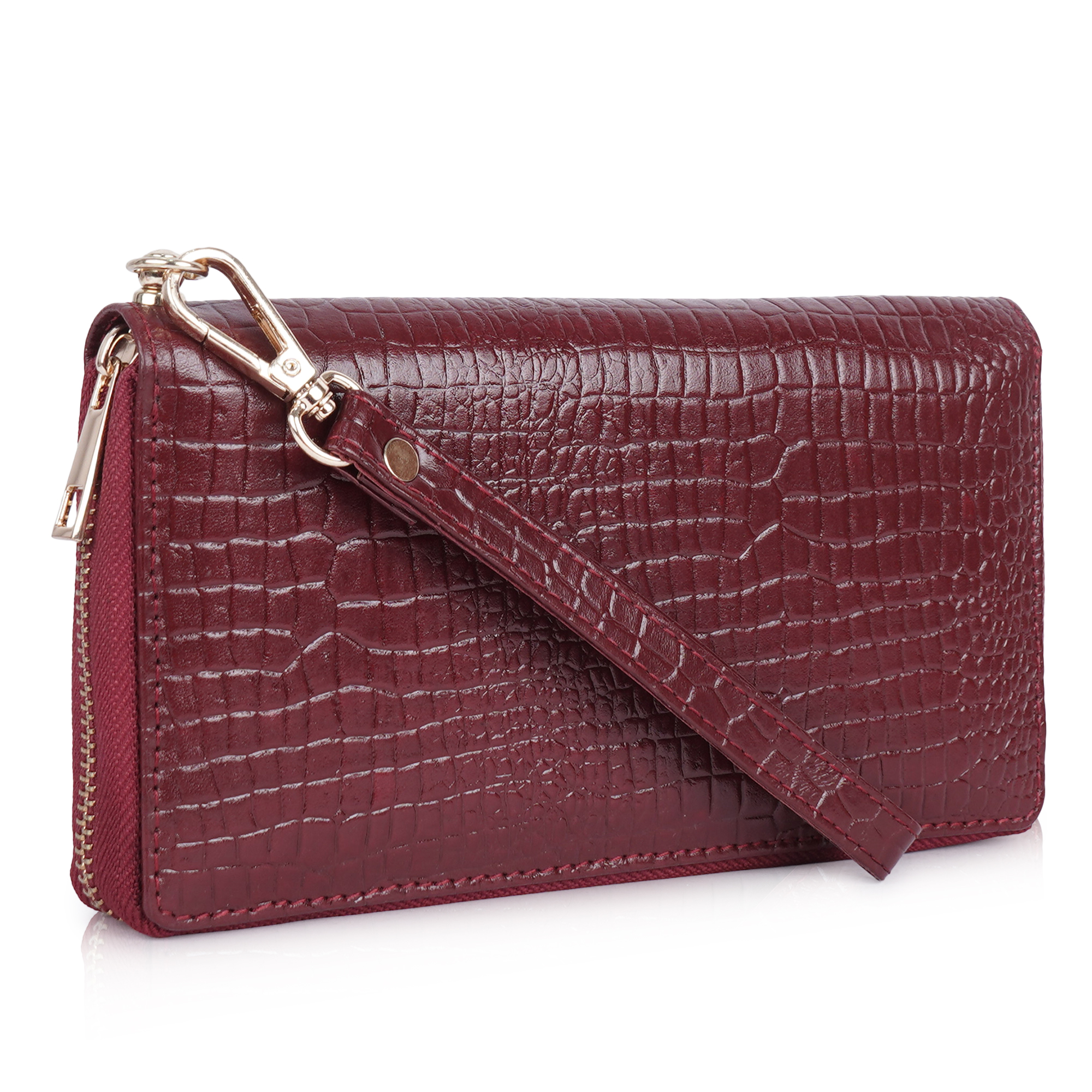 HYADES | CROCO designed pure leather hand clutch for women | RED