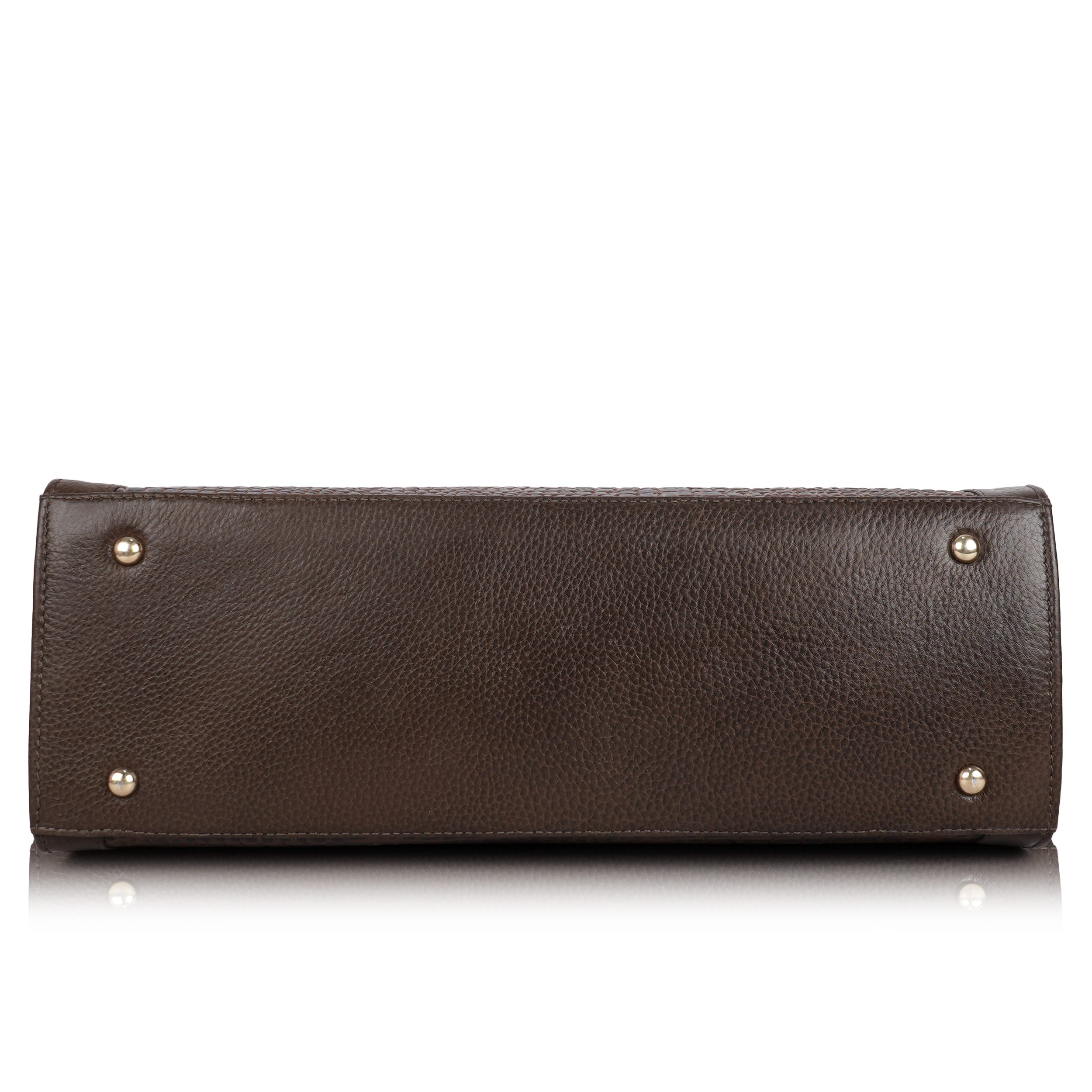 Keep in dust bag when not in use. Clean with soft cloth & leather cream. Avoid exposure to excess heat & water to maintain authentic shine of natural leather.