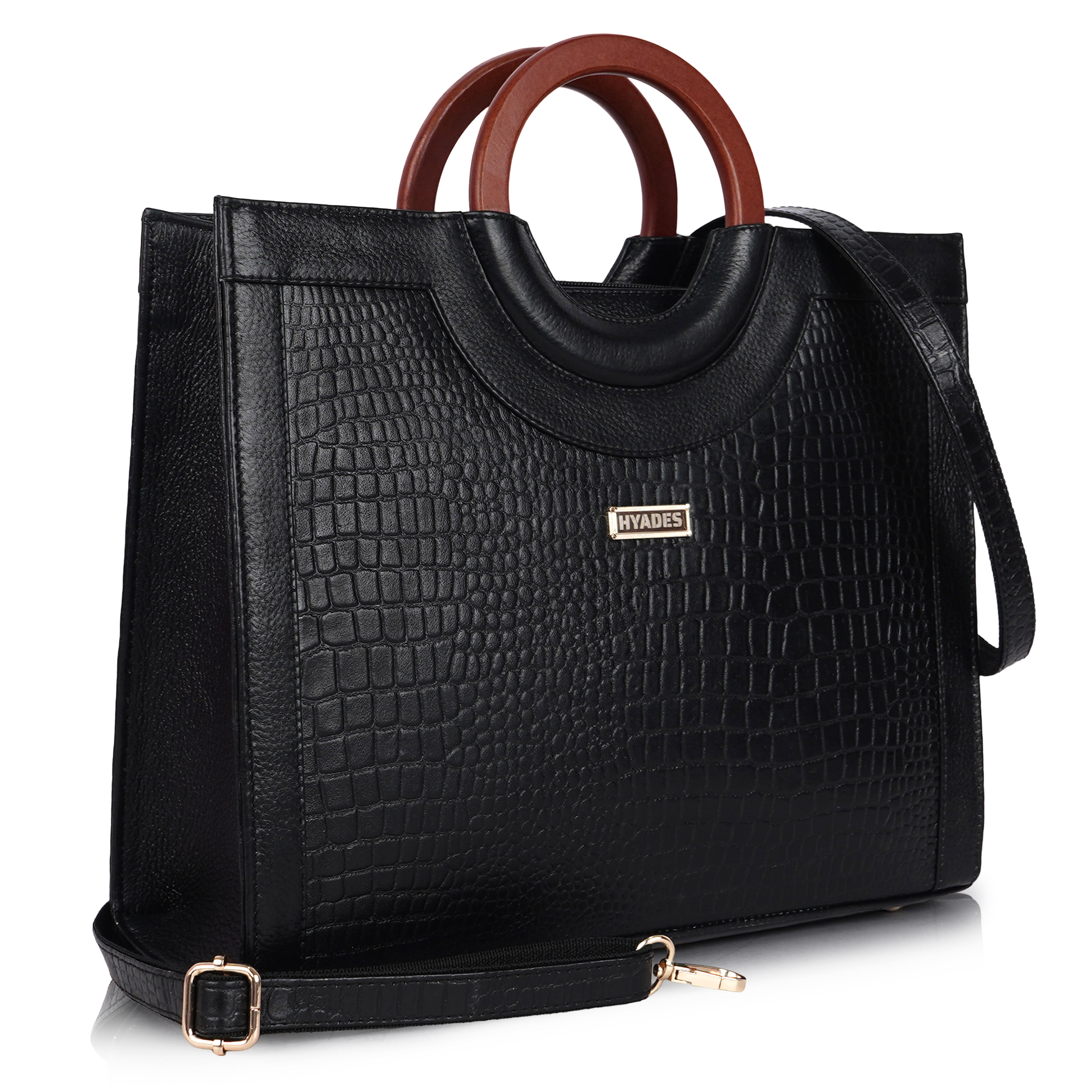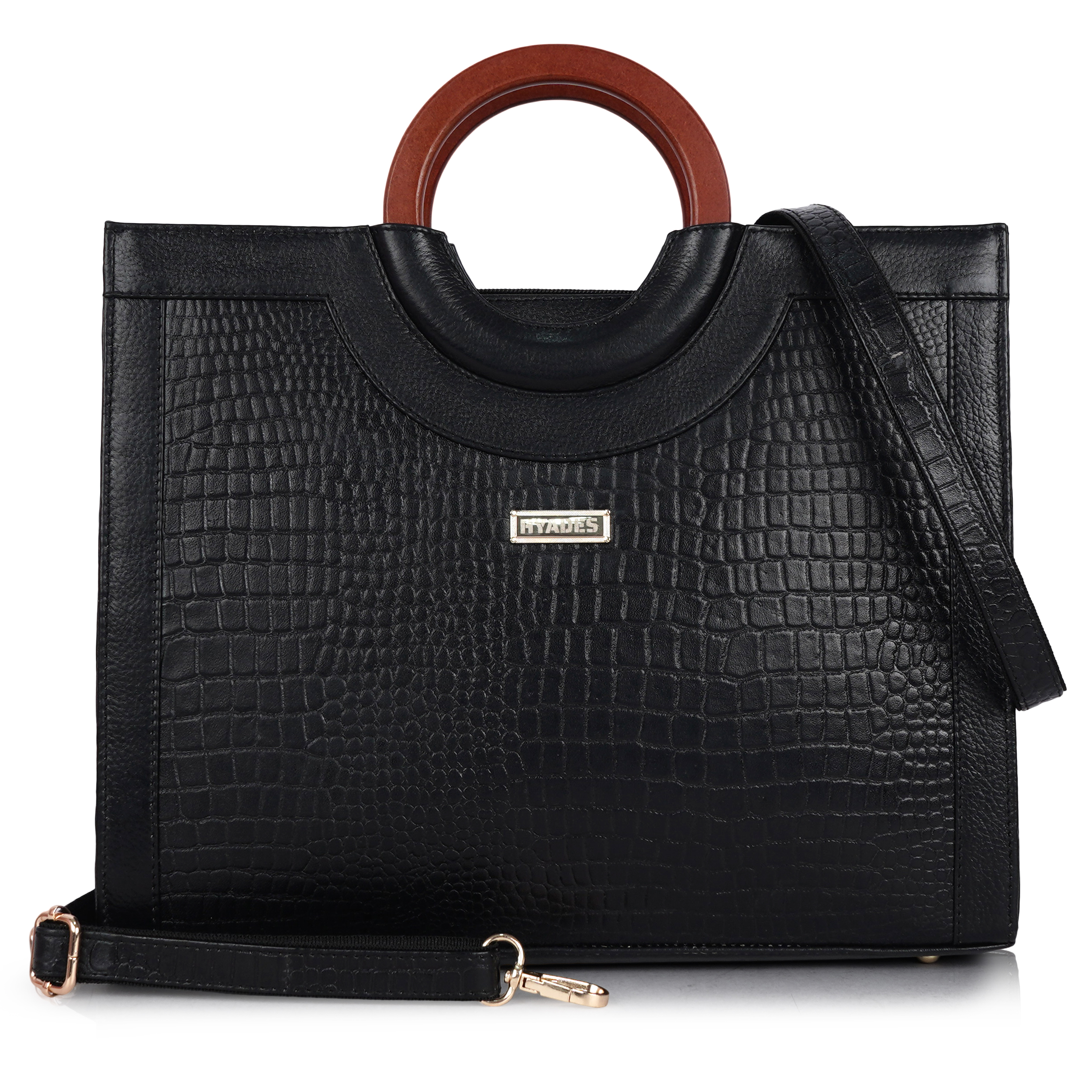 Women Croco Texture Handbag | Premium Top Handle Tote Bag with Detachable Sling Strap | Stylish Office & Party Bag | BLACK