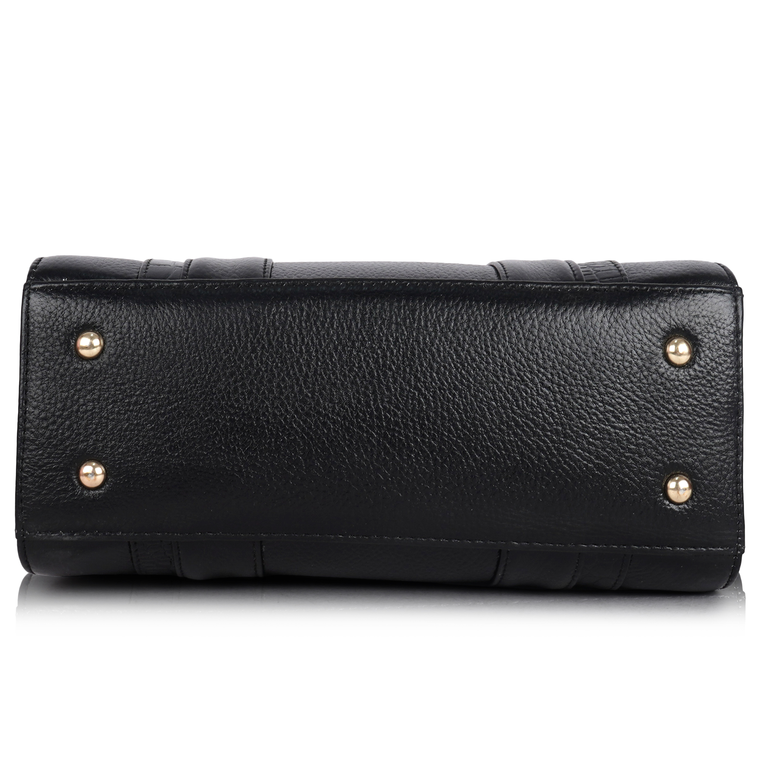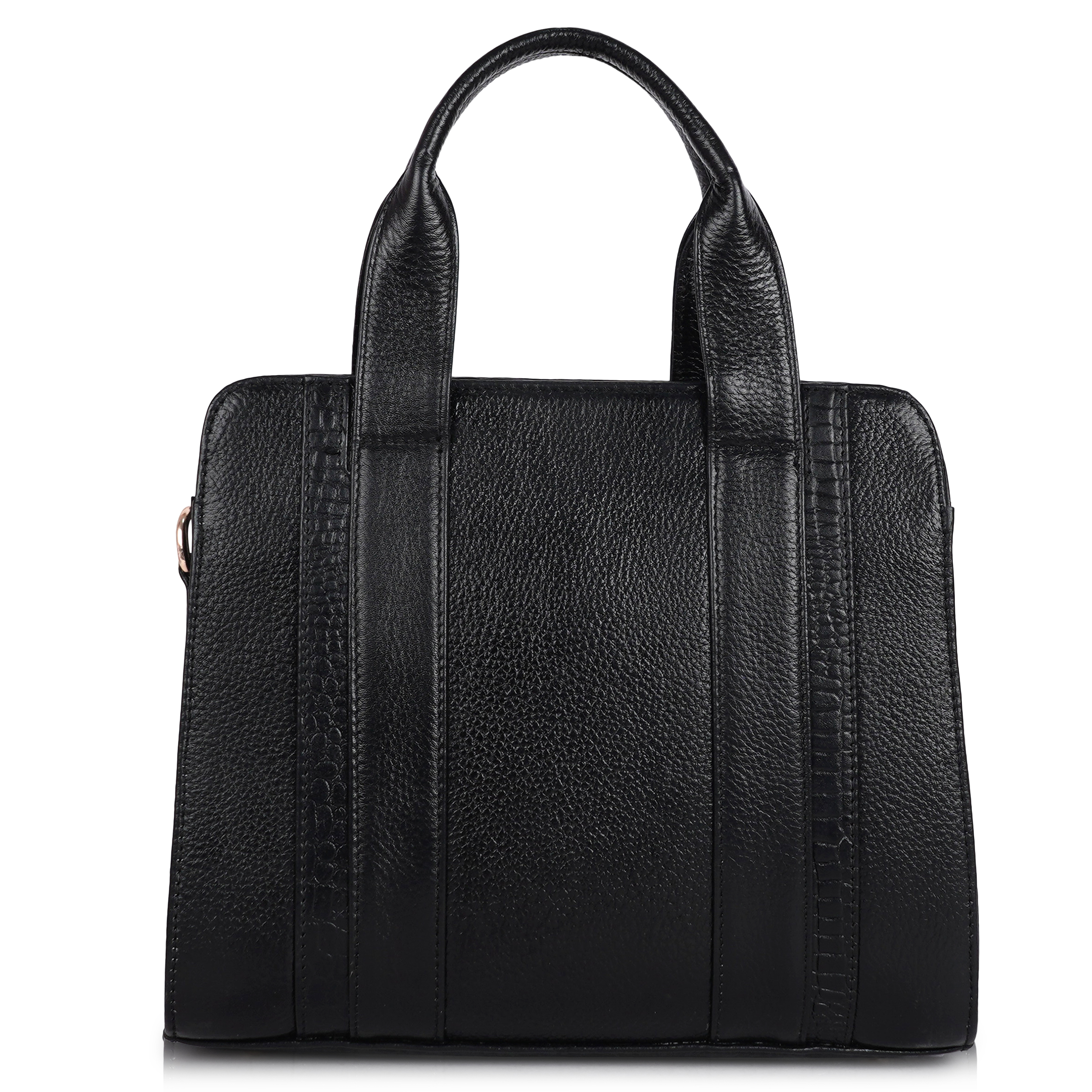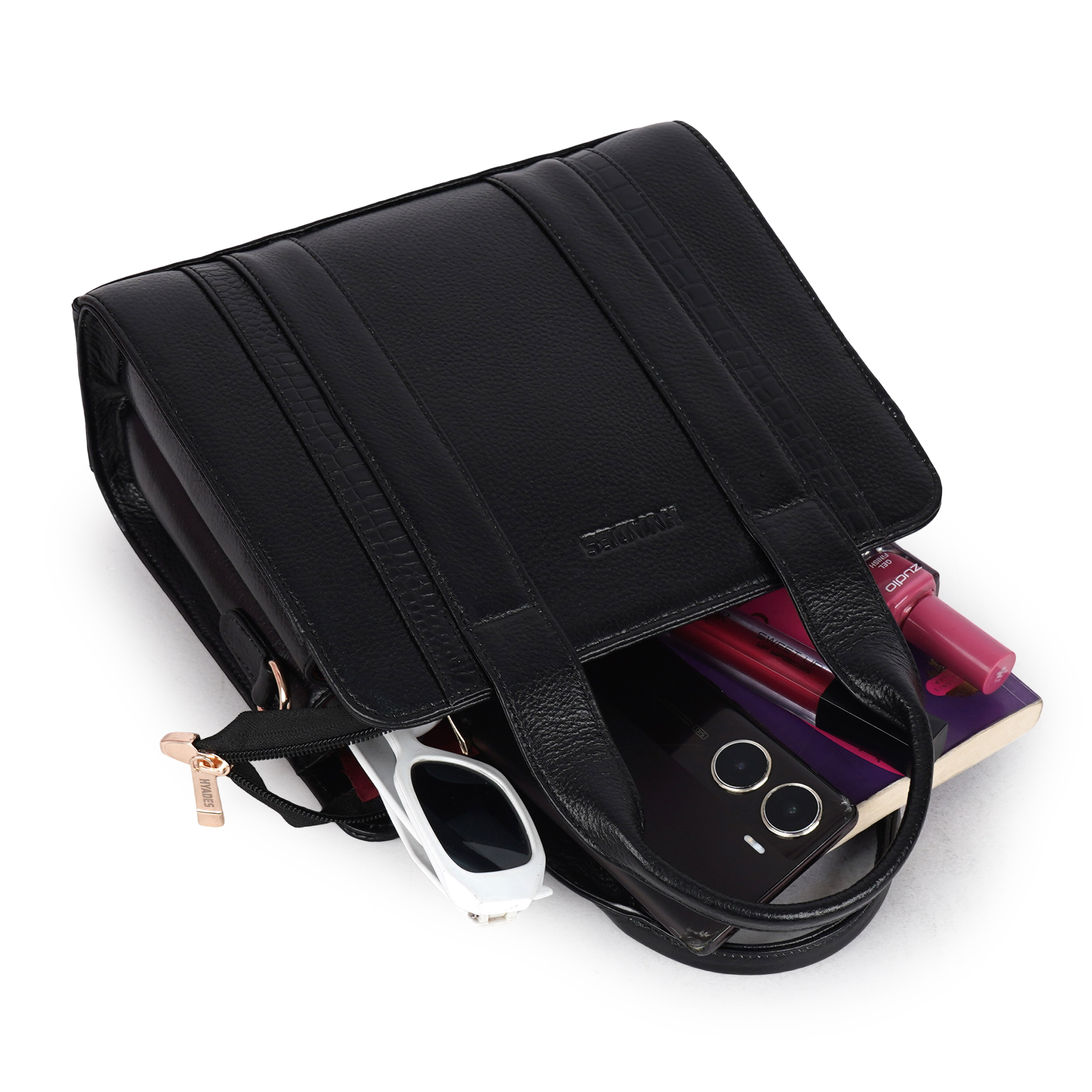 Classic Brown Textured Leather Handbag for Women | Stylish Office & Daily Tote Bag | BLACK