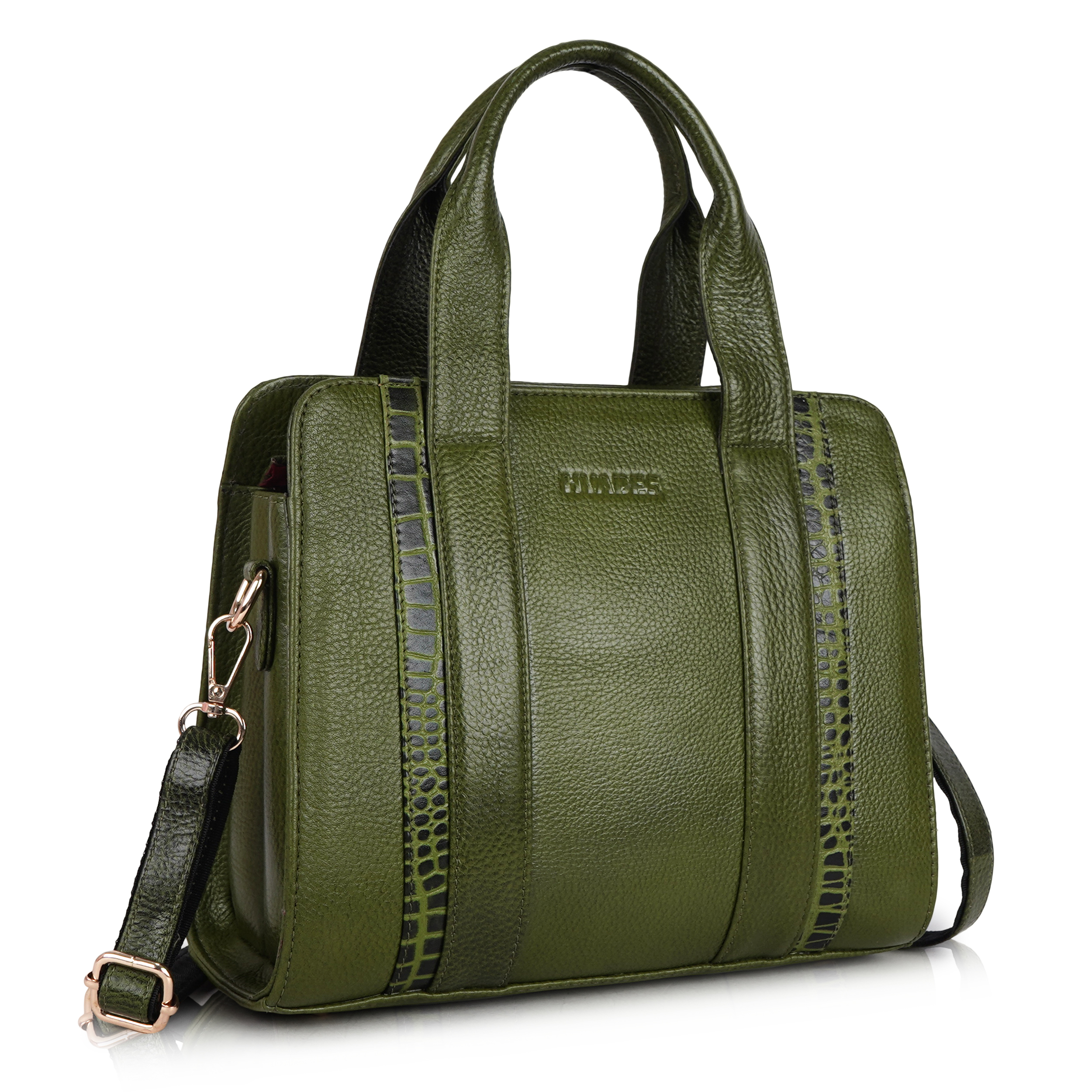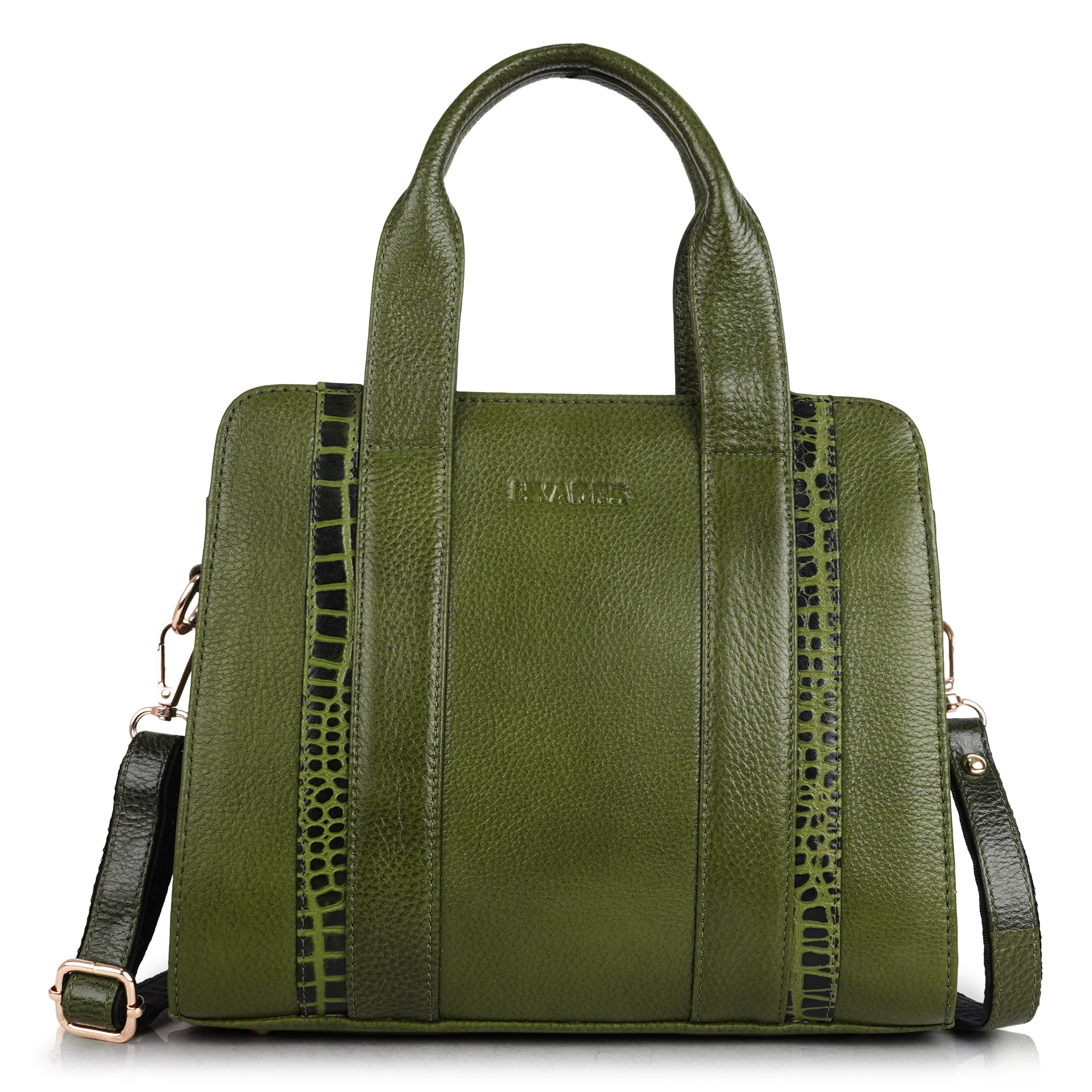 Classic Brown Textured Leather Handbag for Women | Stylish Office & Daily Tote Bag | GREEN