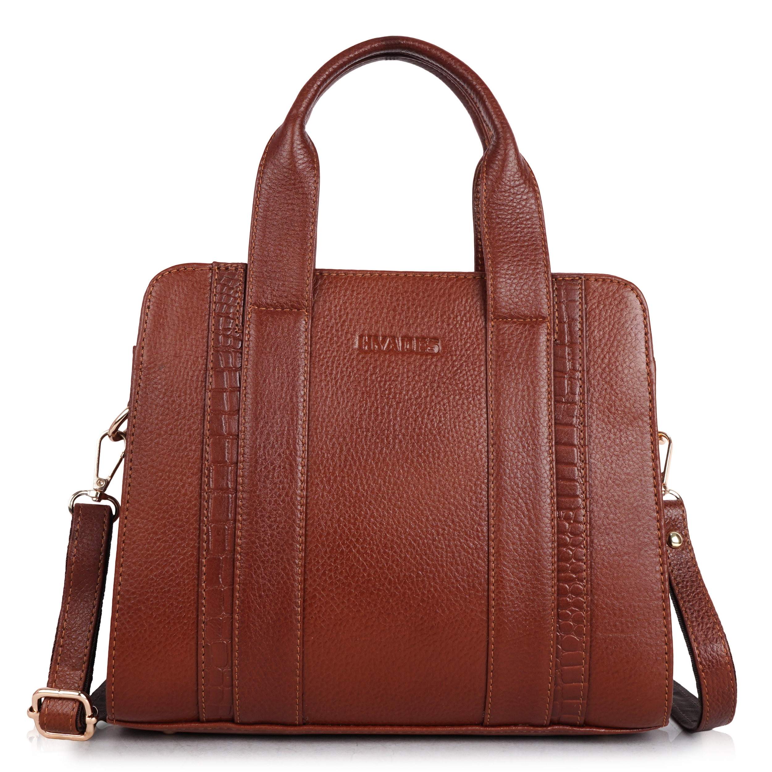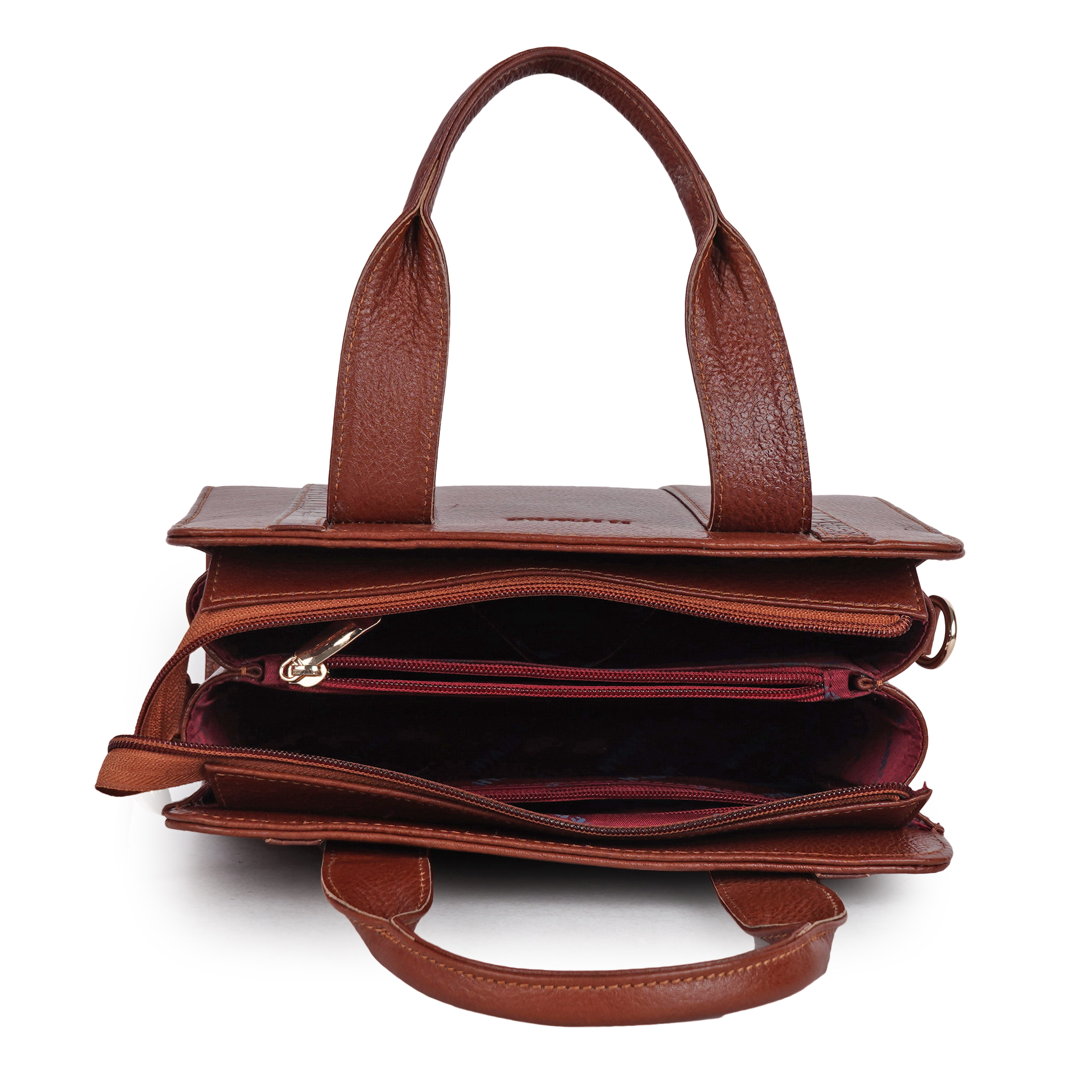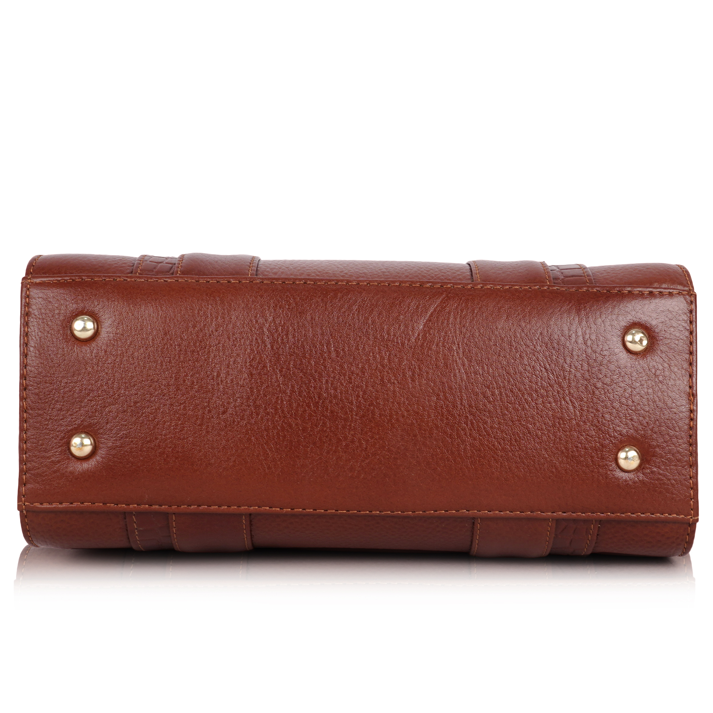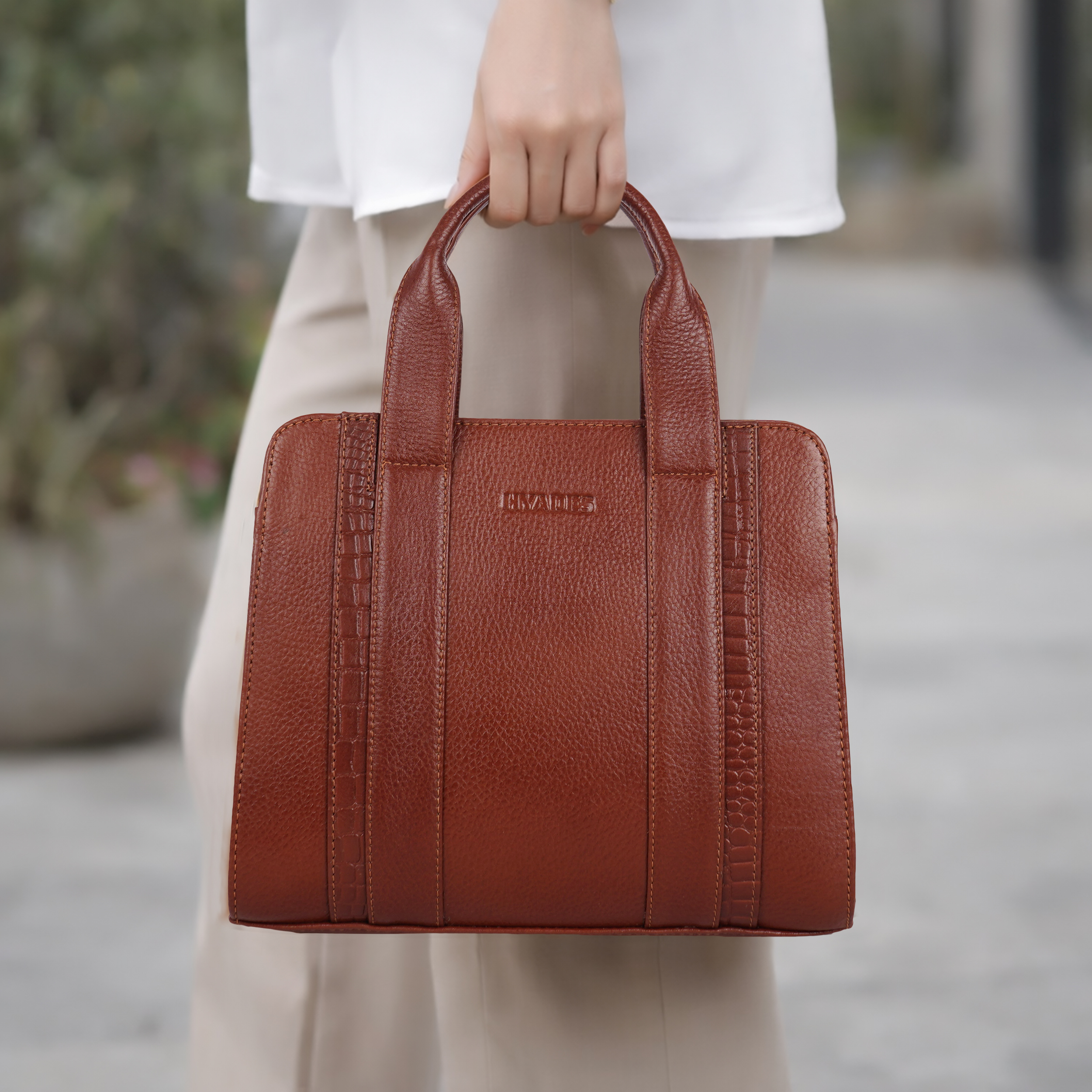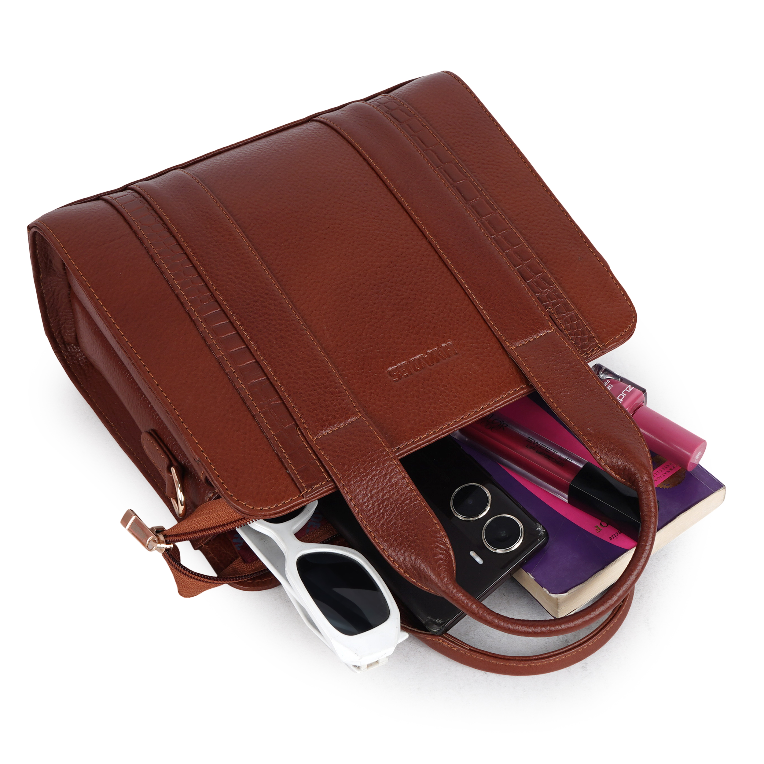 Classic Brown Textured Leather Handbag for Women | Stylish Office & Daily Tote Bag | TAN