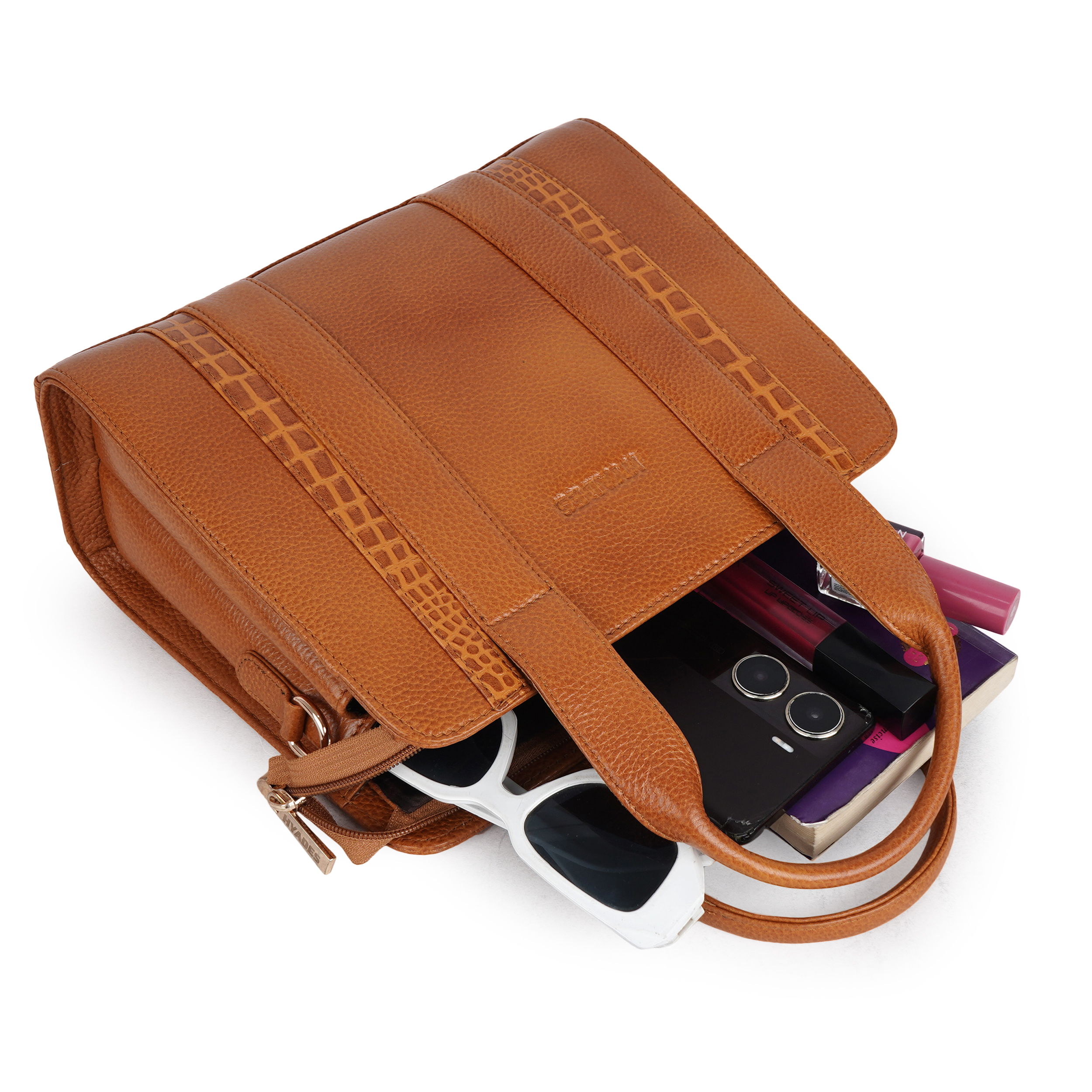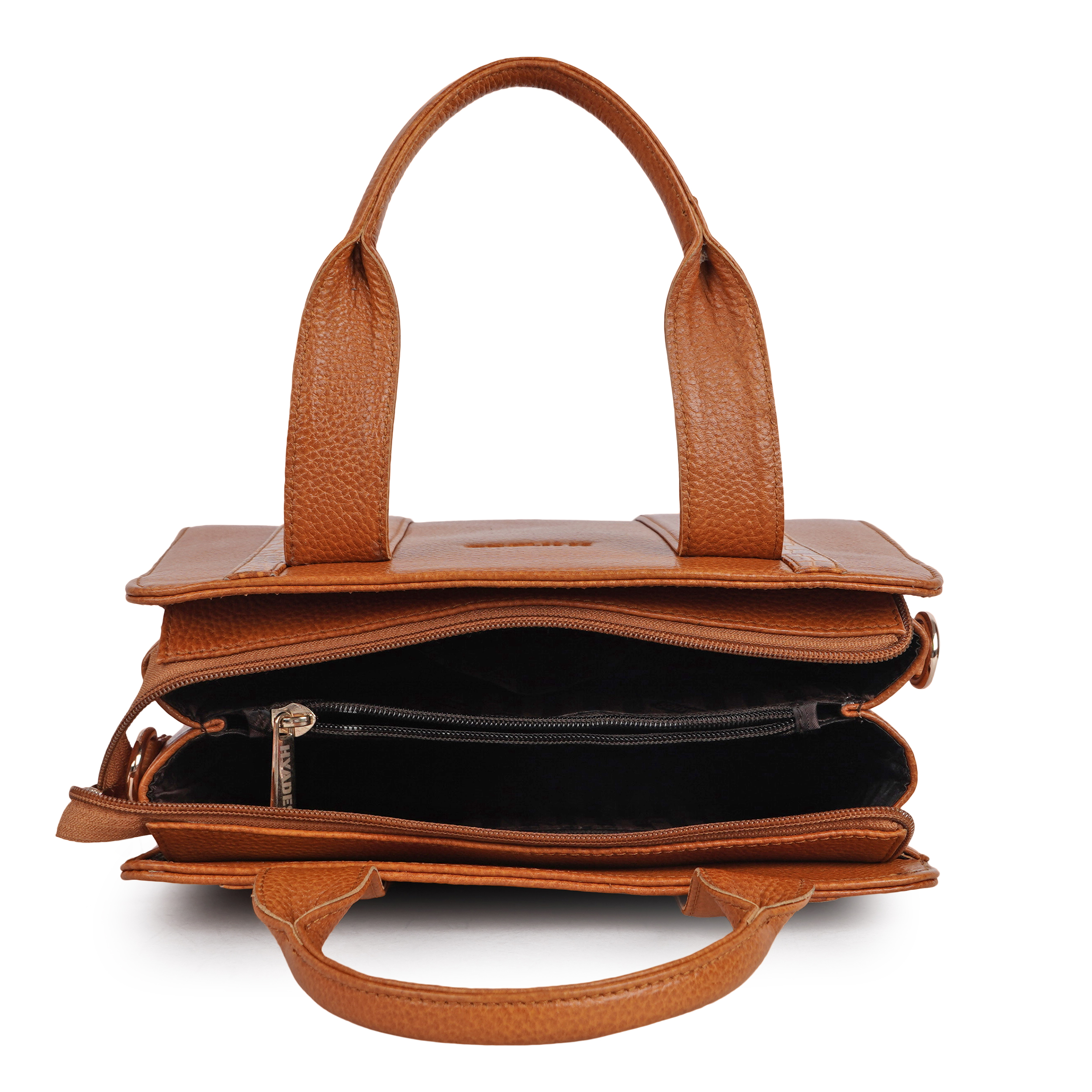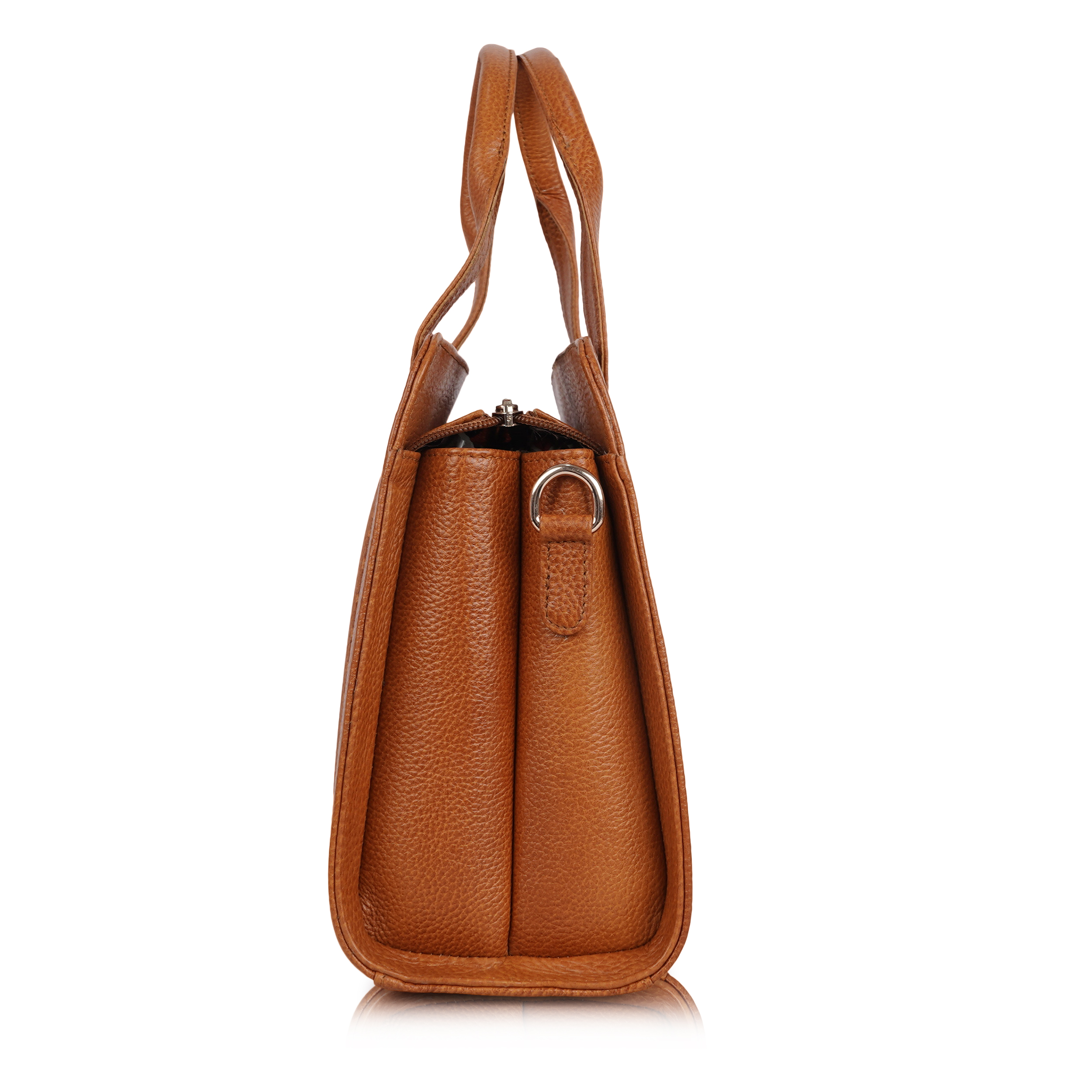 Classic Brown Textured Leather Handbag for Women | Stylish Office & Daily Tote Bag | YELLOW