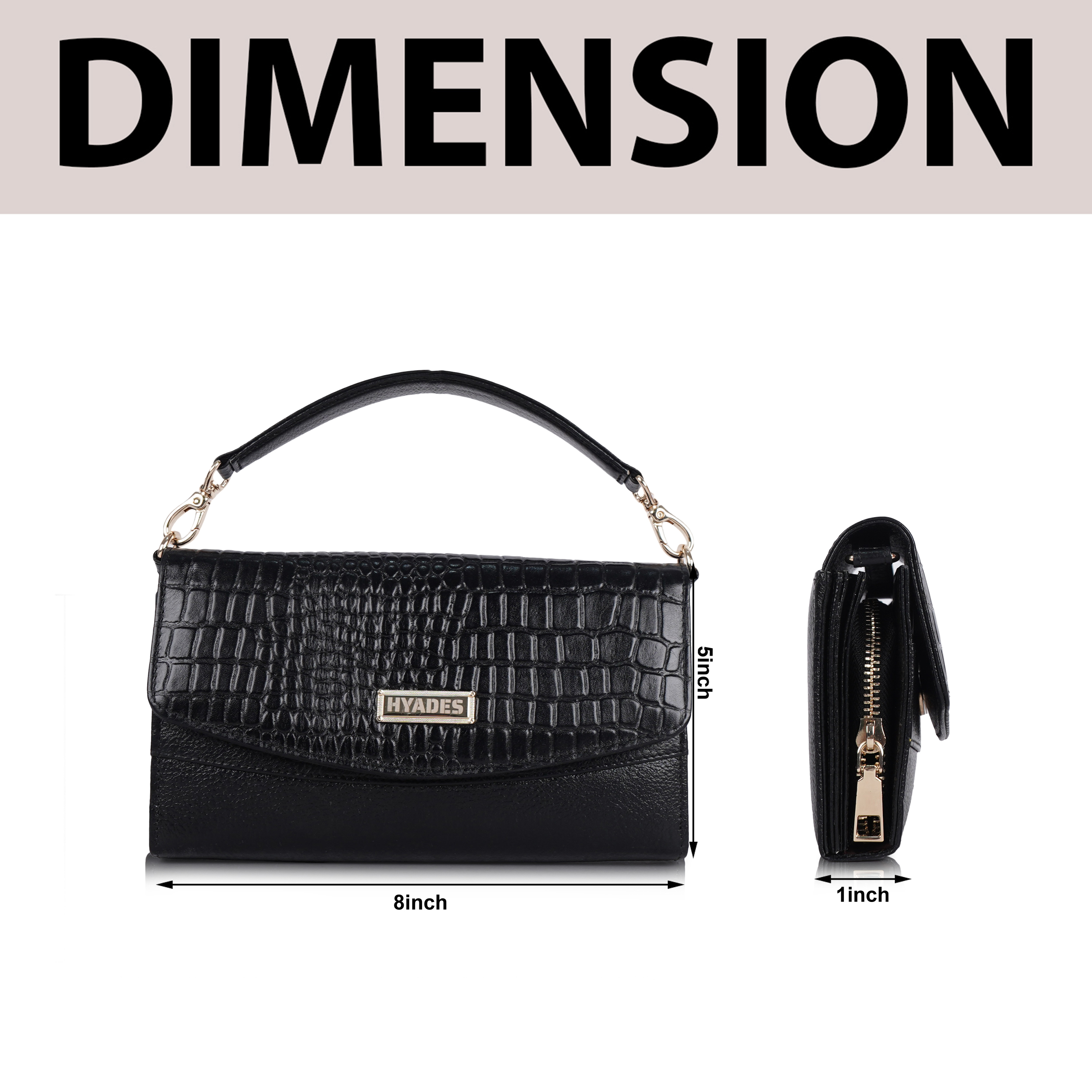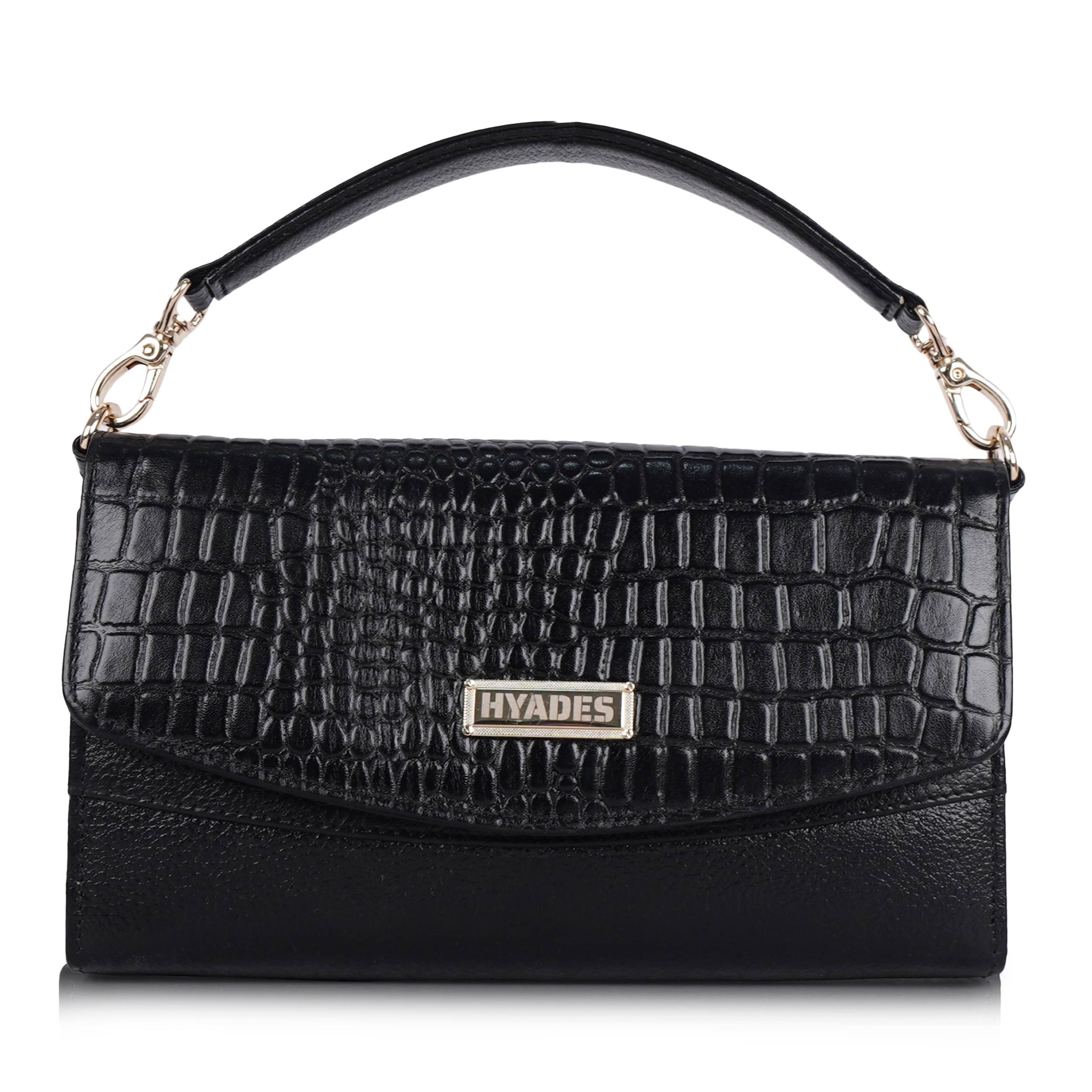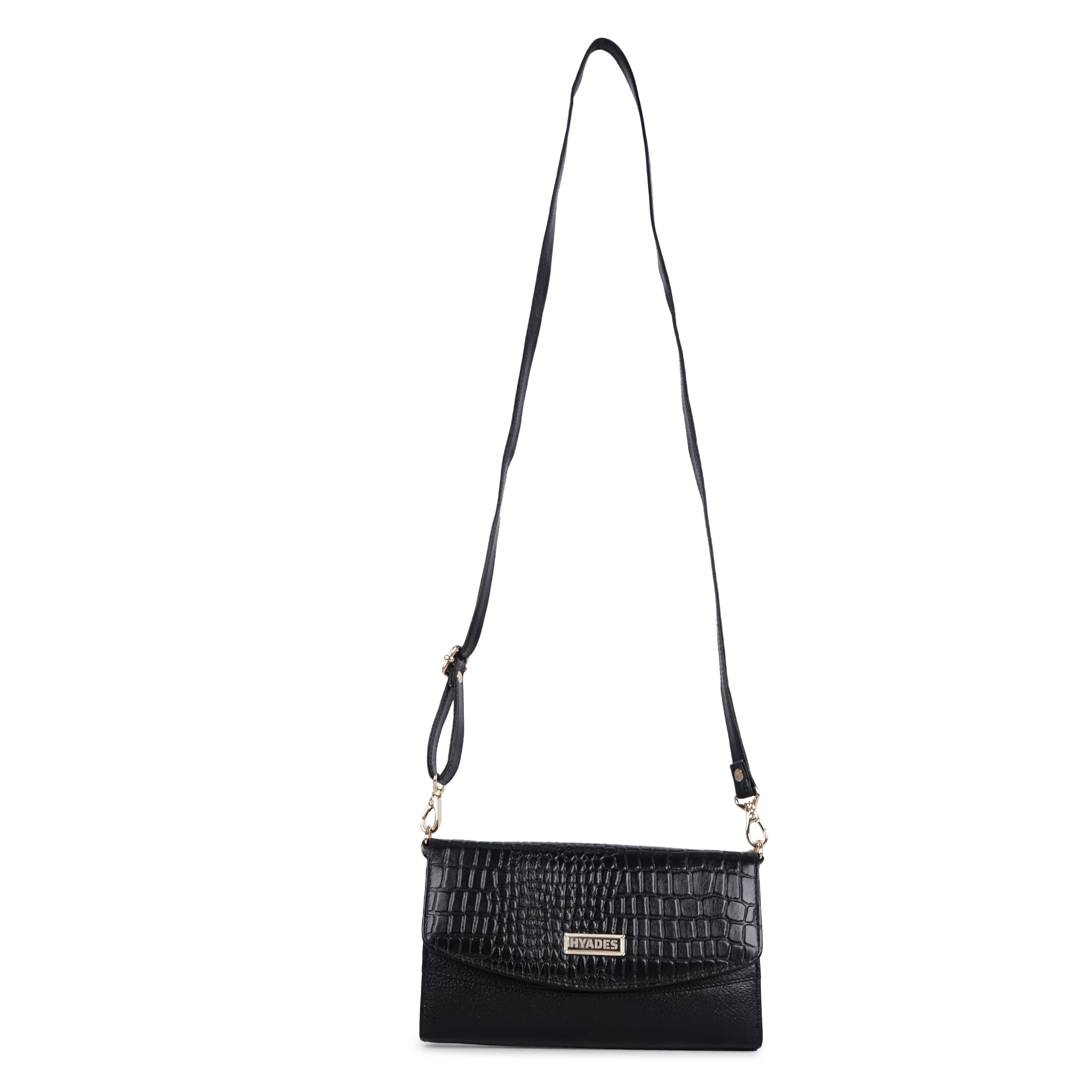 Croco Embossed Shoulder Clutch Bag | Stylish Mini Handbag | Elegant Party Purse | Black
