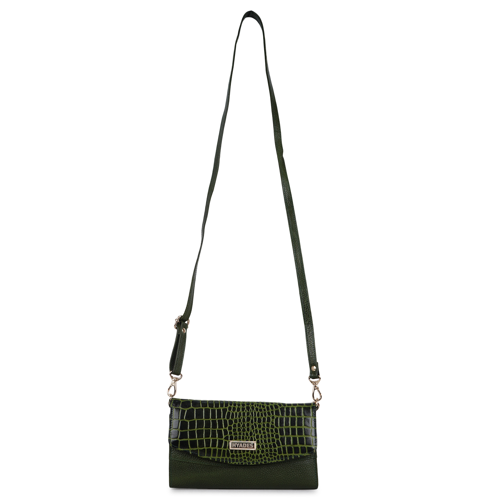 Croco Embossed Shoulder Clutch Bag | Stylish Mini Handbag | Elegant Party Purse | GREEN