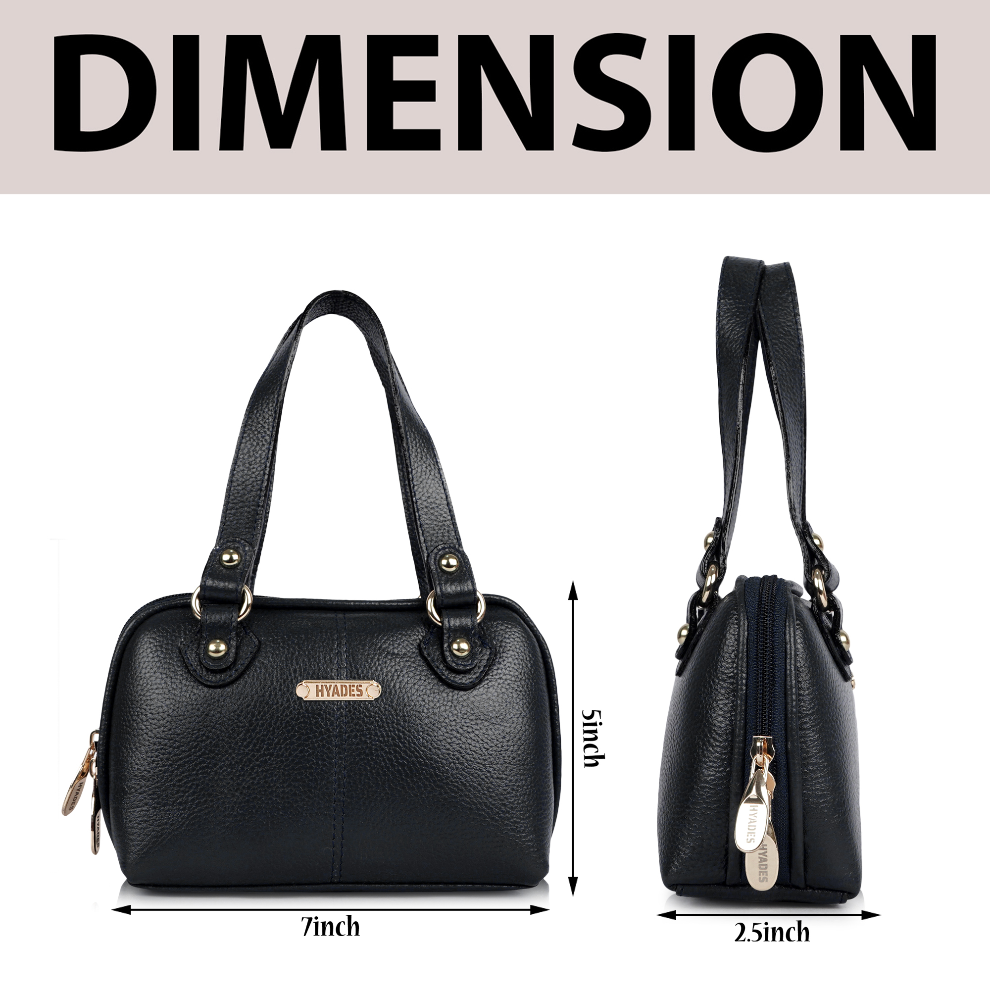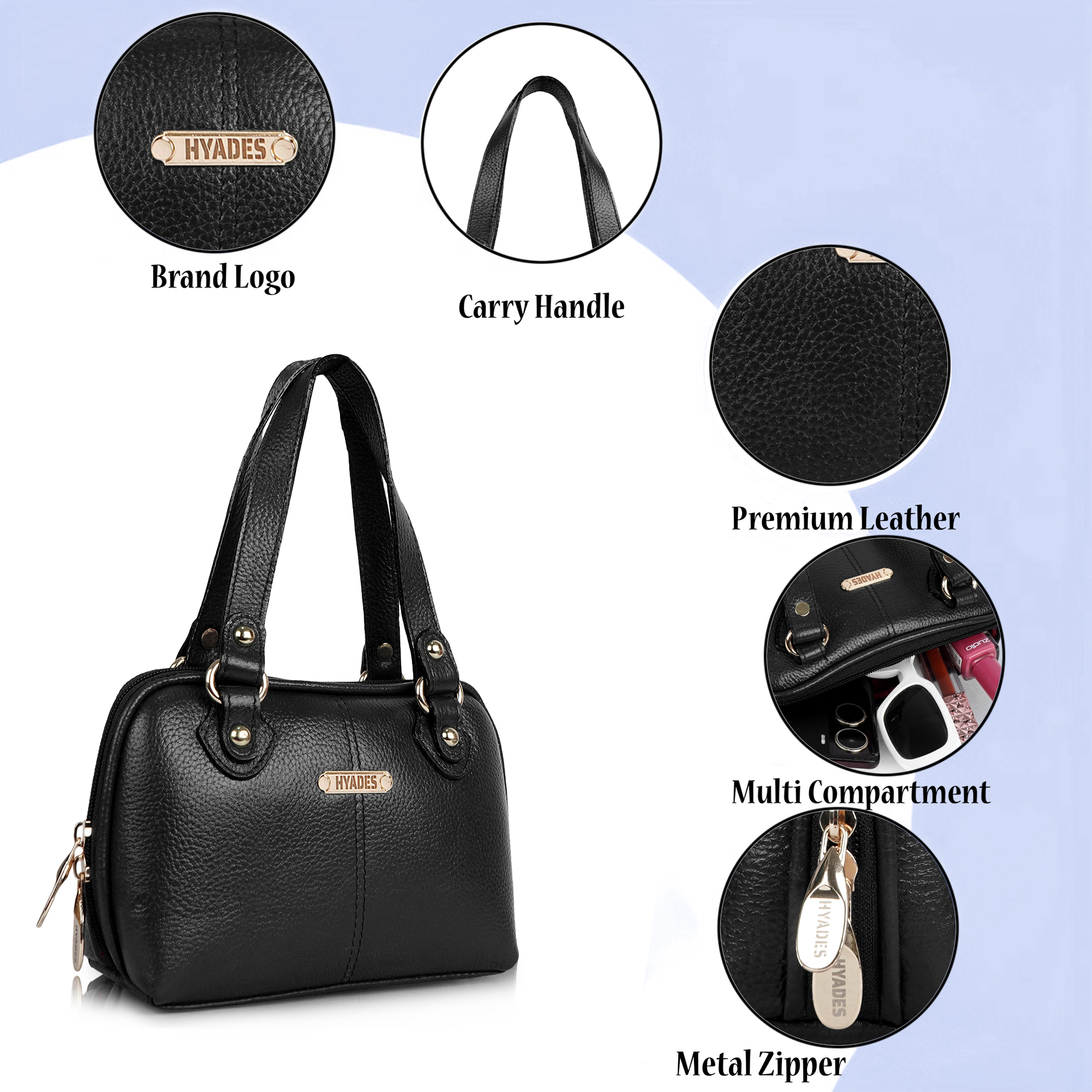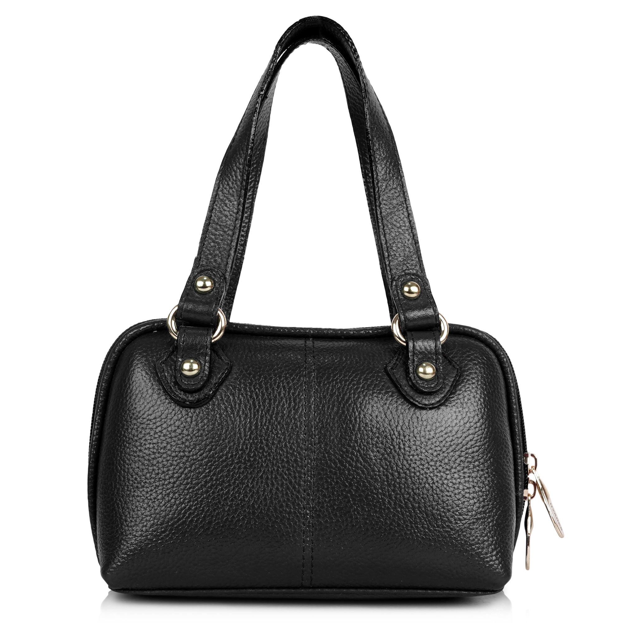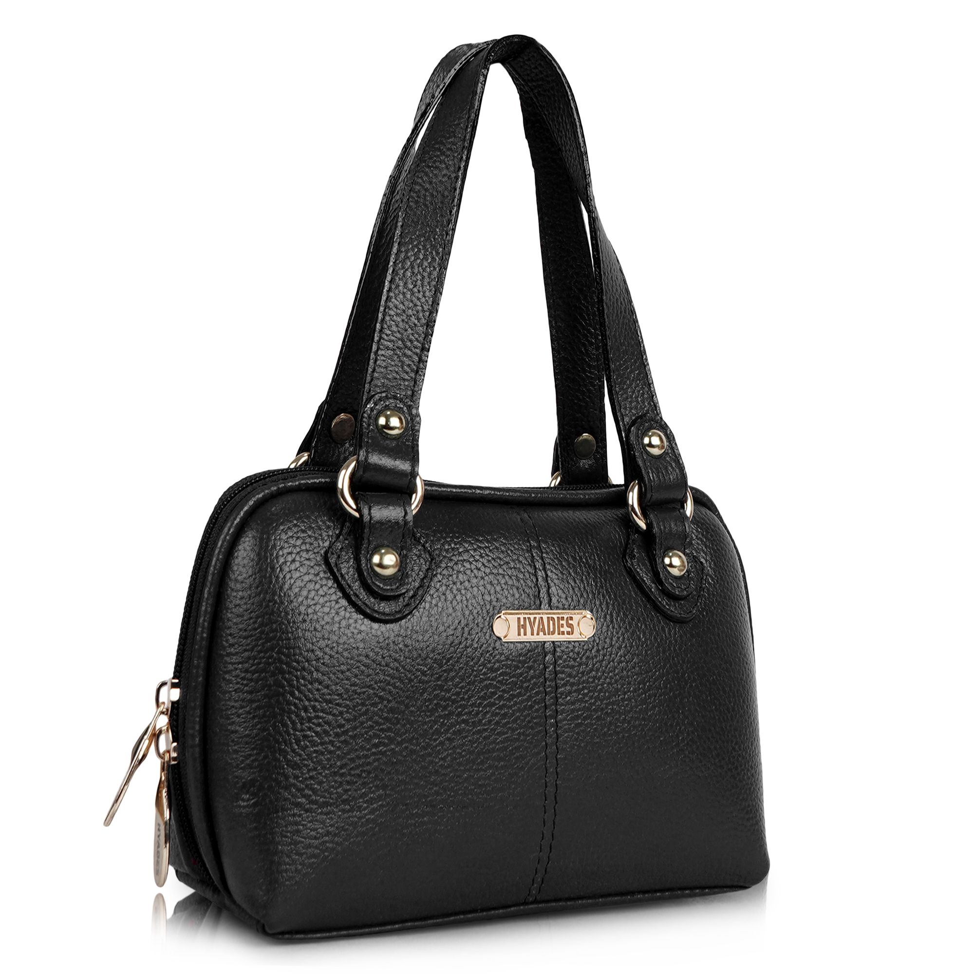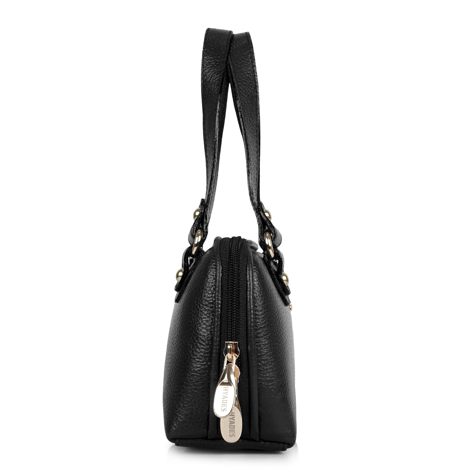 HYADES Classic Textured Leather Top Handle Shoulder Handbag | BLACK