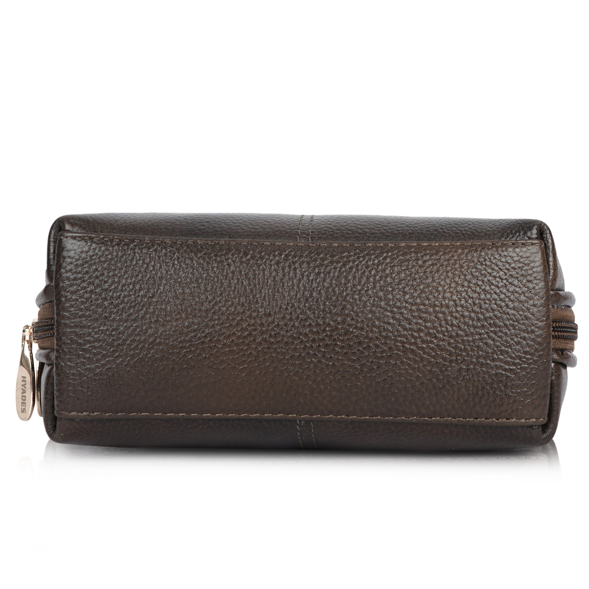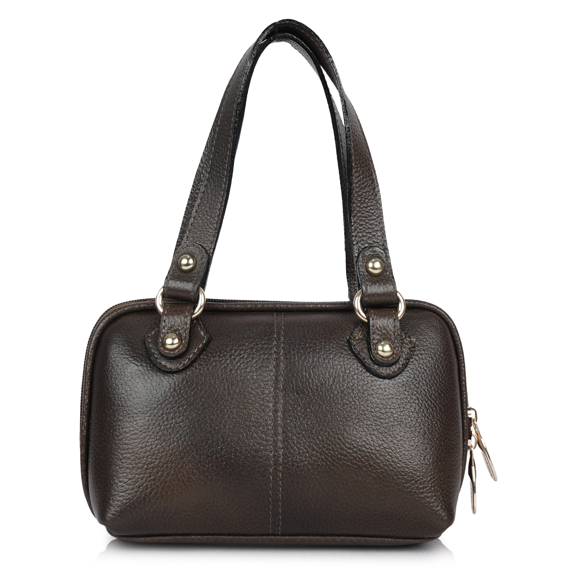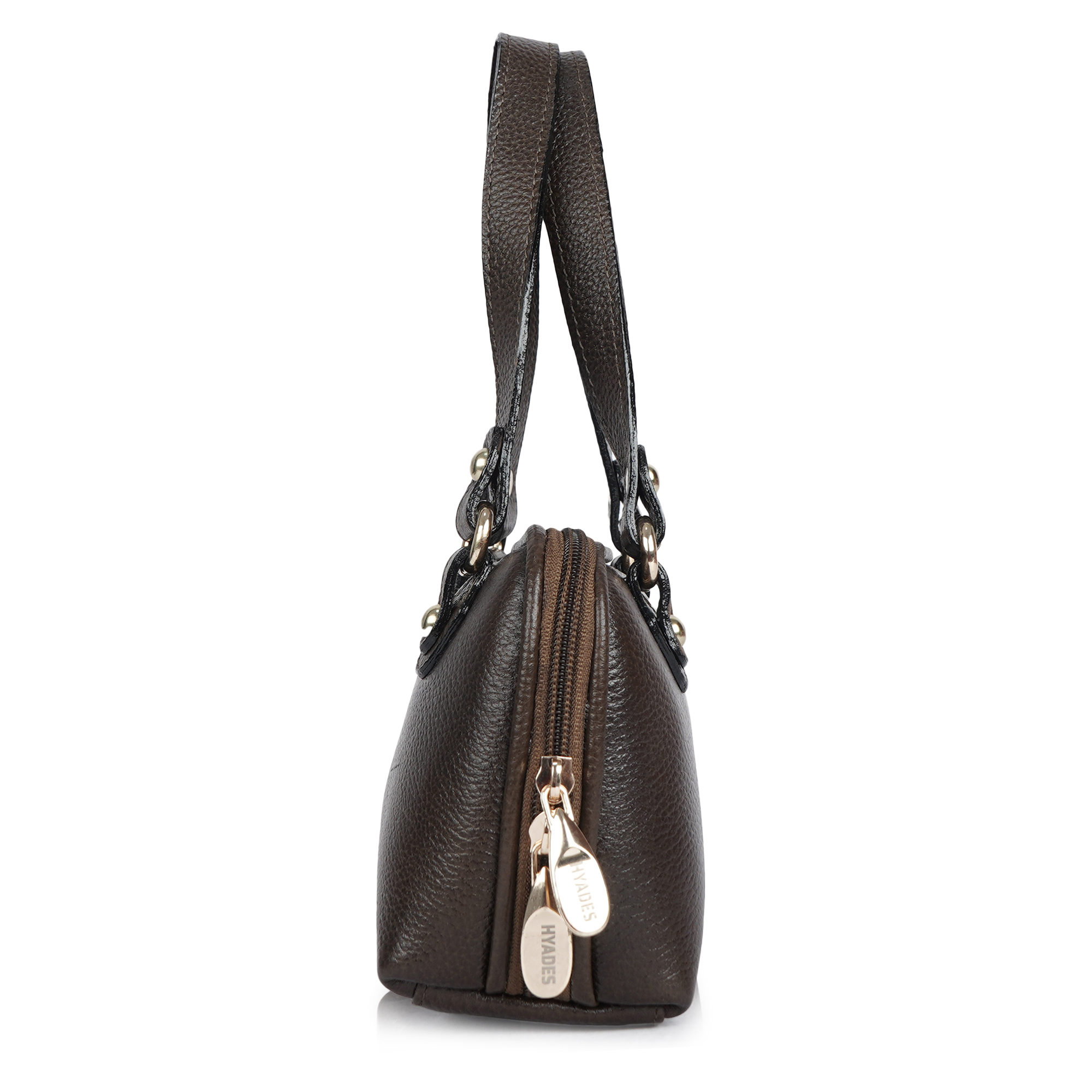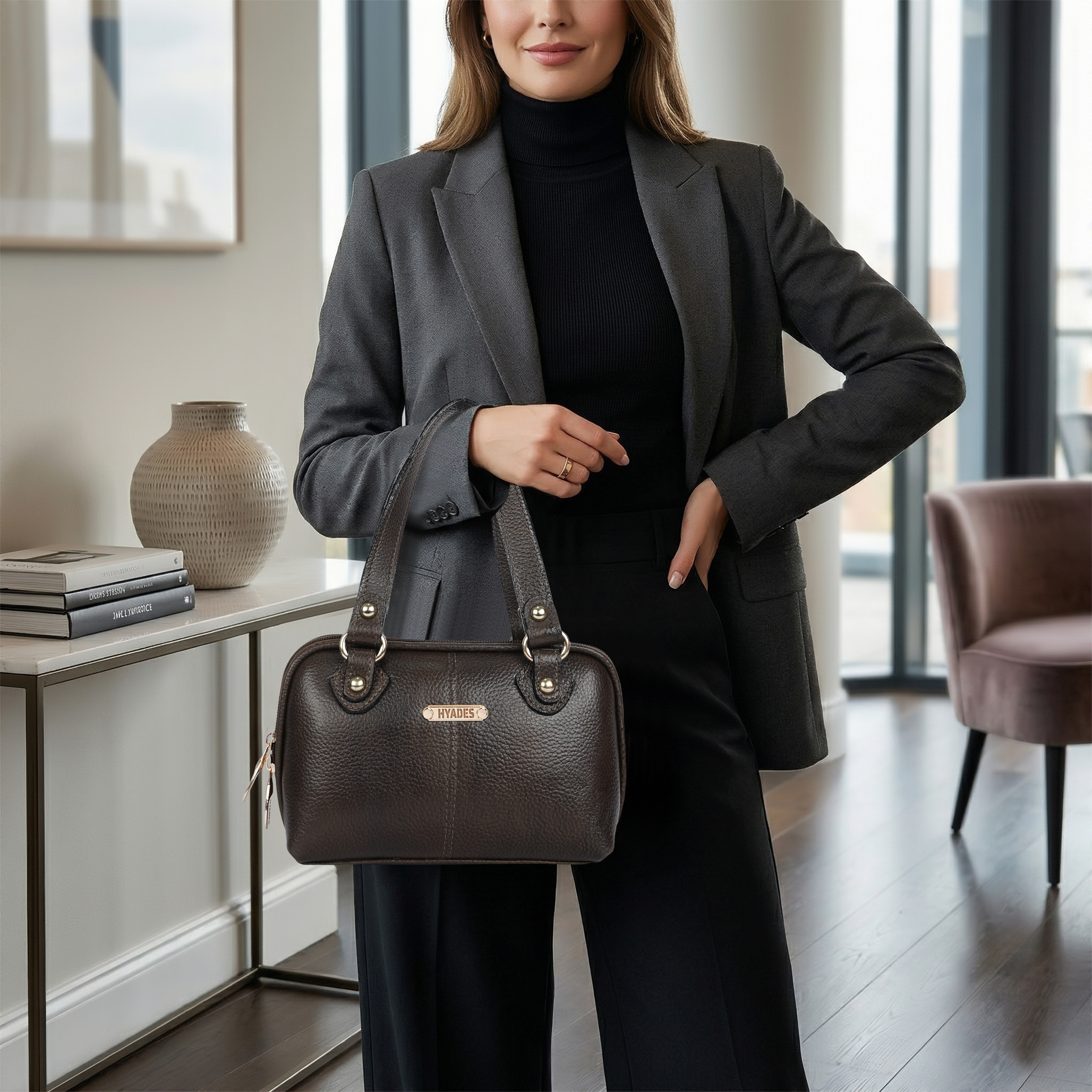 HYADES Classic Textured Leather Top Handle Shoulder Handbag | COFFEE BROWN