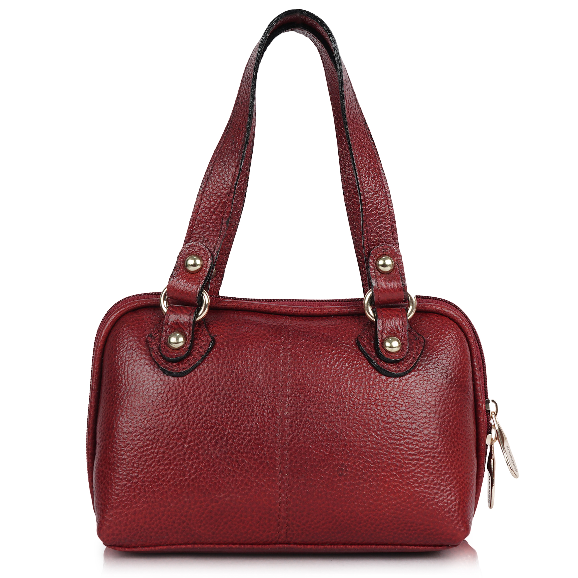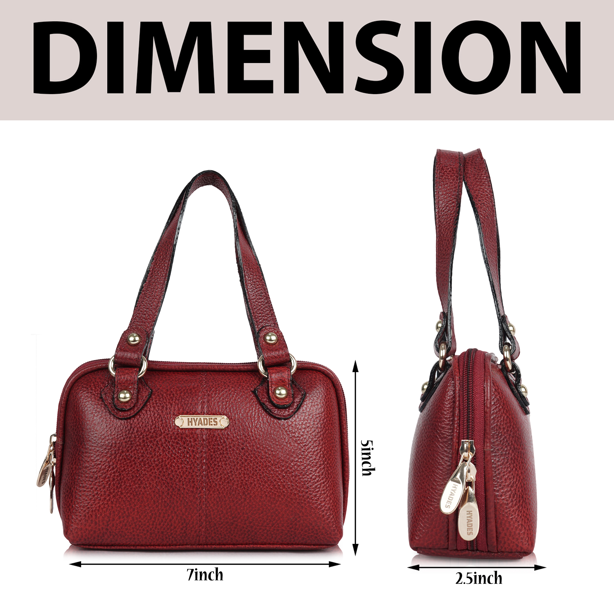 HYADES Classic Textured Leather Top Handle Shoulder Handbag | RED