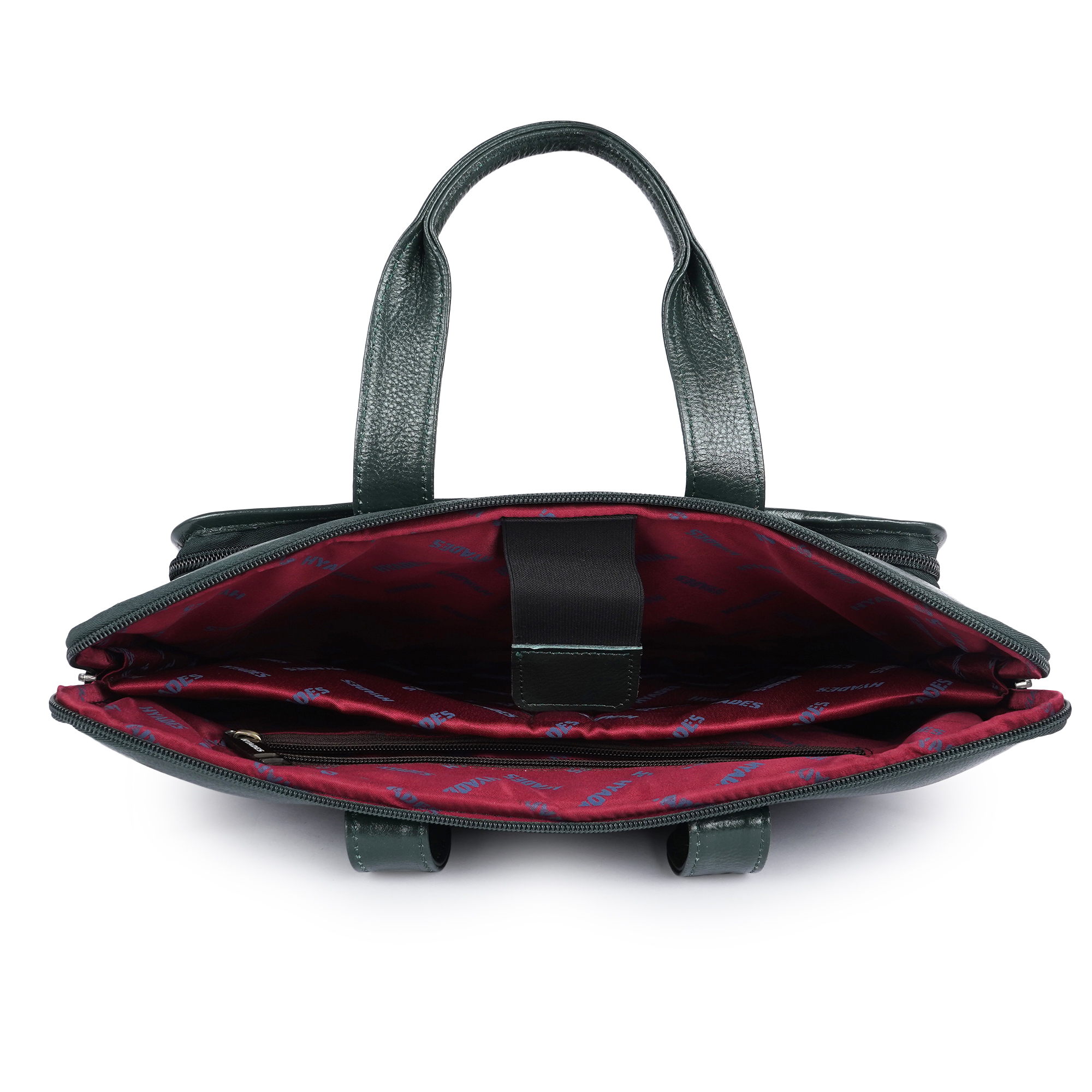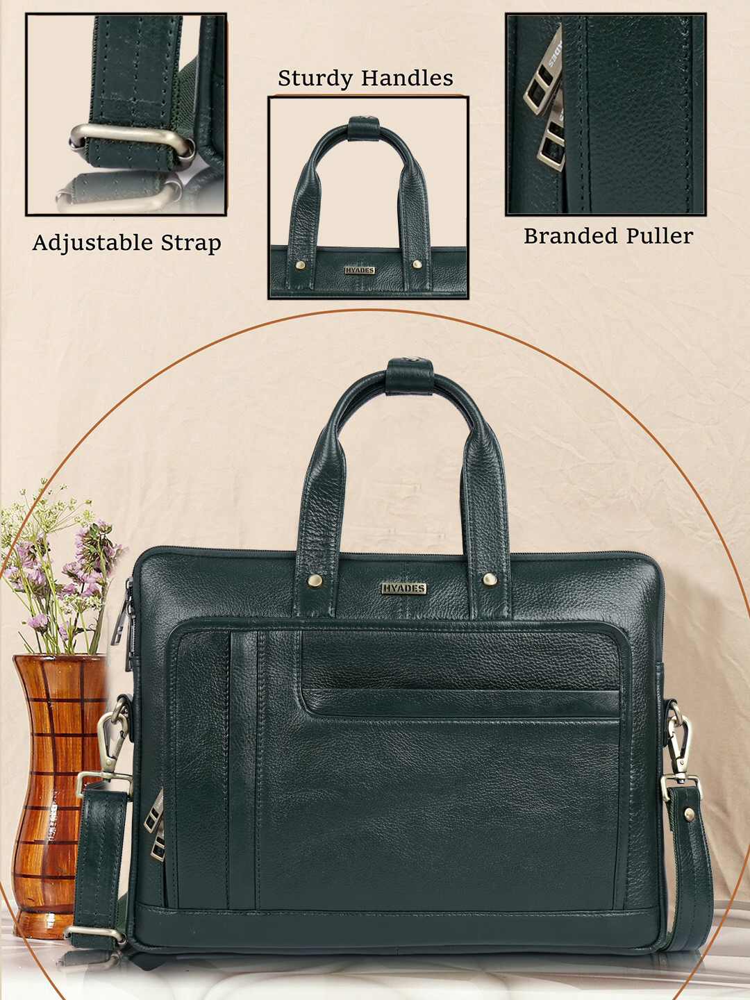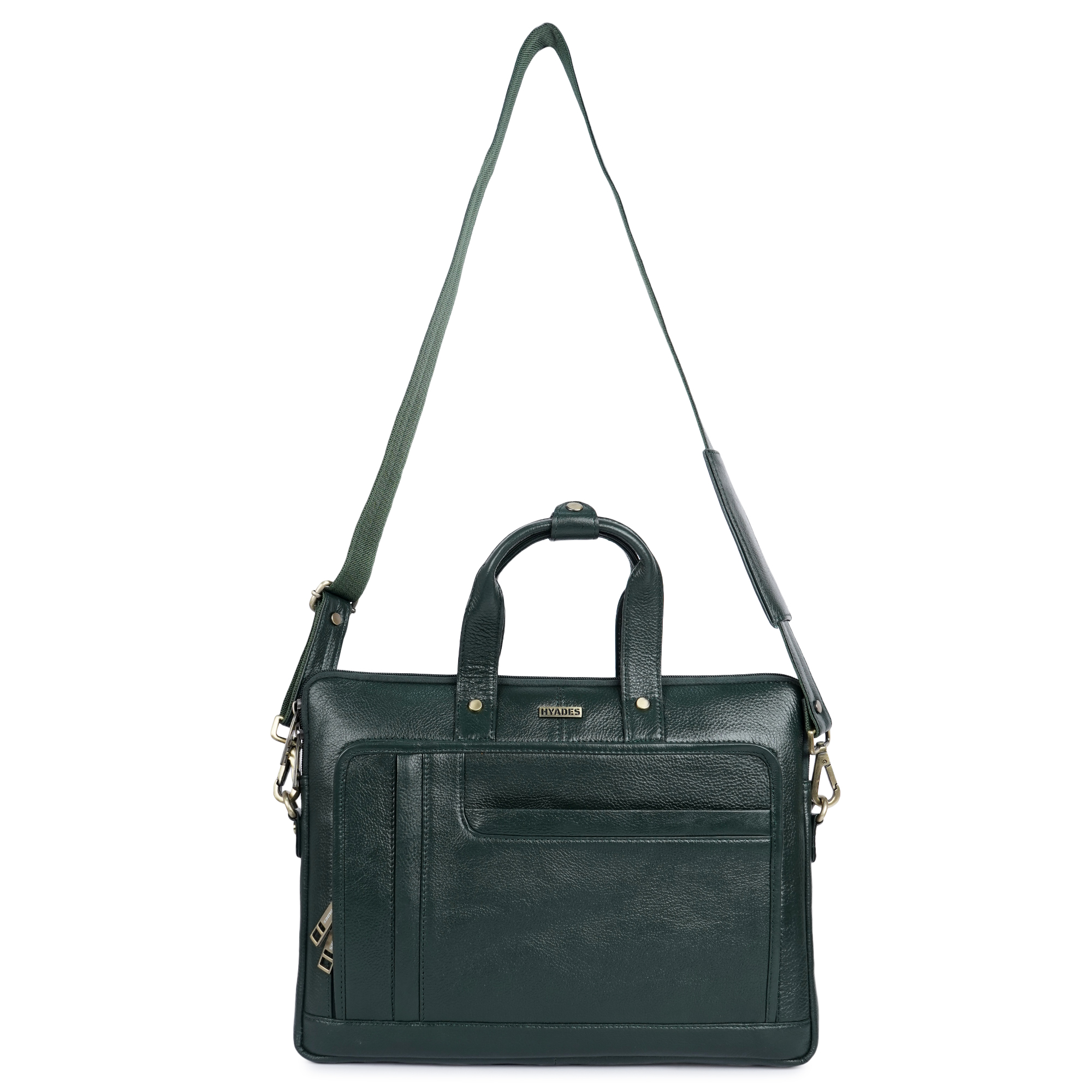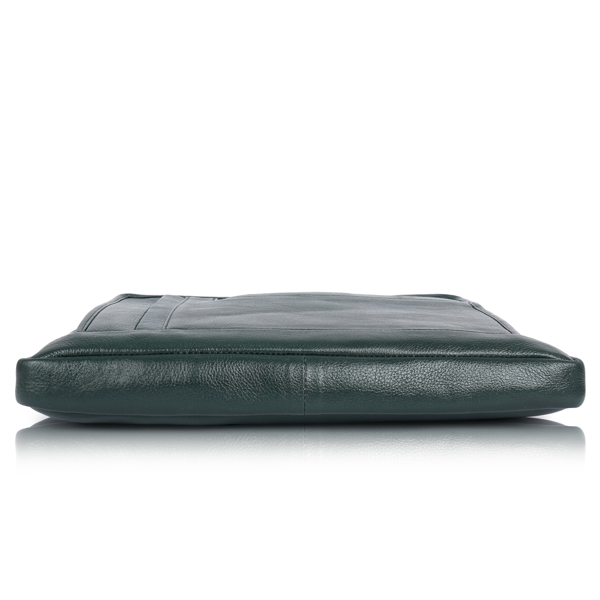 HYADES-SLIM-Classic Leather Laptop Bag for Office & Travel – 15.5 Inch Padded Sleeve- with detachable sling-GREEN