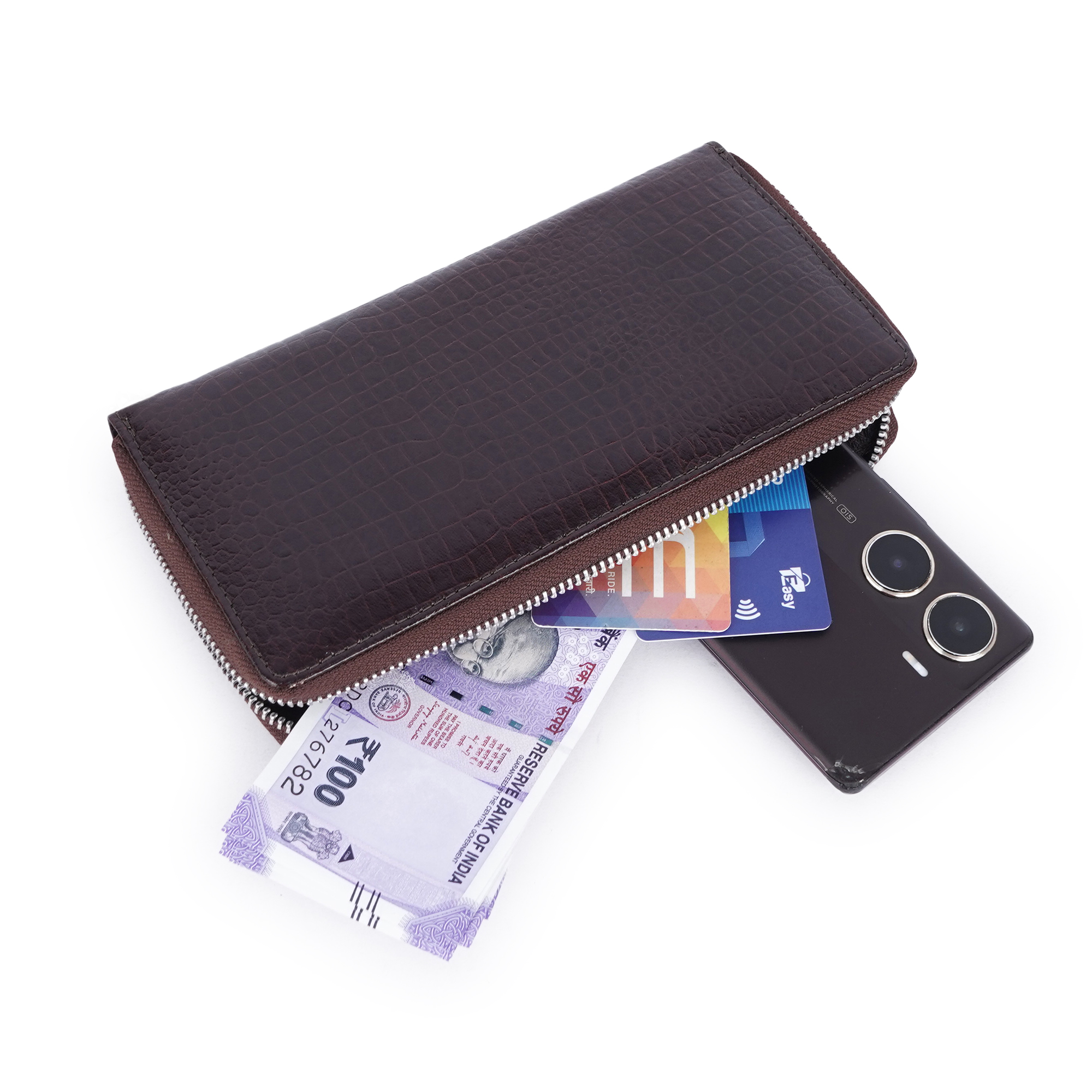HYADES | CROCO designed pure leather hand clutch for women | BROWN