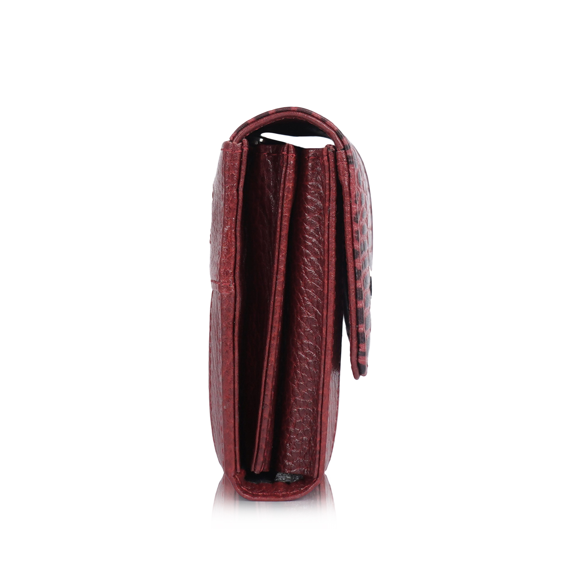 Keep in dust bag when not in use. Clean with soft cloth & leather cream. Avoid exposure to excess heat & water to maintain authentic shine of natural leather.