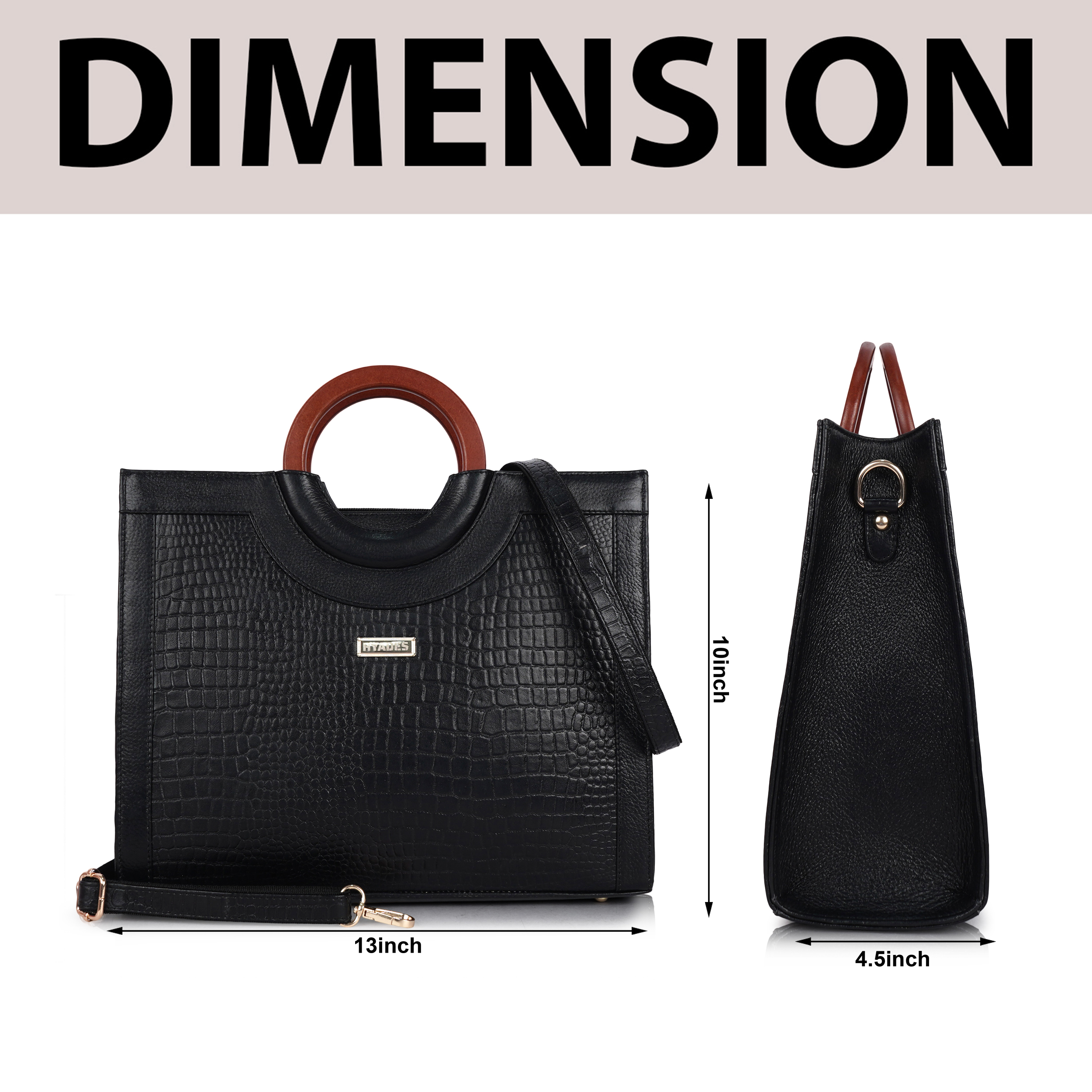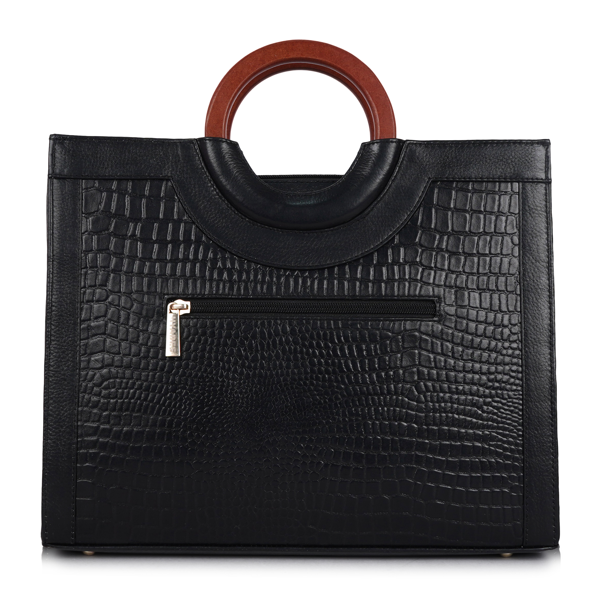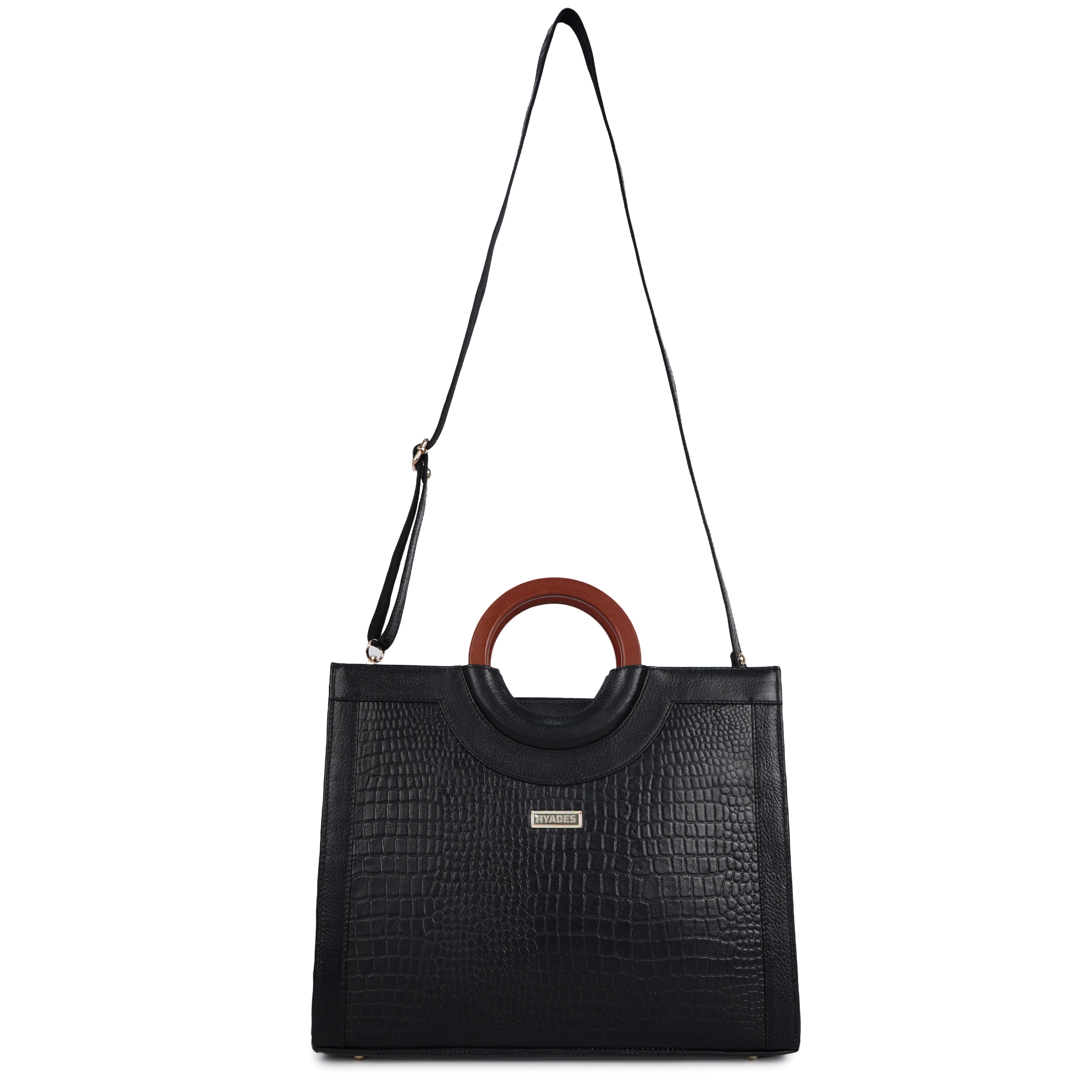 Women Croco Texture Handbag | Premium Top Handle Tote Bag with Detachable Sling Strap | Stylish Office & Party Bag | BLACK
